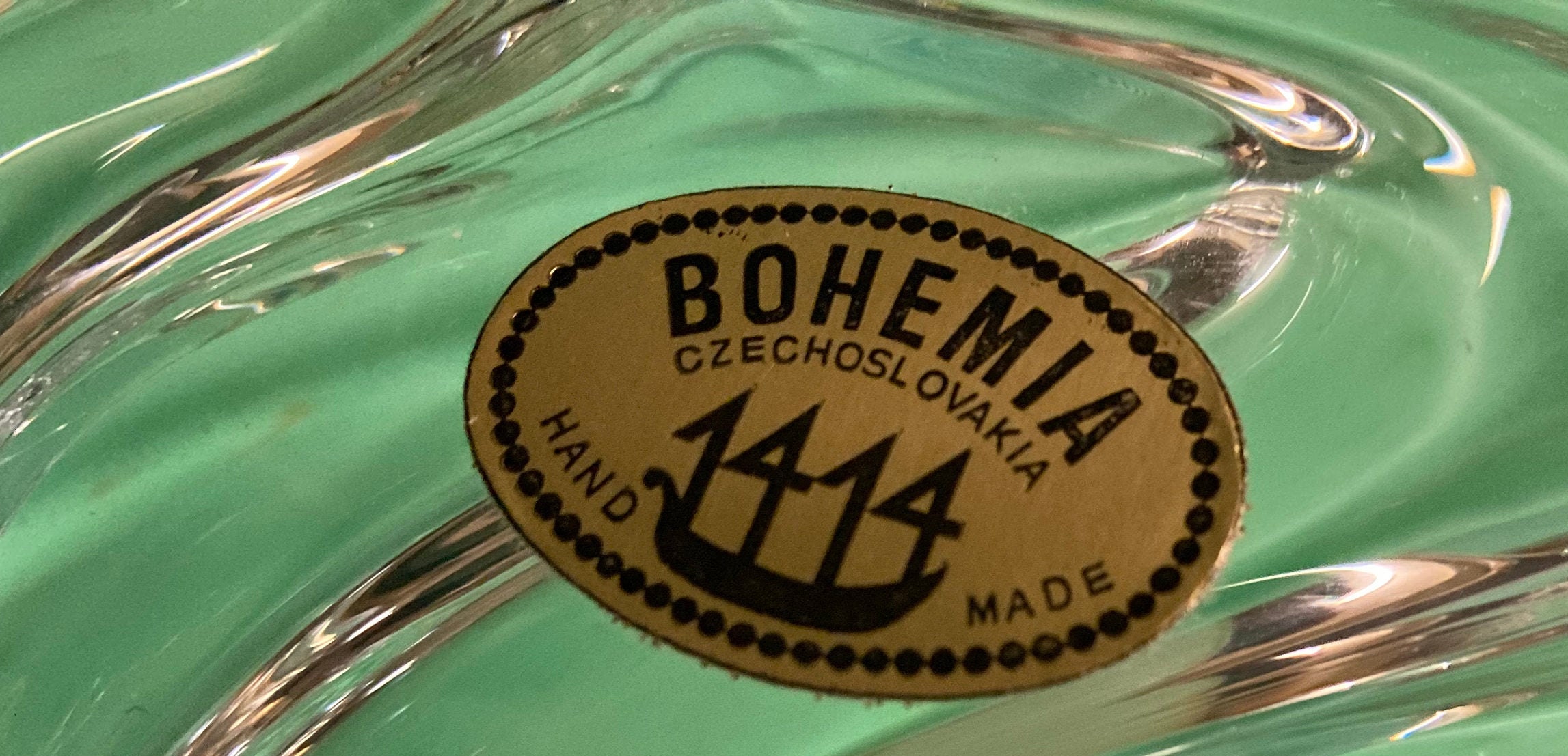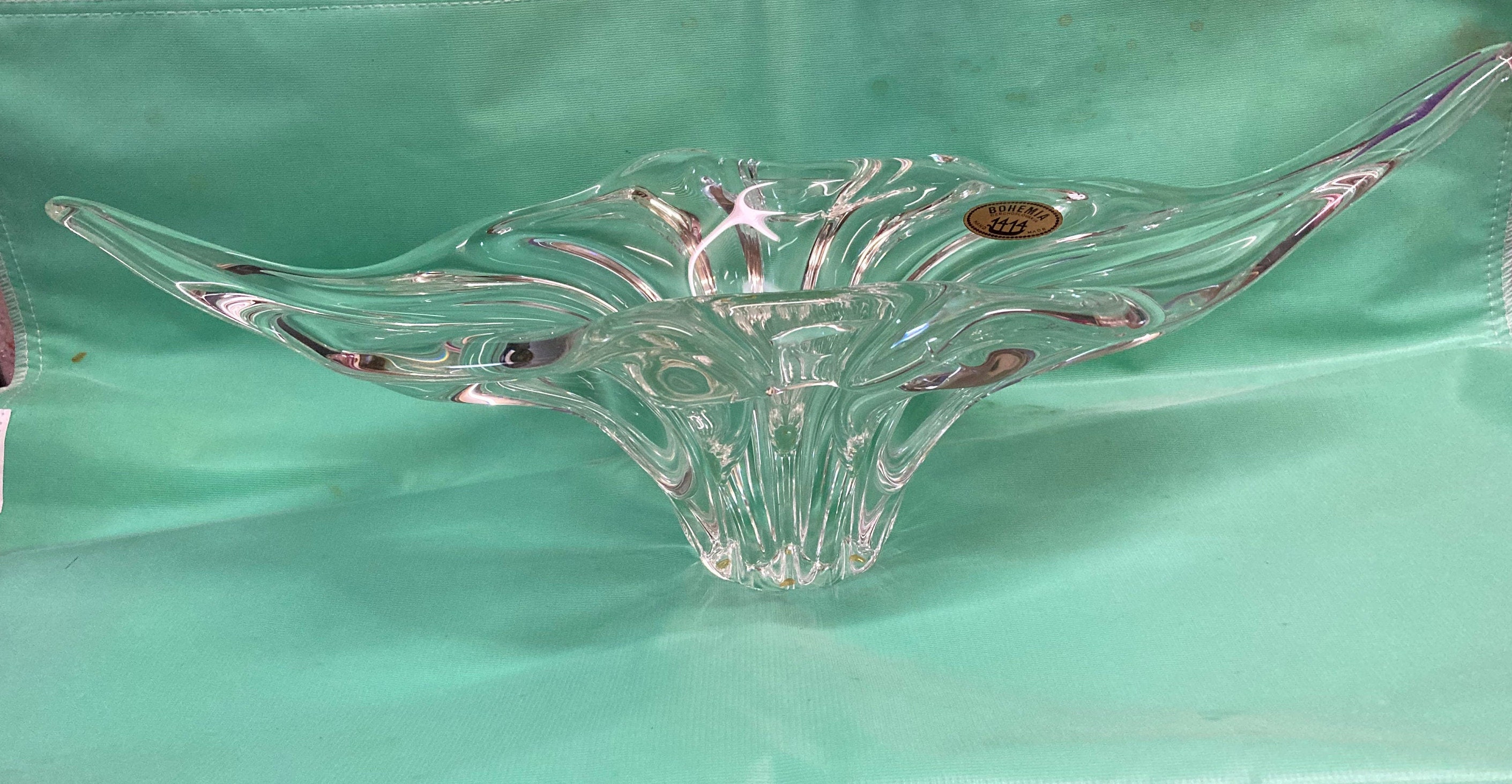 Design Period 1950 to 1959Style Vintage, BohemiaMade in Czechoslovakia Materials GlassColor ClearWidth 16,5 inchDepth 3.3 inchHeight Federal 8.1 inch