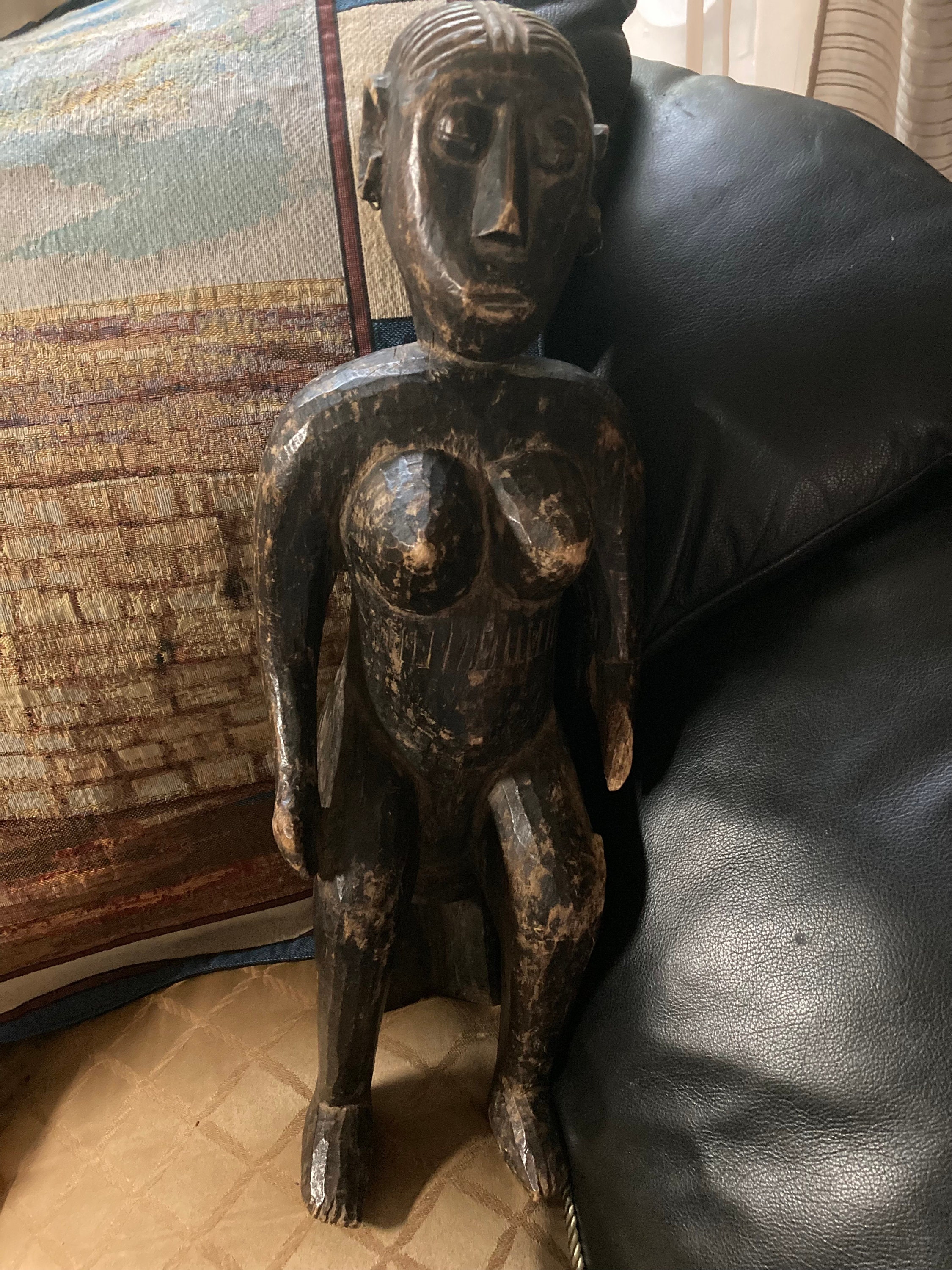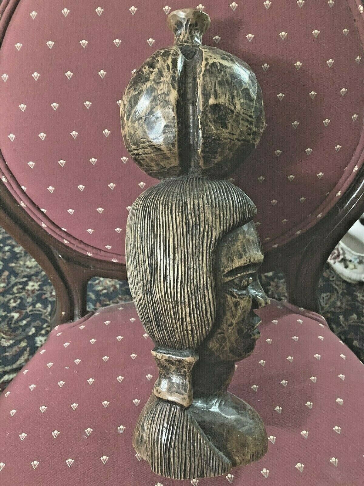 Hand Made Wood Sculpture of a girl carrying water Signed by the Artist . No Damages.