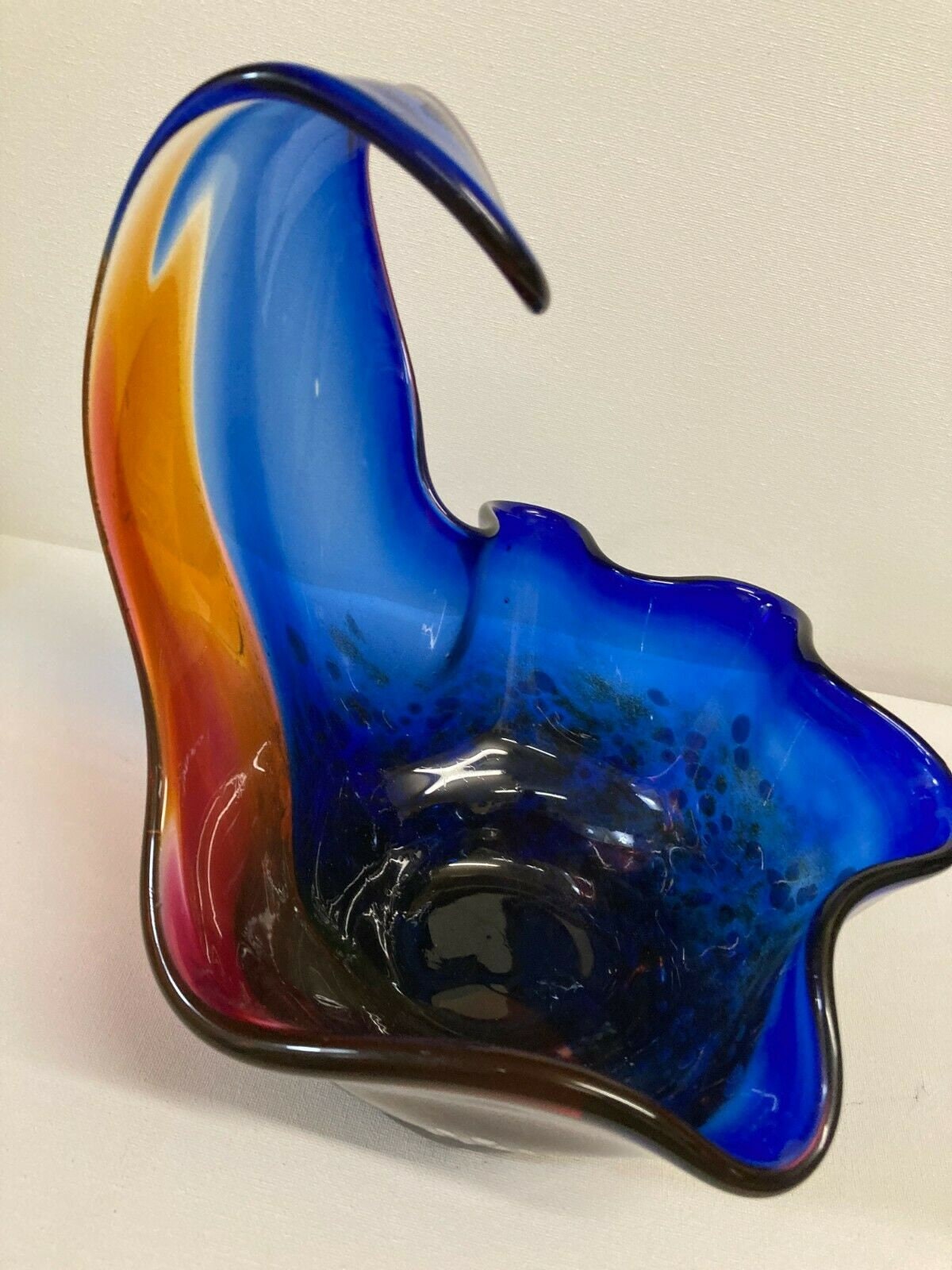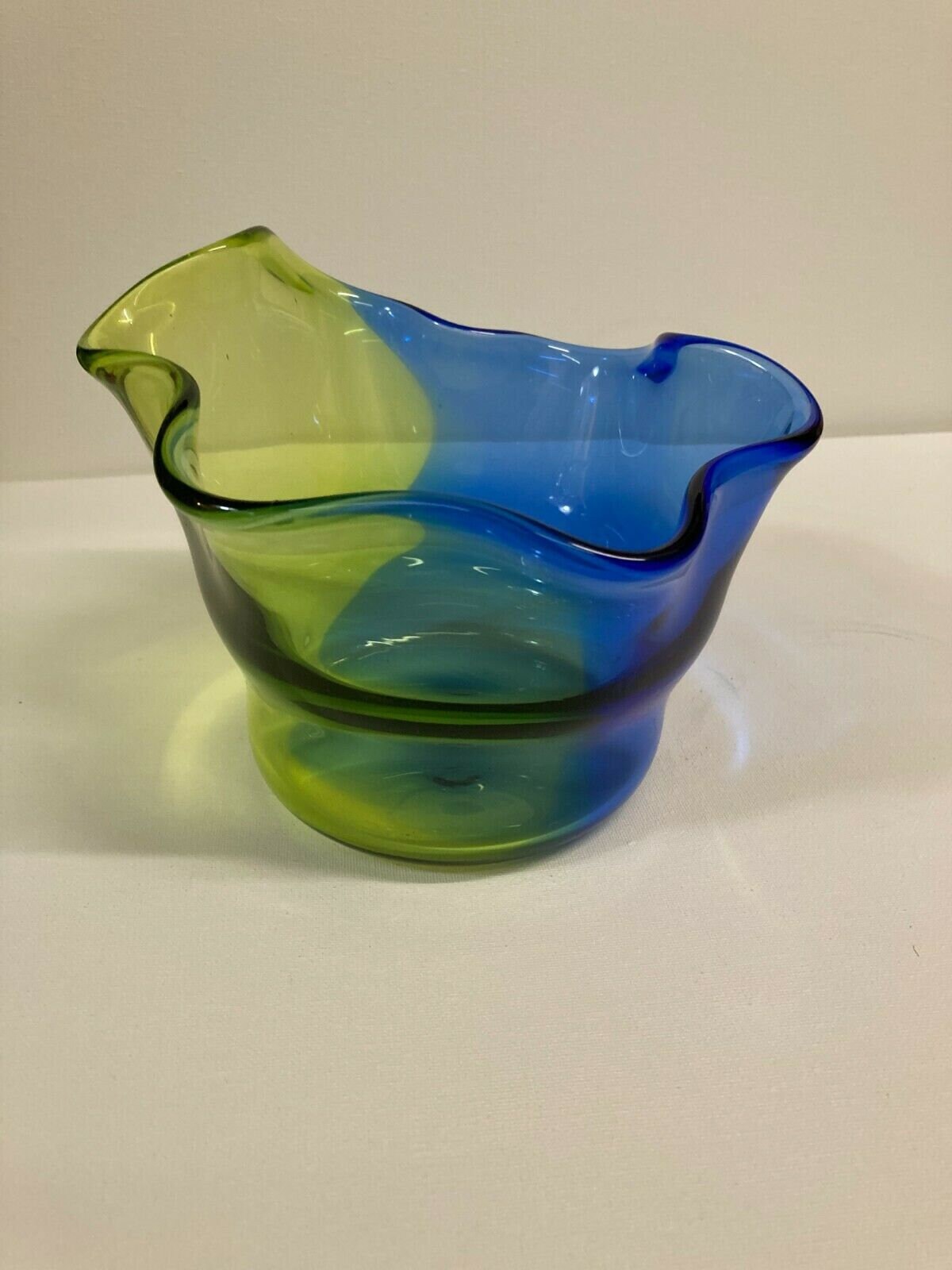 Handmade Art Deco Glass Bowl by Joshua Solomon in 2005 as inscribed in the larger bowl