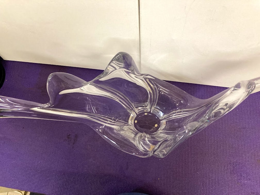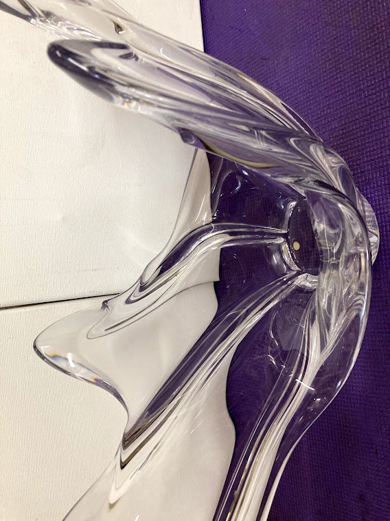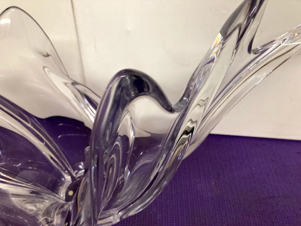 COFRAC Art Verrier France Wave Form Sculpture Crystal Bowl Signed Circa 20th Century - Vintage French Vannes Art Glass Basket Centerpiece