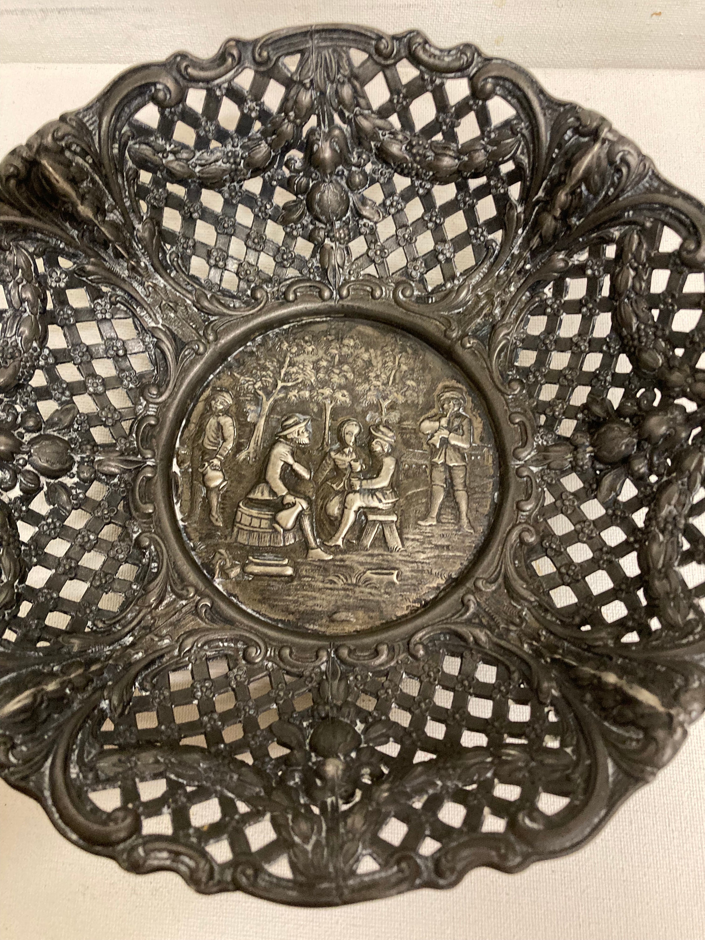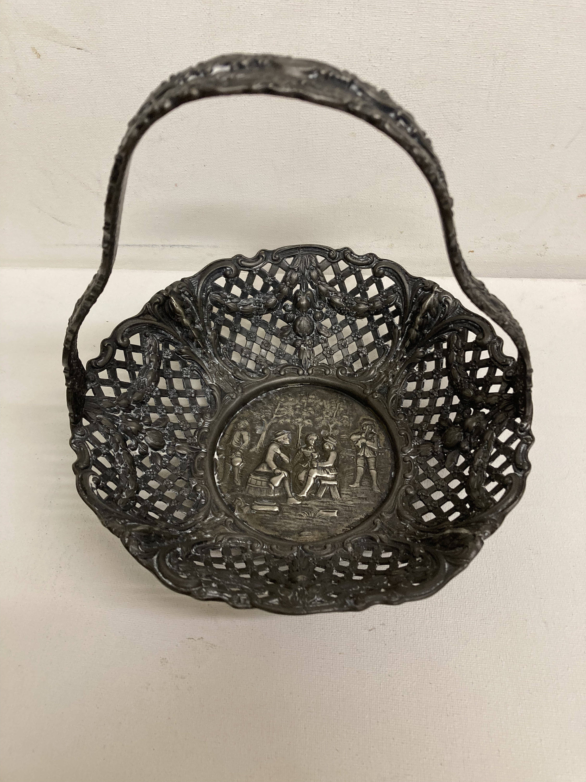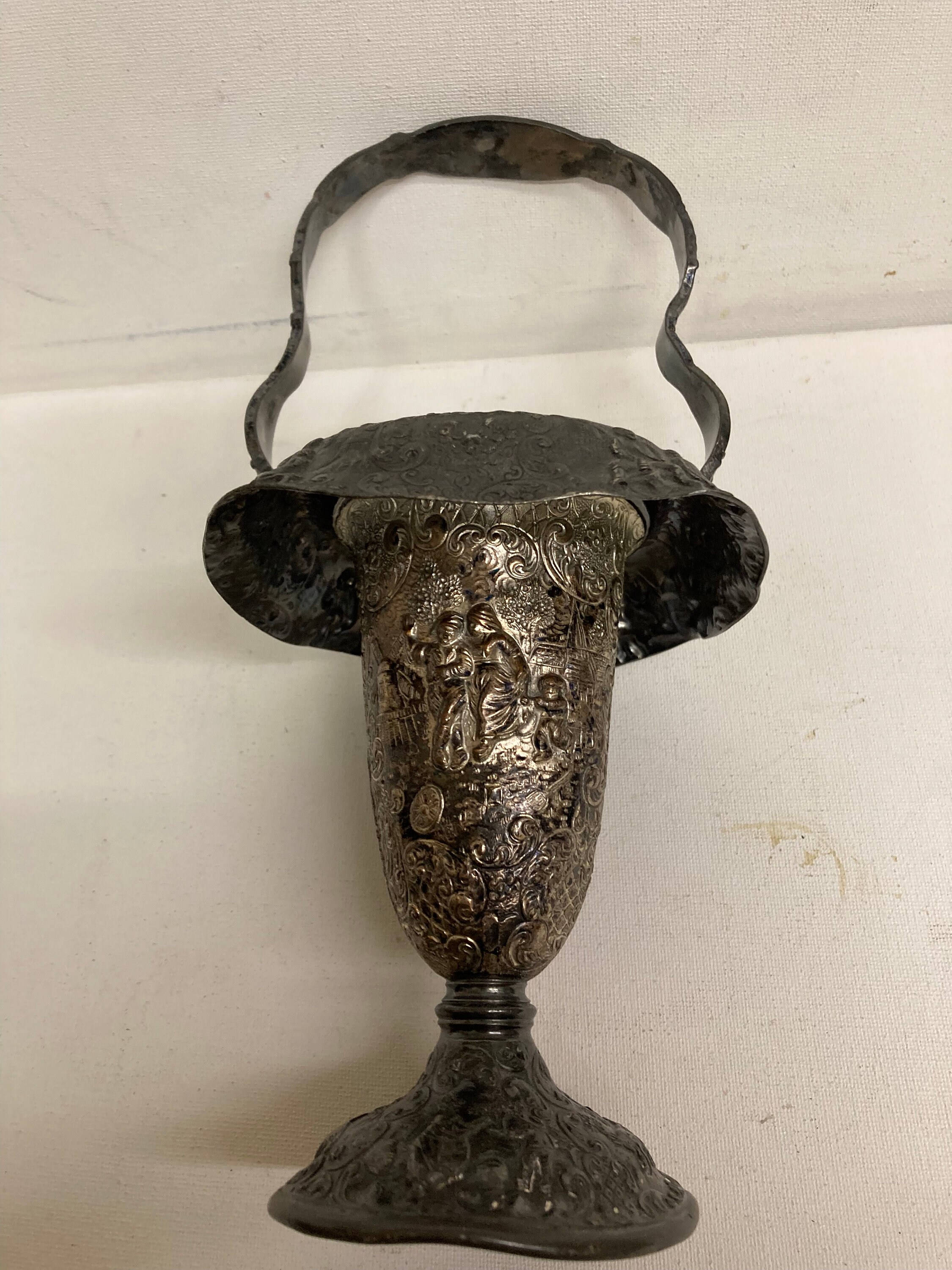Antique Victorian Barbour Silverplate Trumpet Basket Repousse Dutch Scenes.
