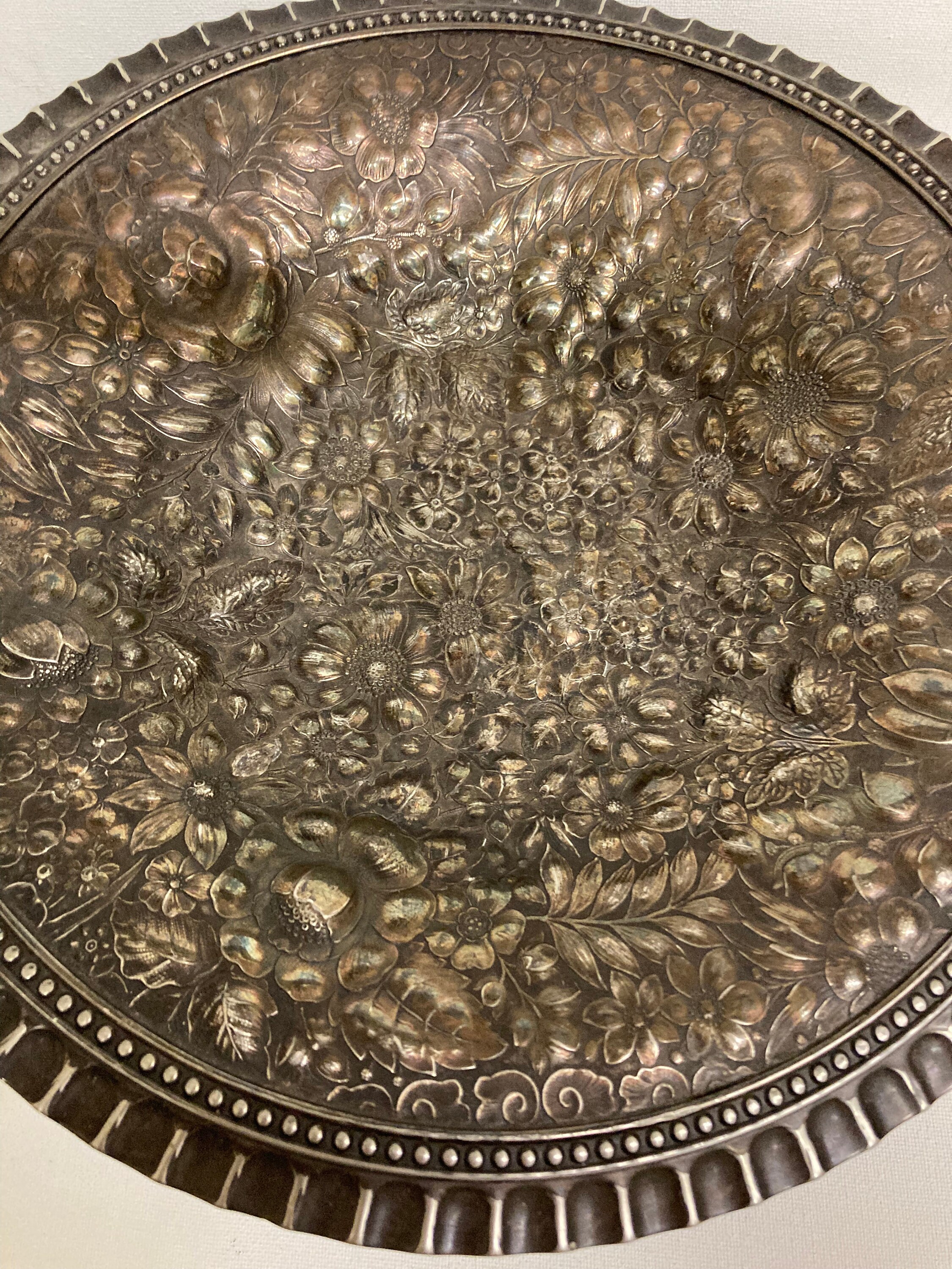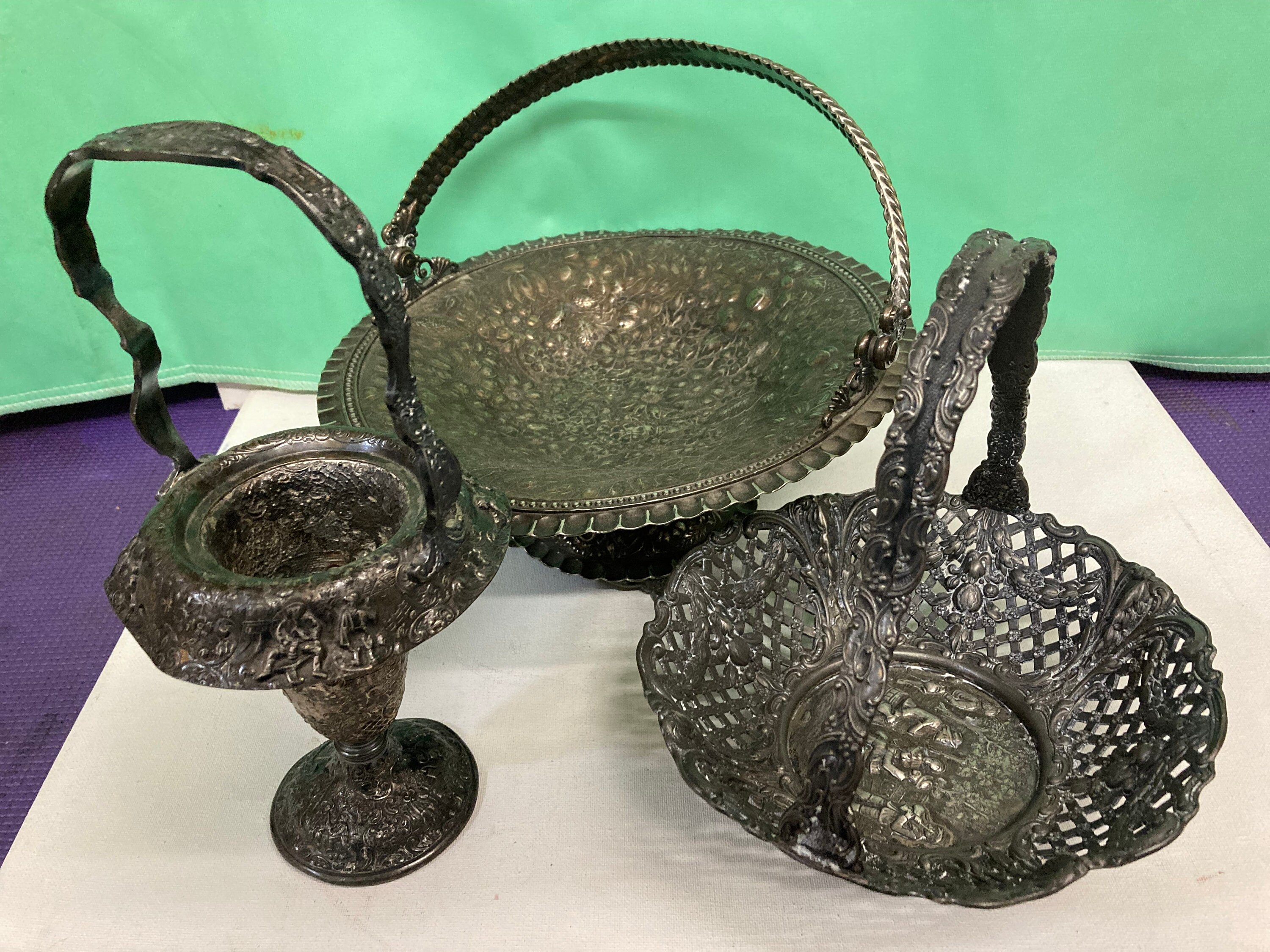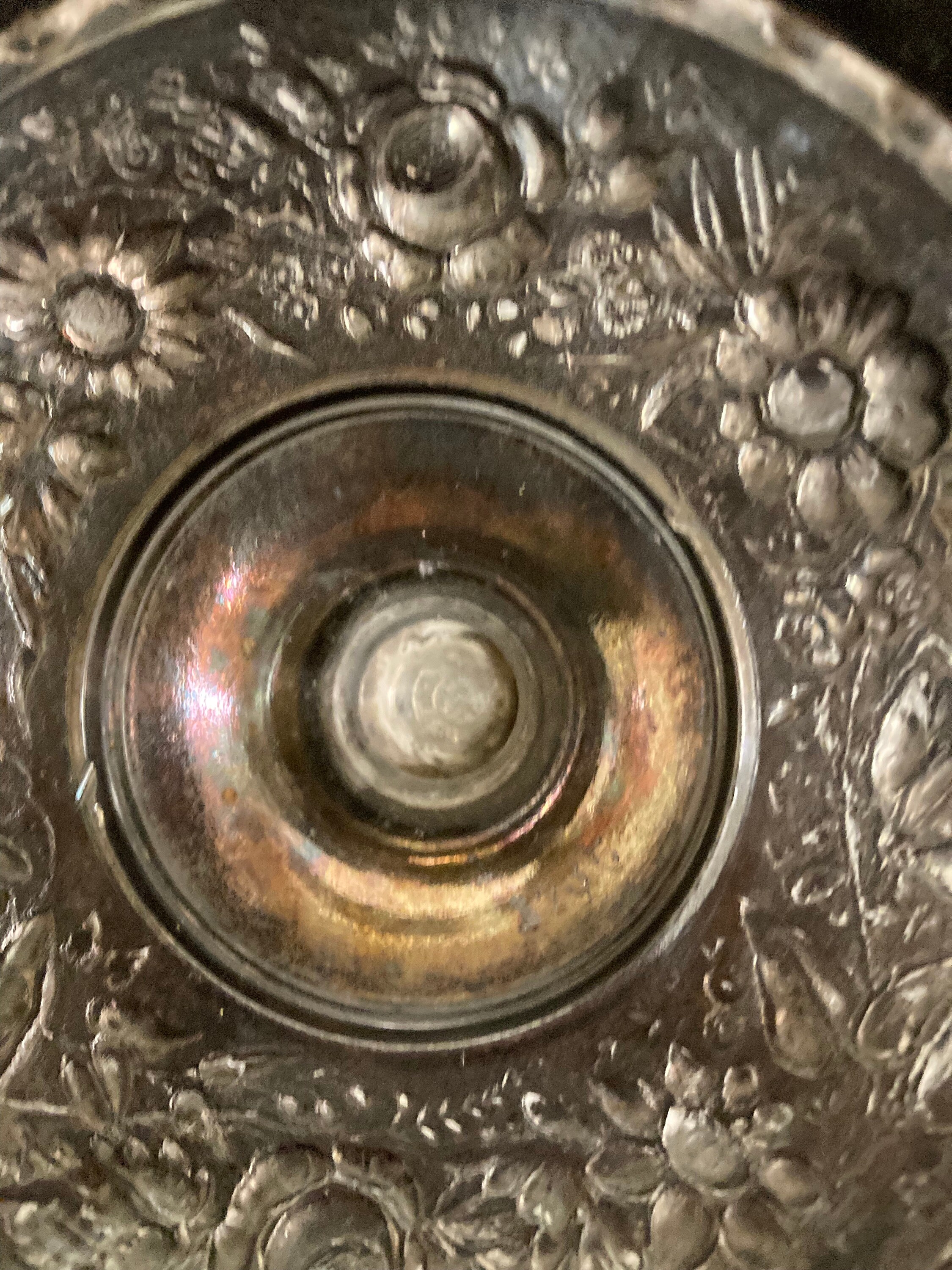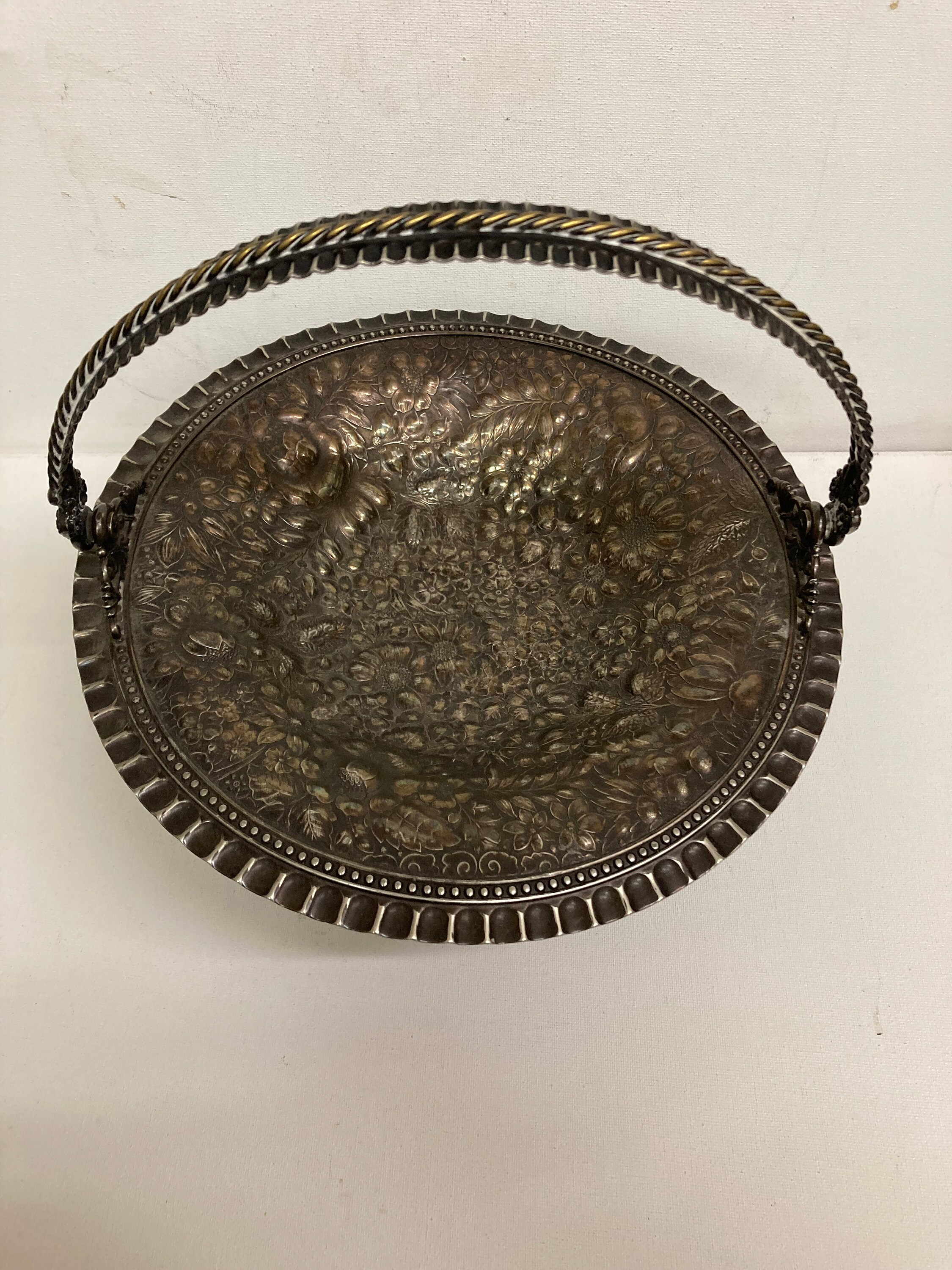 Antique Victorian Barbour Silverplate Trumpet Basket Repousse Dutch Scenes.