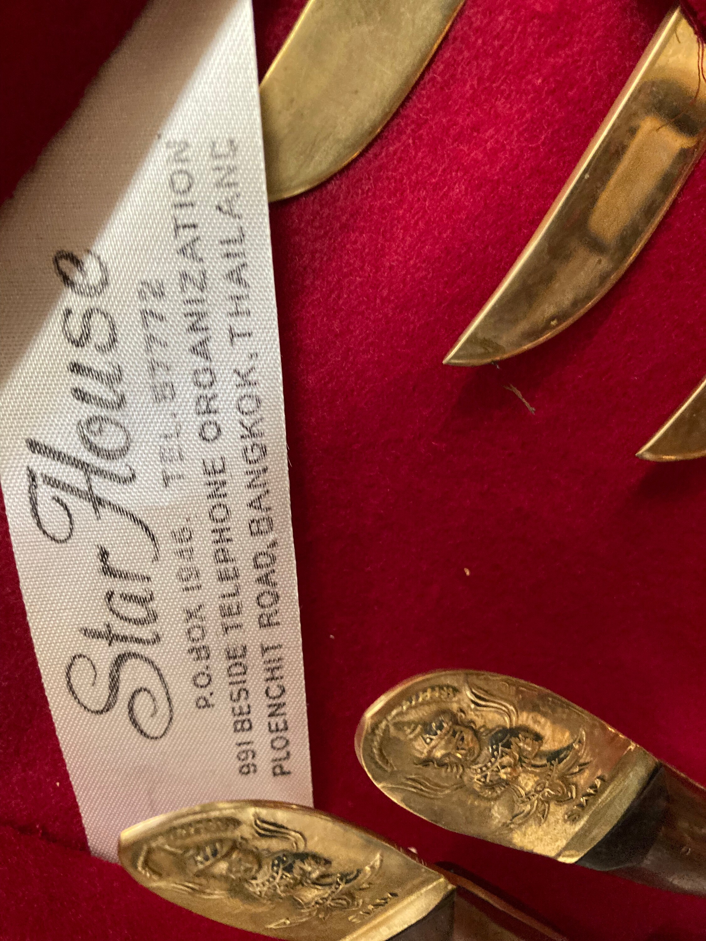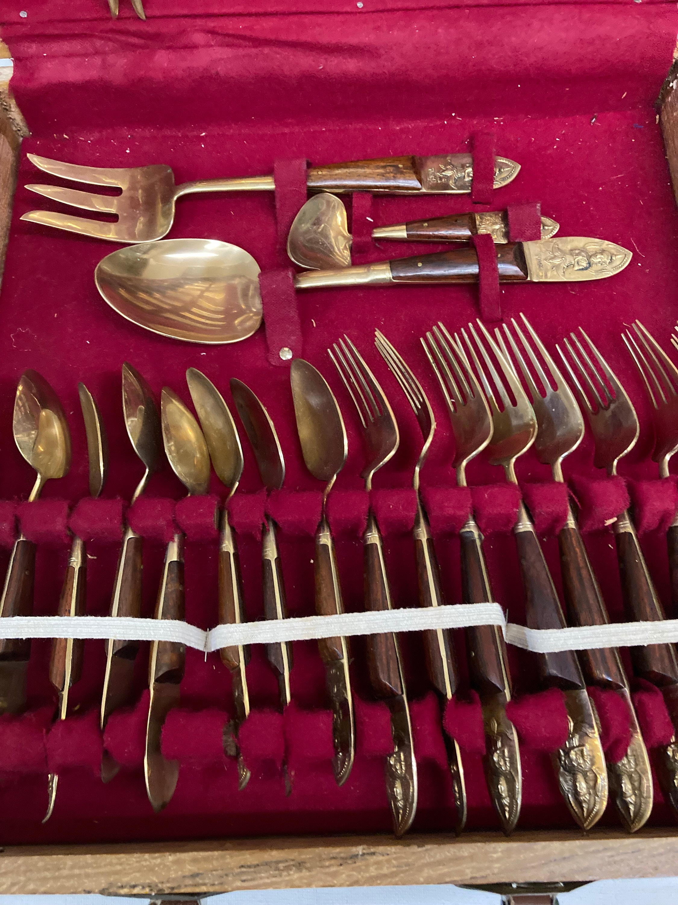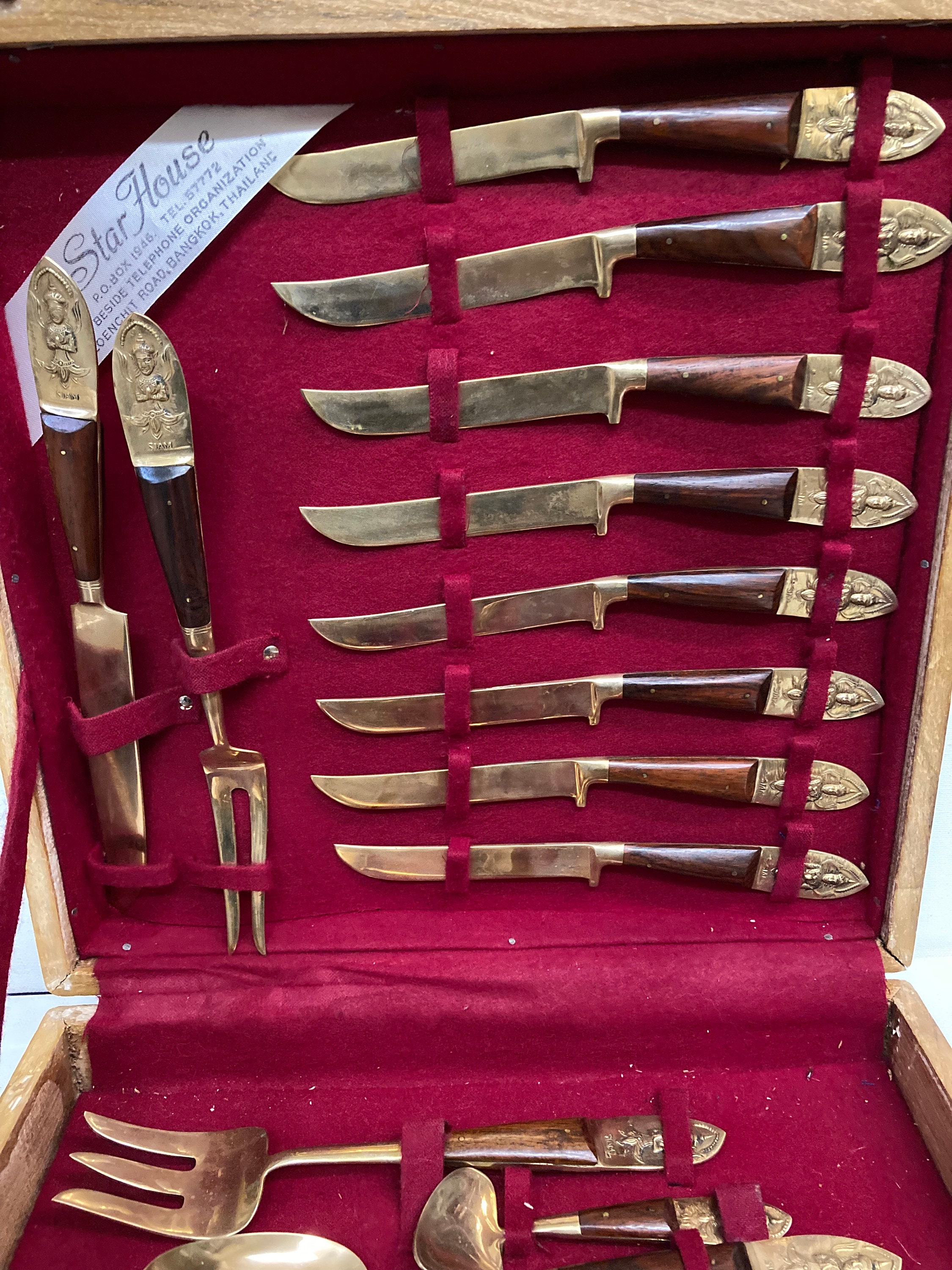 Vintage Star House Brass & Wood 29 Pc Flatware Queen Of Siam - Thailand + CASE