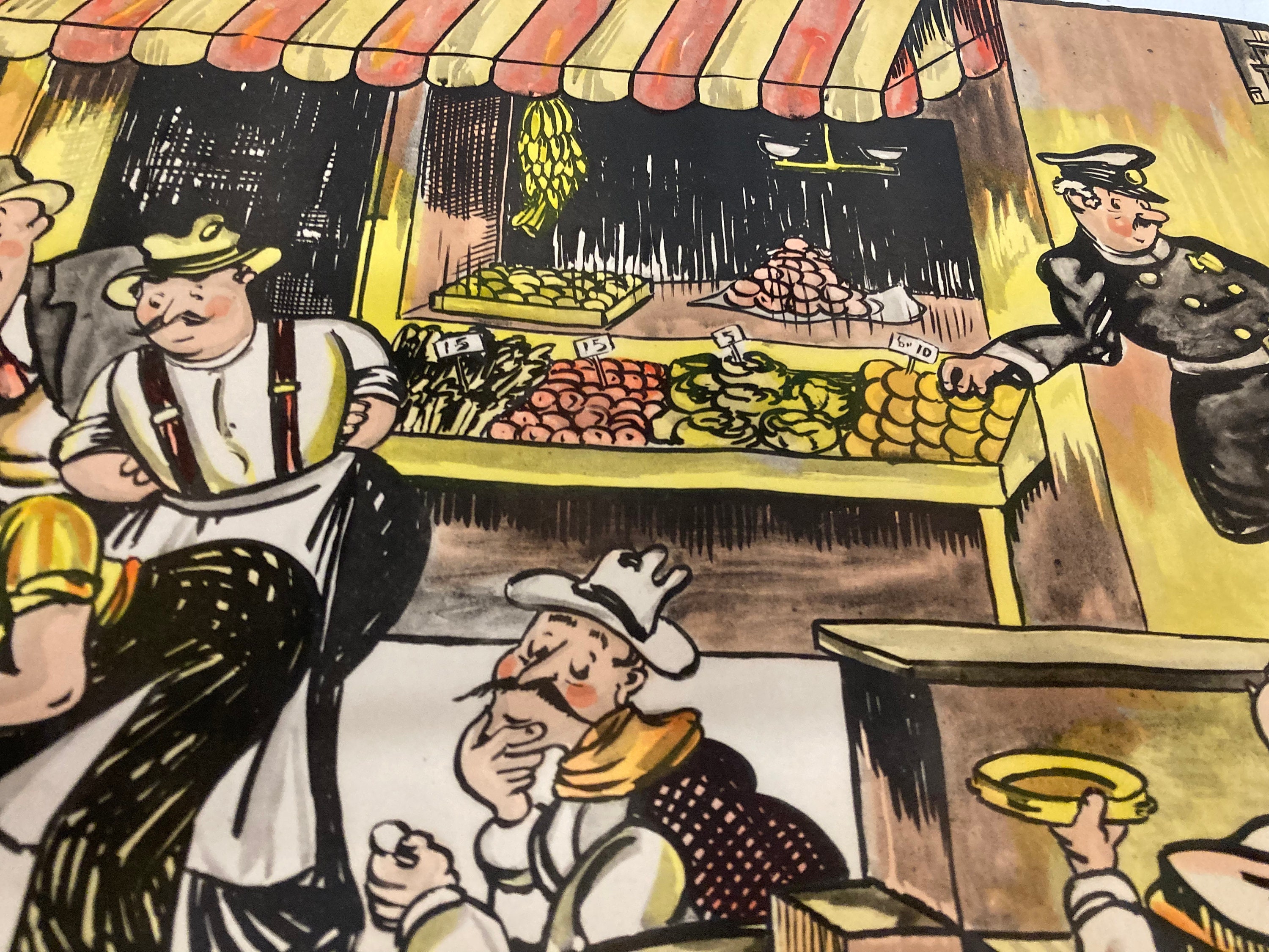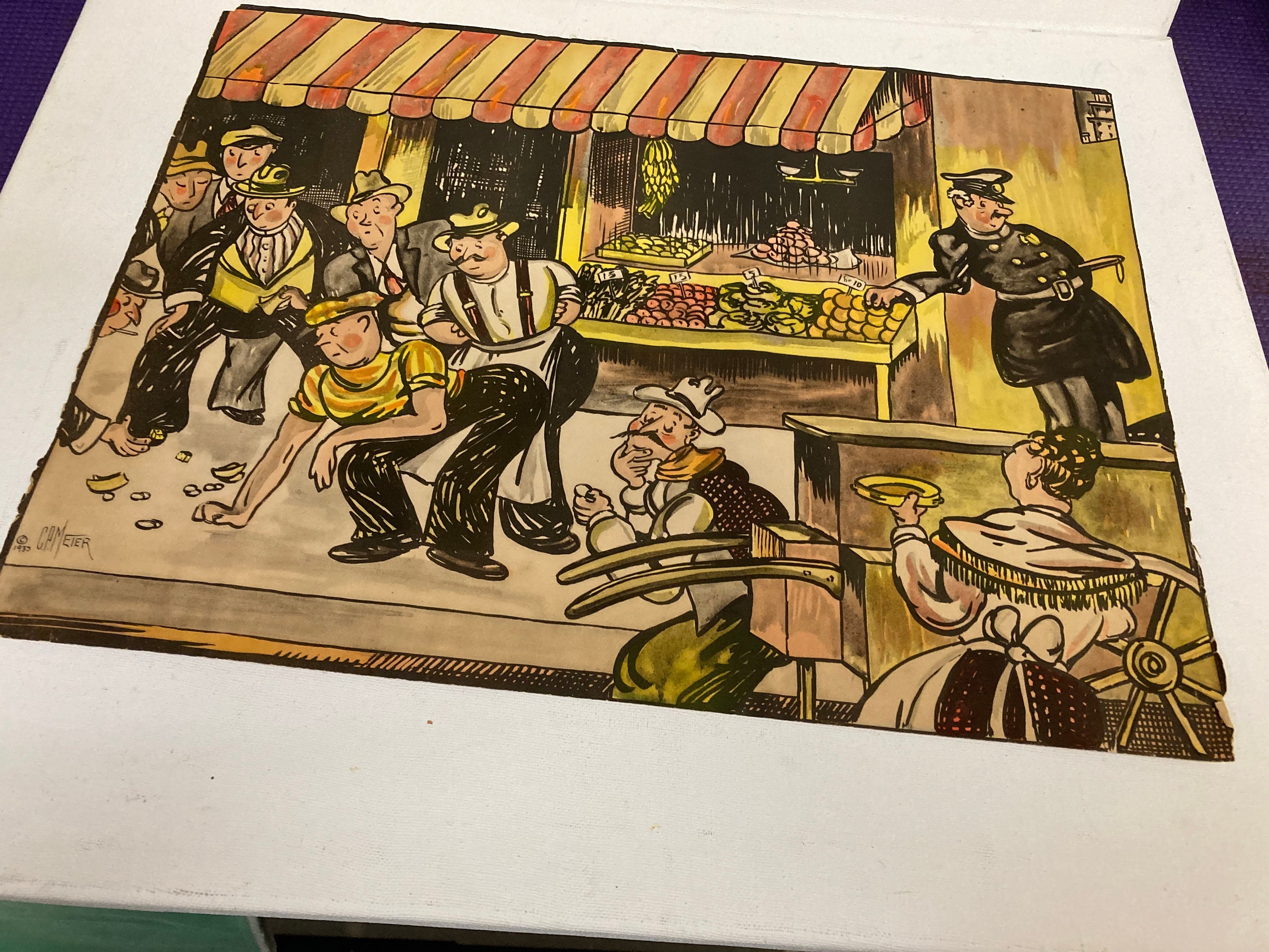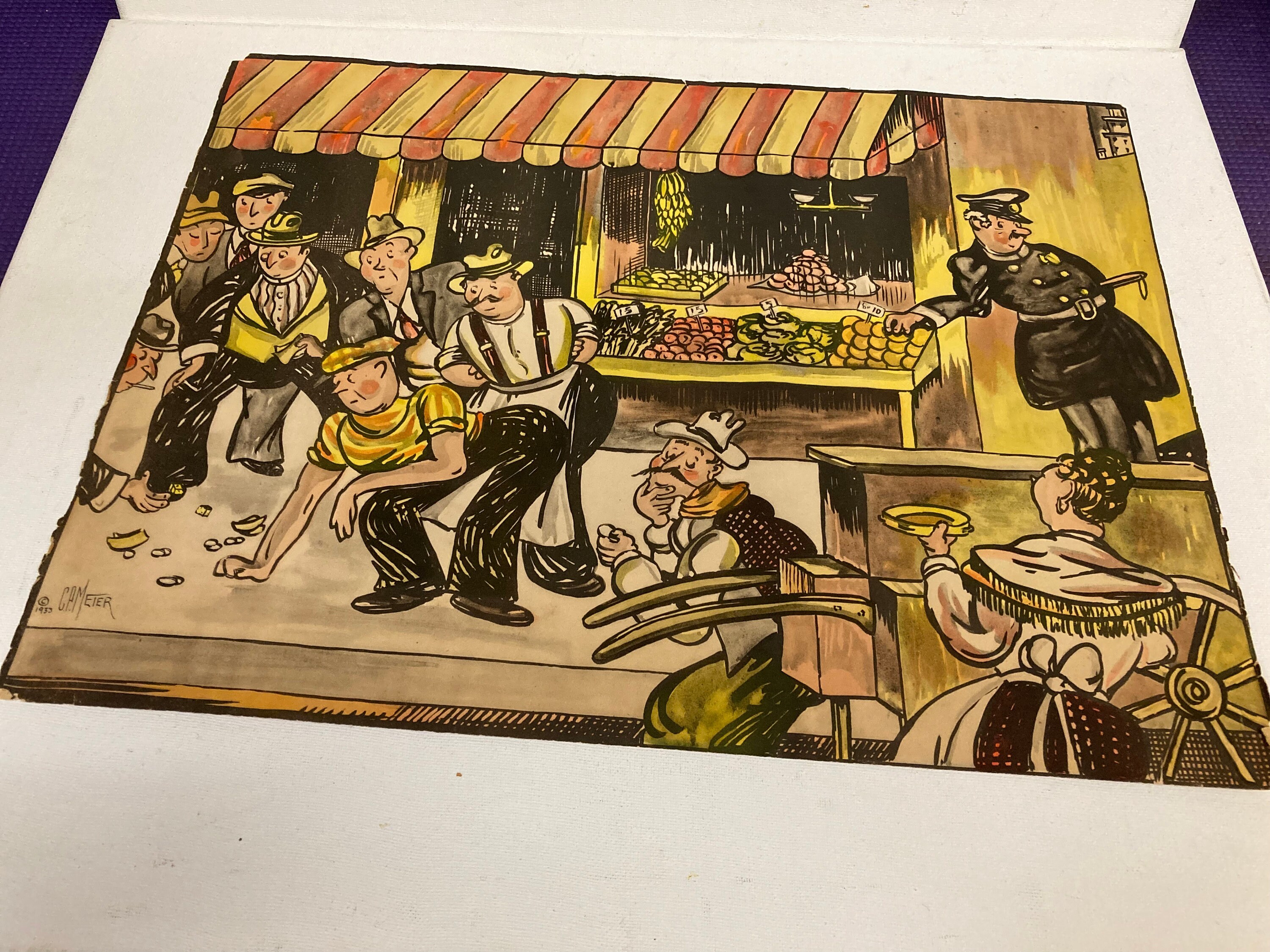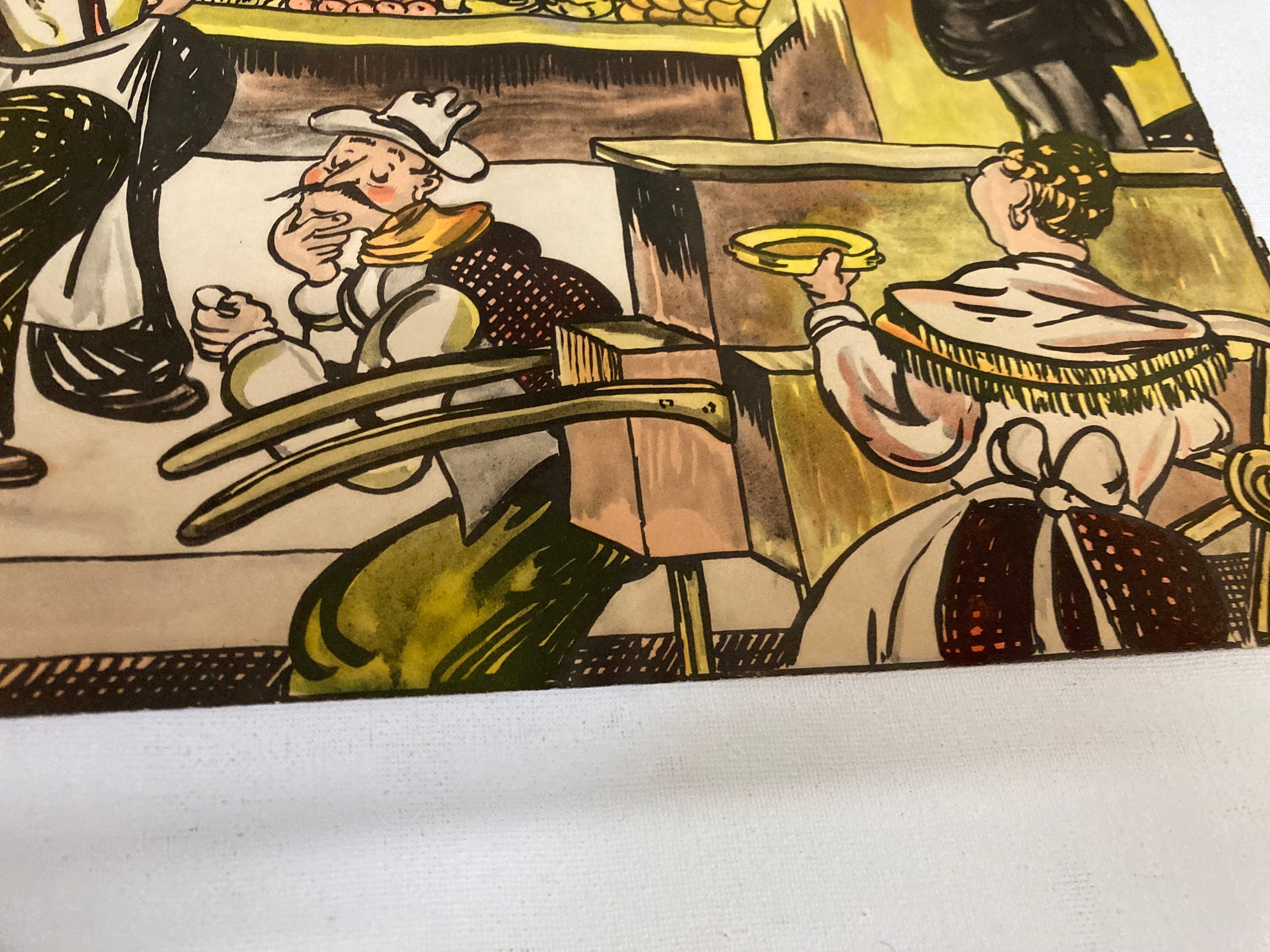 This piece was created circa 1930's. It is a watercolor and ink in paper.