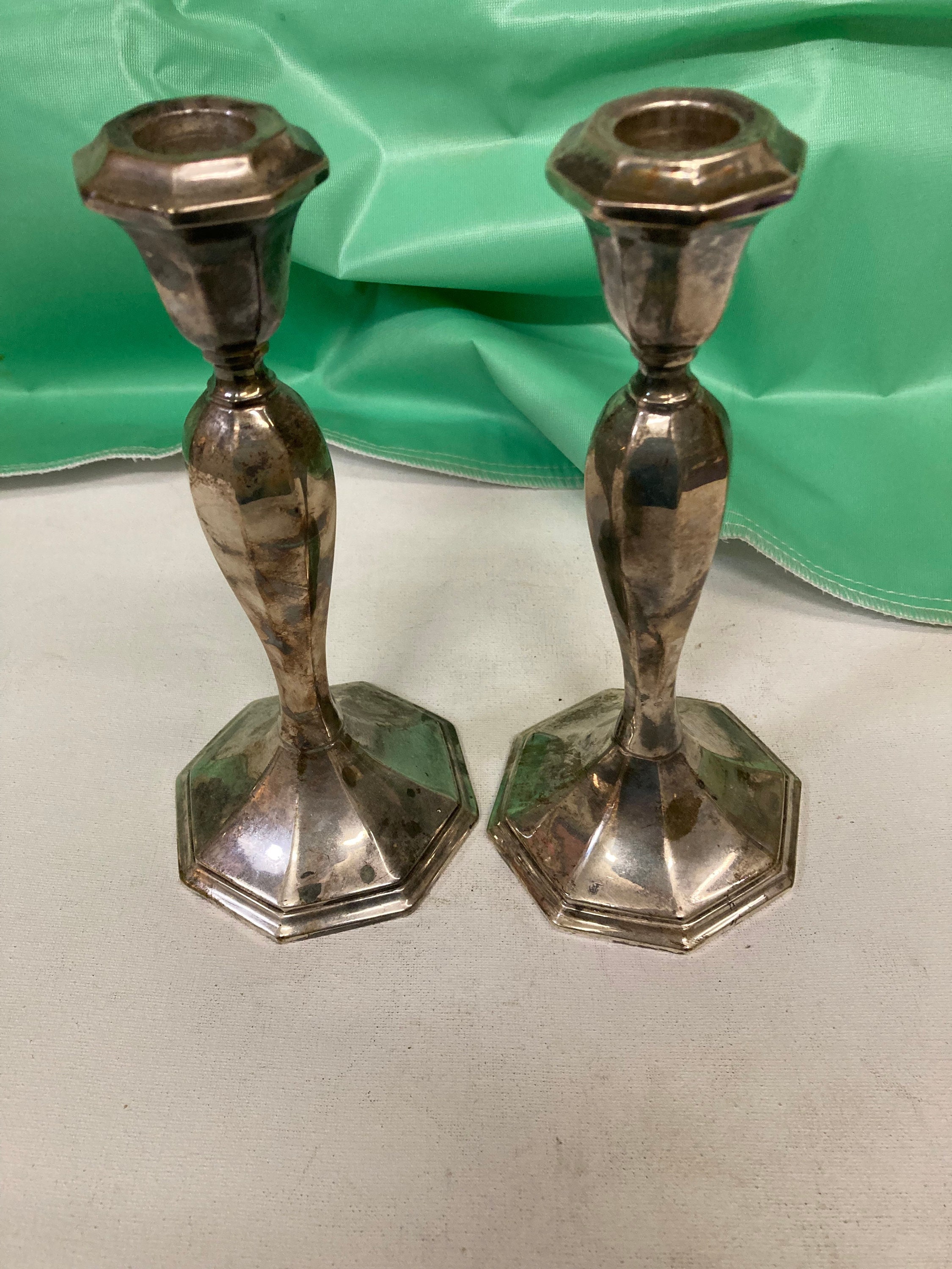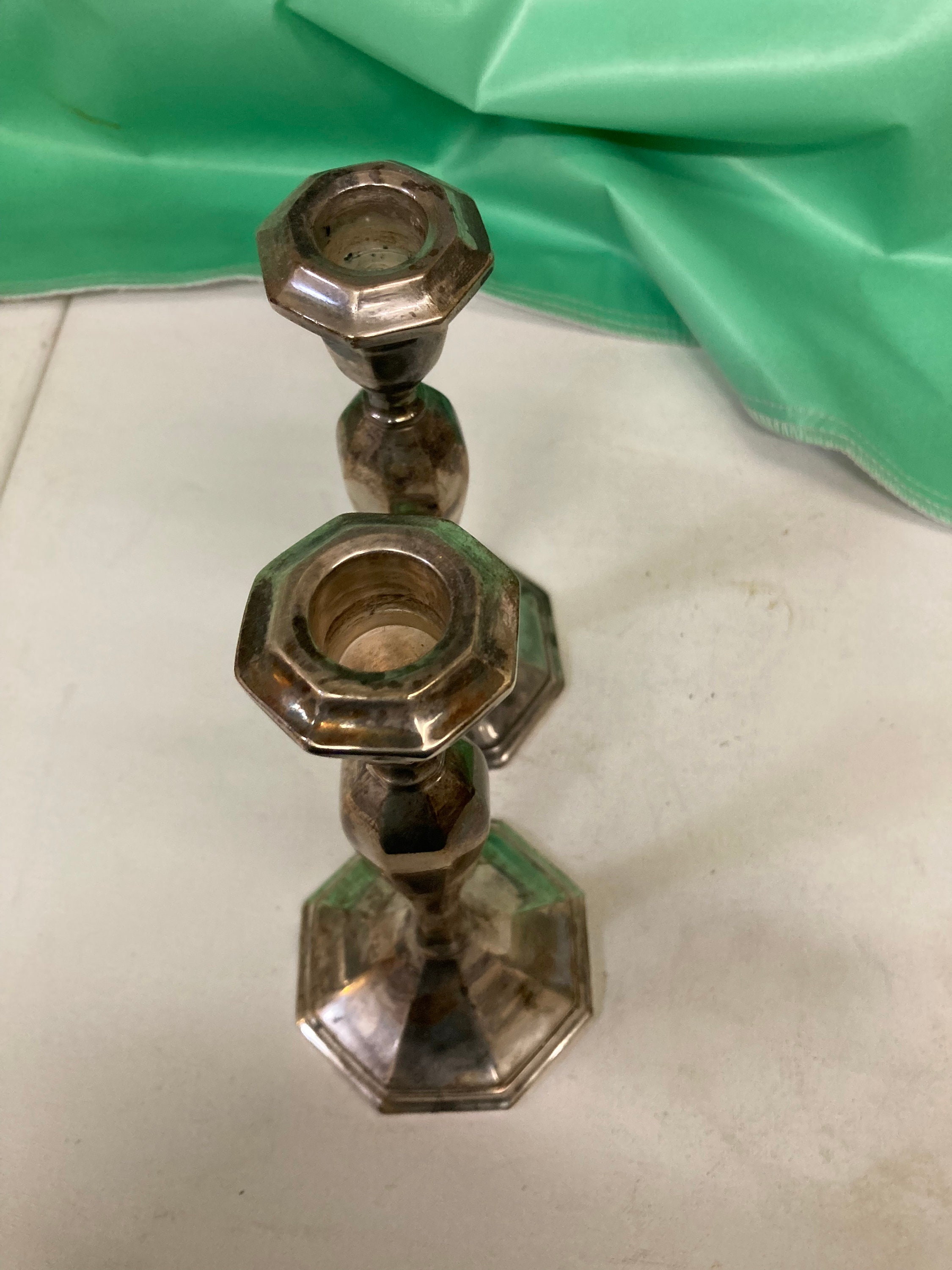 VINTAGE WALLACE BROS SILVER CO 8" ART DECO CANDLESTICK HOLDERS SILVER PLATE 5010