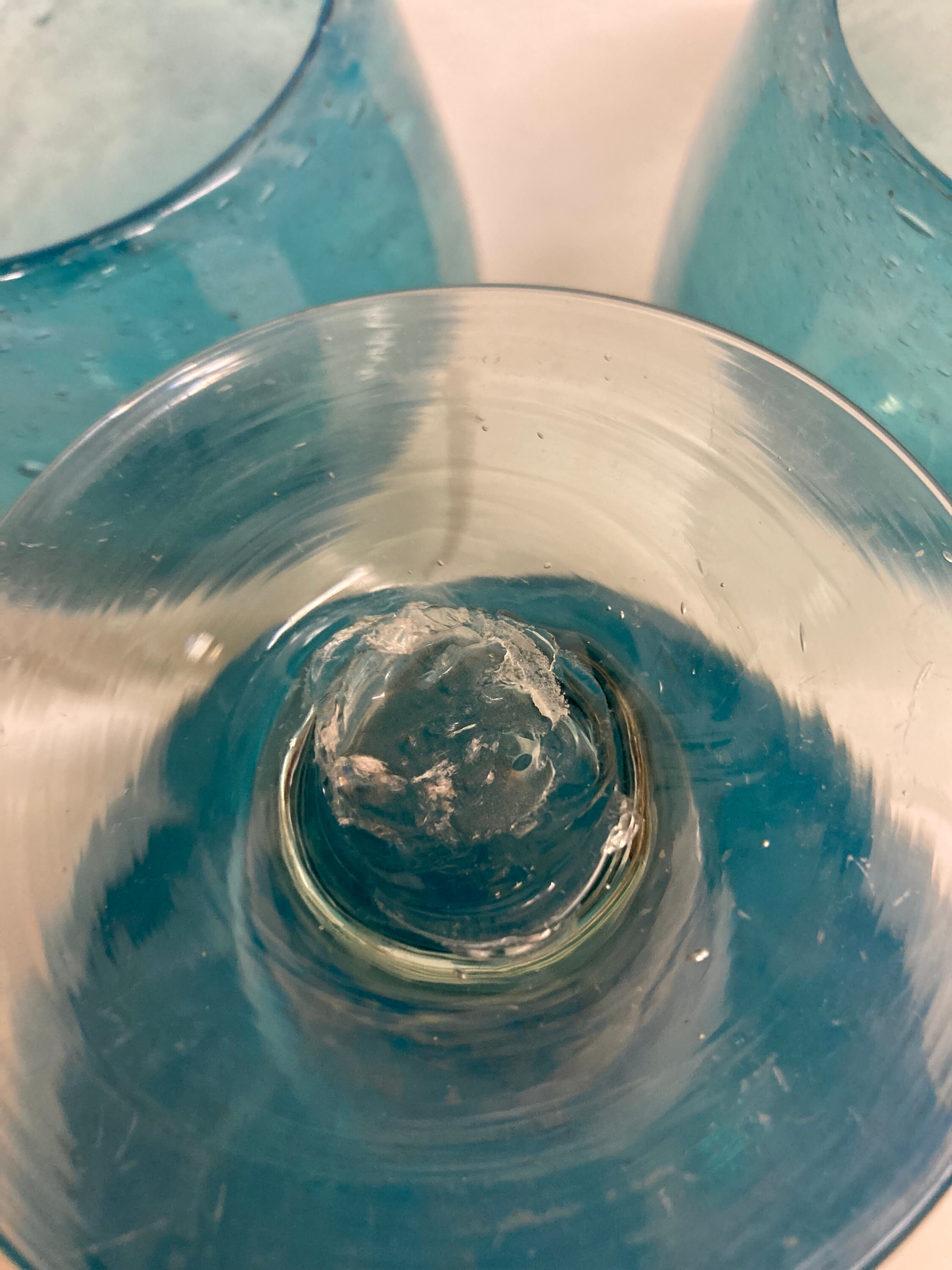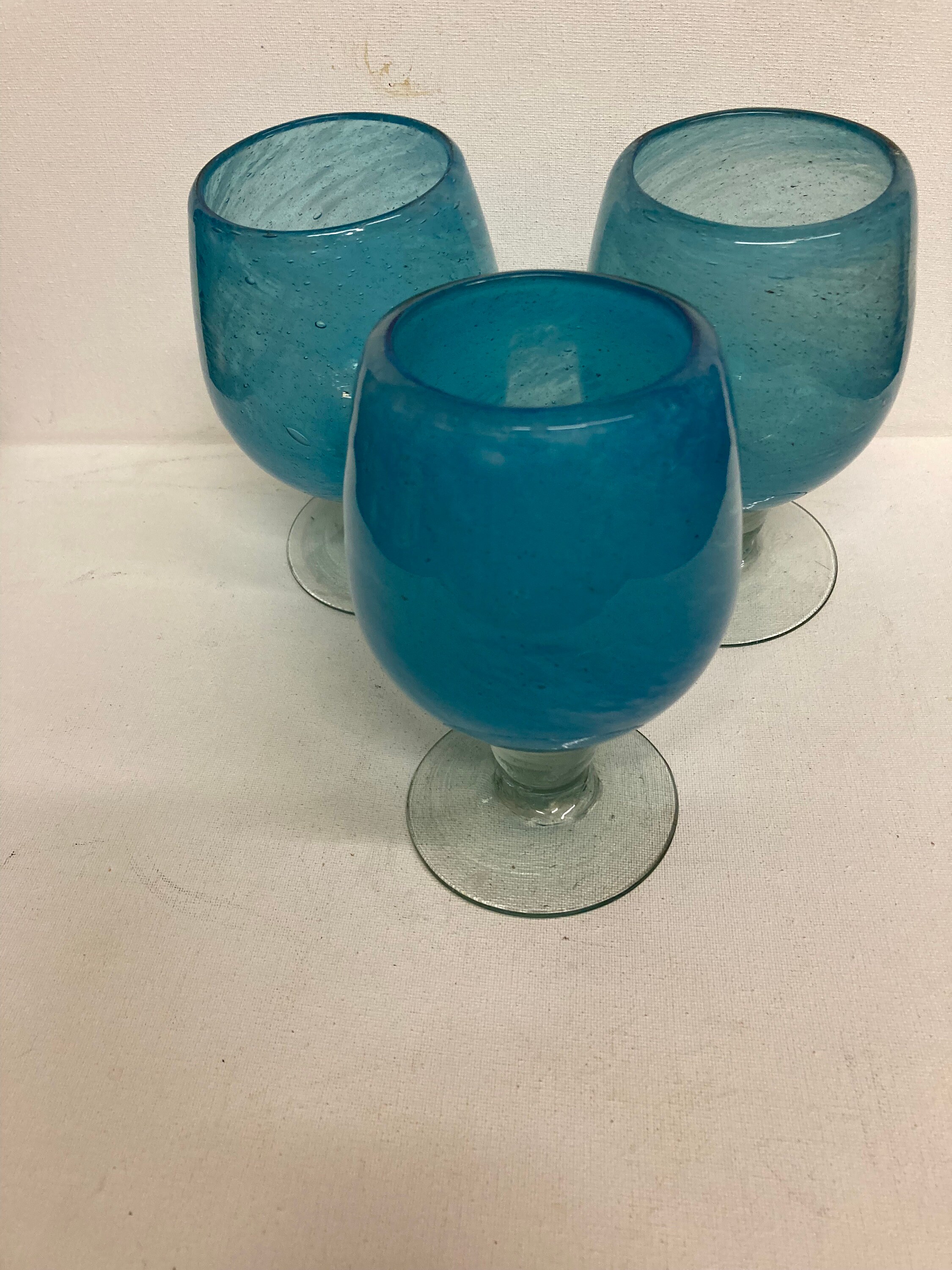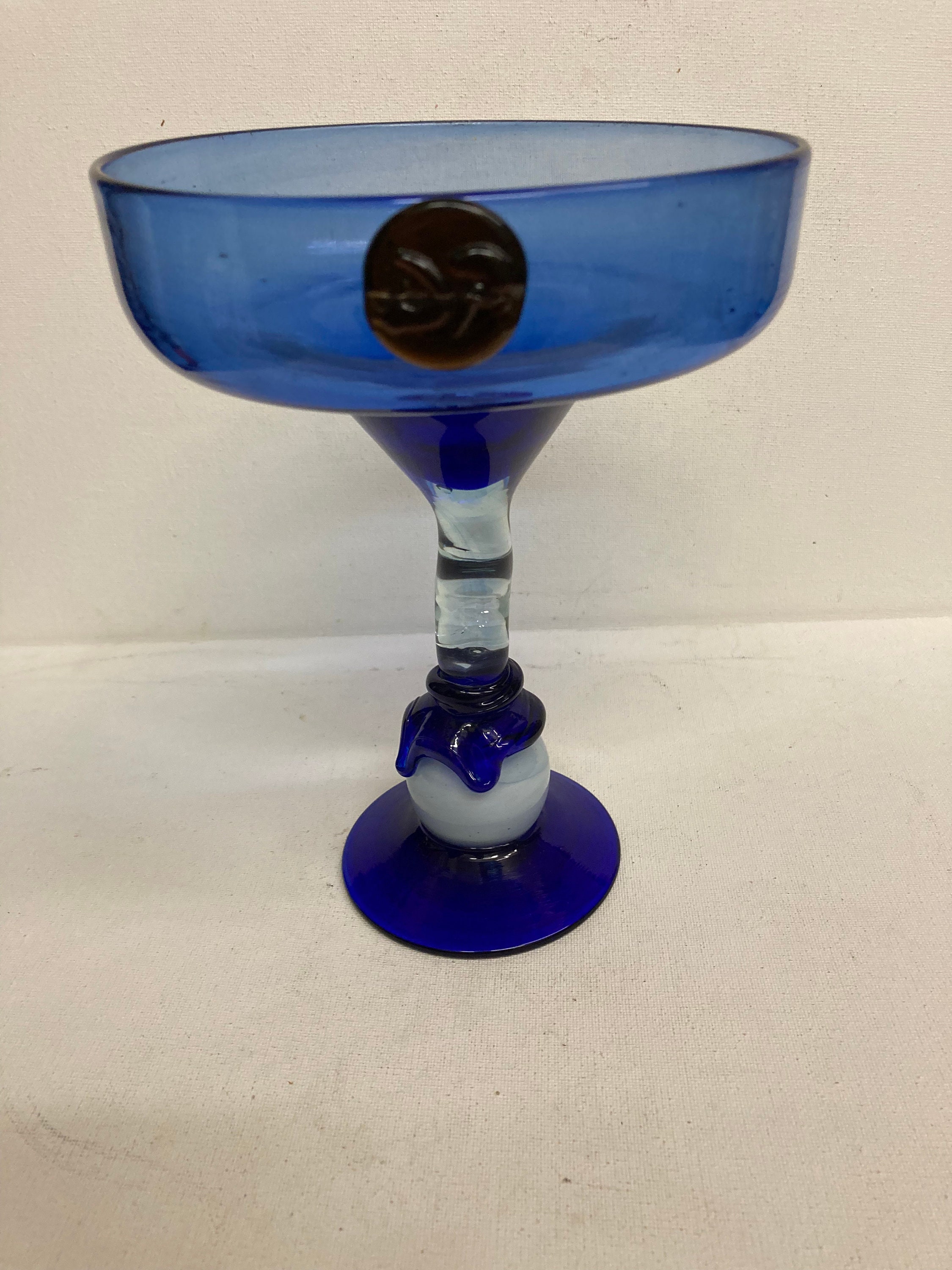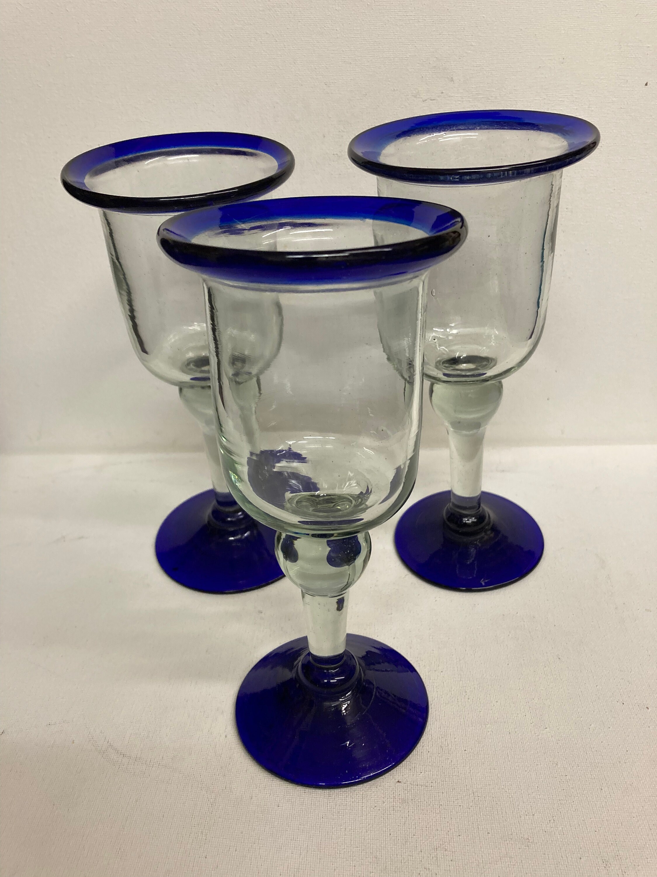 One Tall Blue , Clear and White Glass .possible use of fruit cocktail, or Martini 8 x 5.5 x 3Three Clear and Cobalt Blue Glasses 8 1/4 x 3 3/4 x 3Three Clear and Light Blue Glasses 6x 3.5 x 3