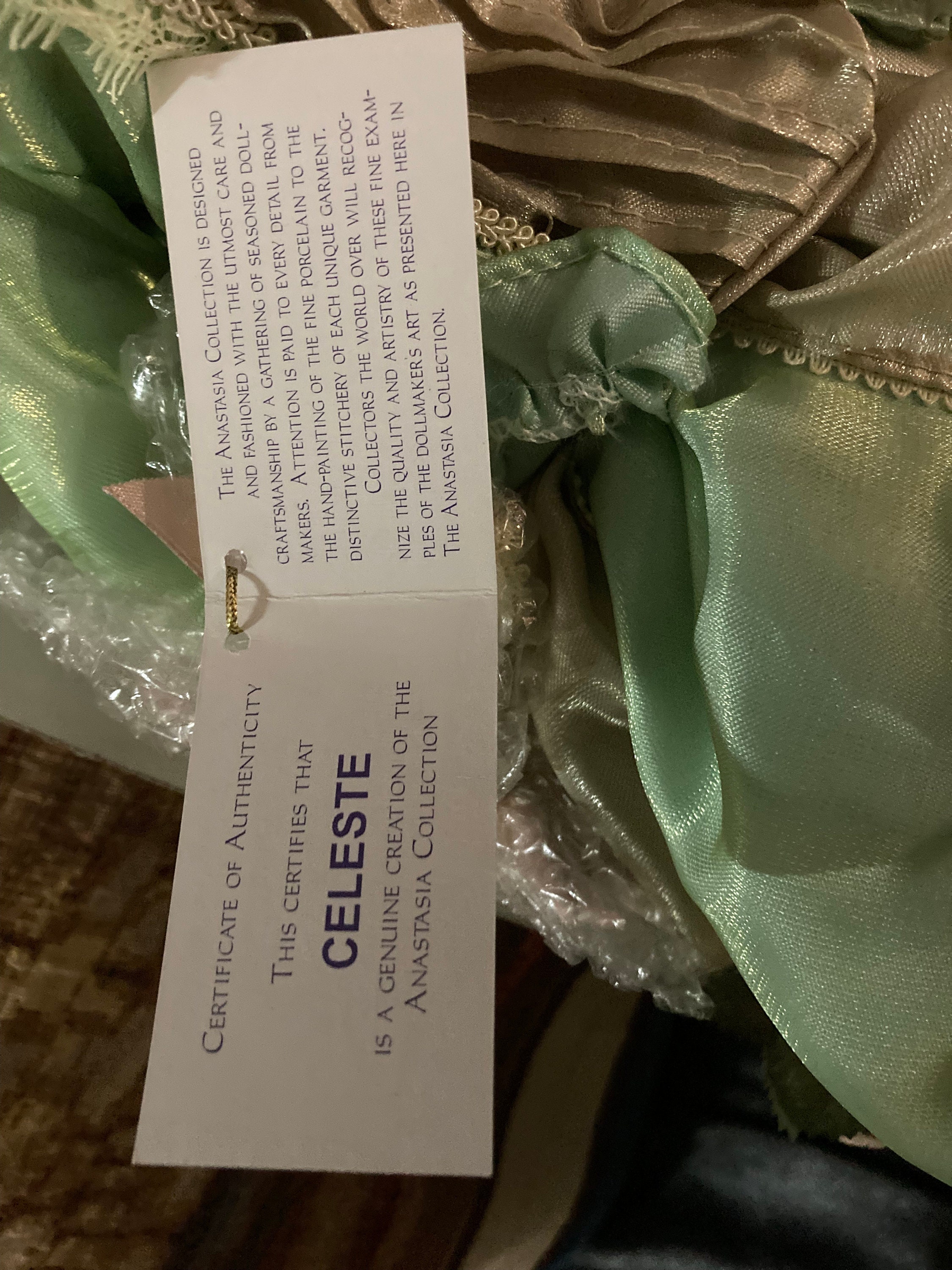 The Anestesia Porcelain Doll Collection, CelesteMeasures 22'' tallMade of Beautiful PorcelainMagnificent Mint Color DressGreat gift for her.Collector's ItemExcellent Condition Only opened for Photo New