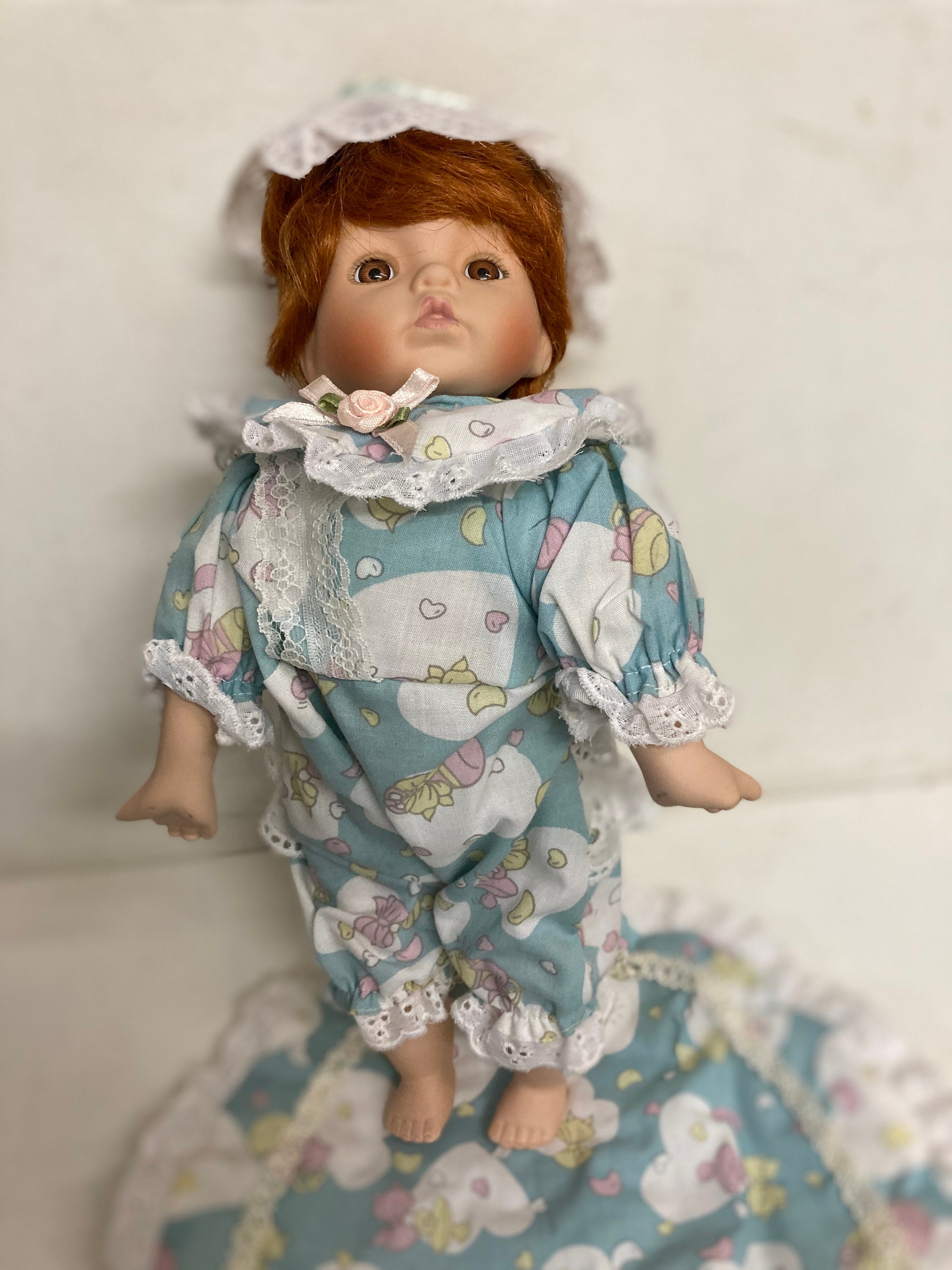 Porcelain Baby Doll12 " Tall With Matching Blanket & HatPerfect ConditionOut Of original Box