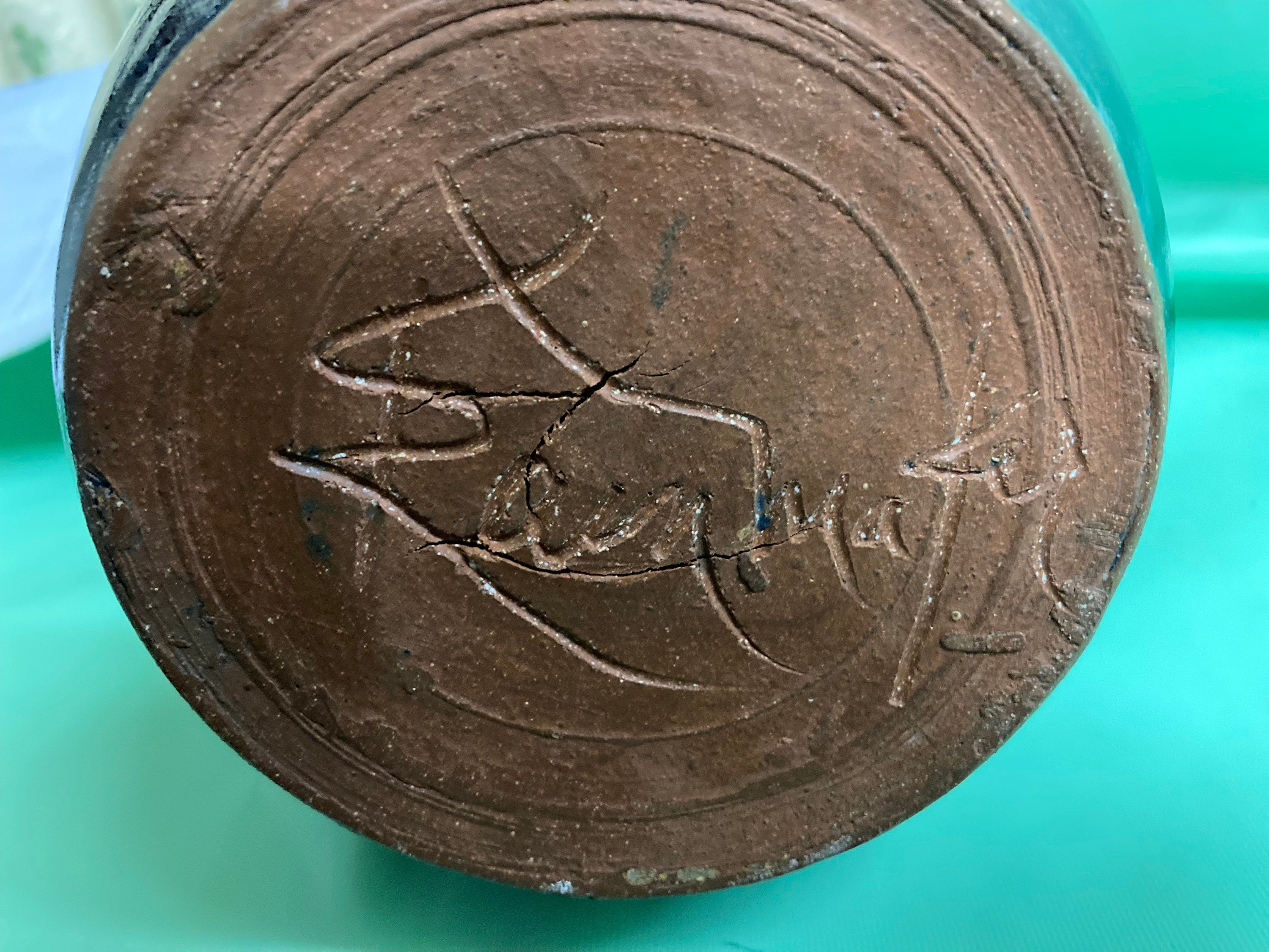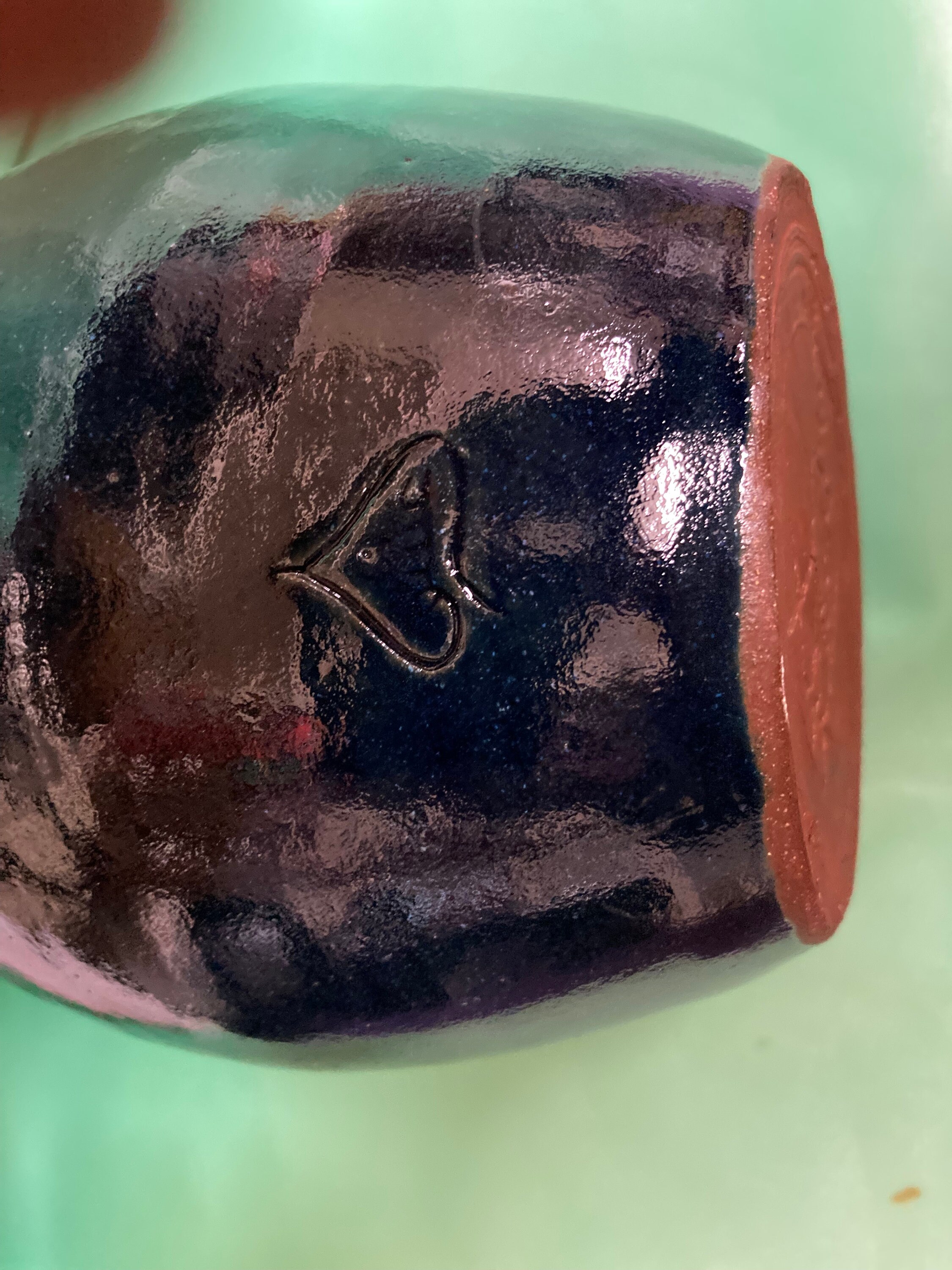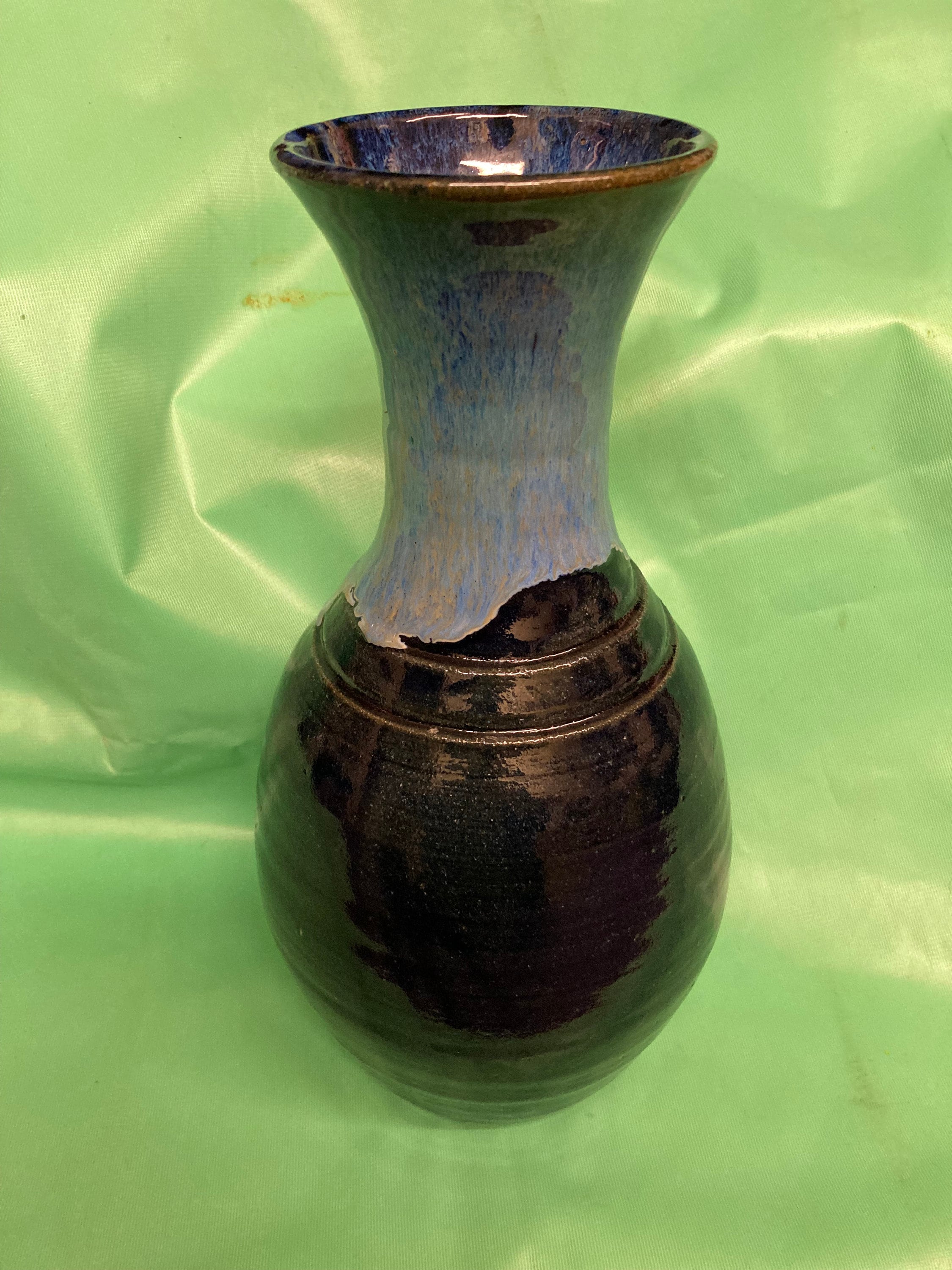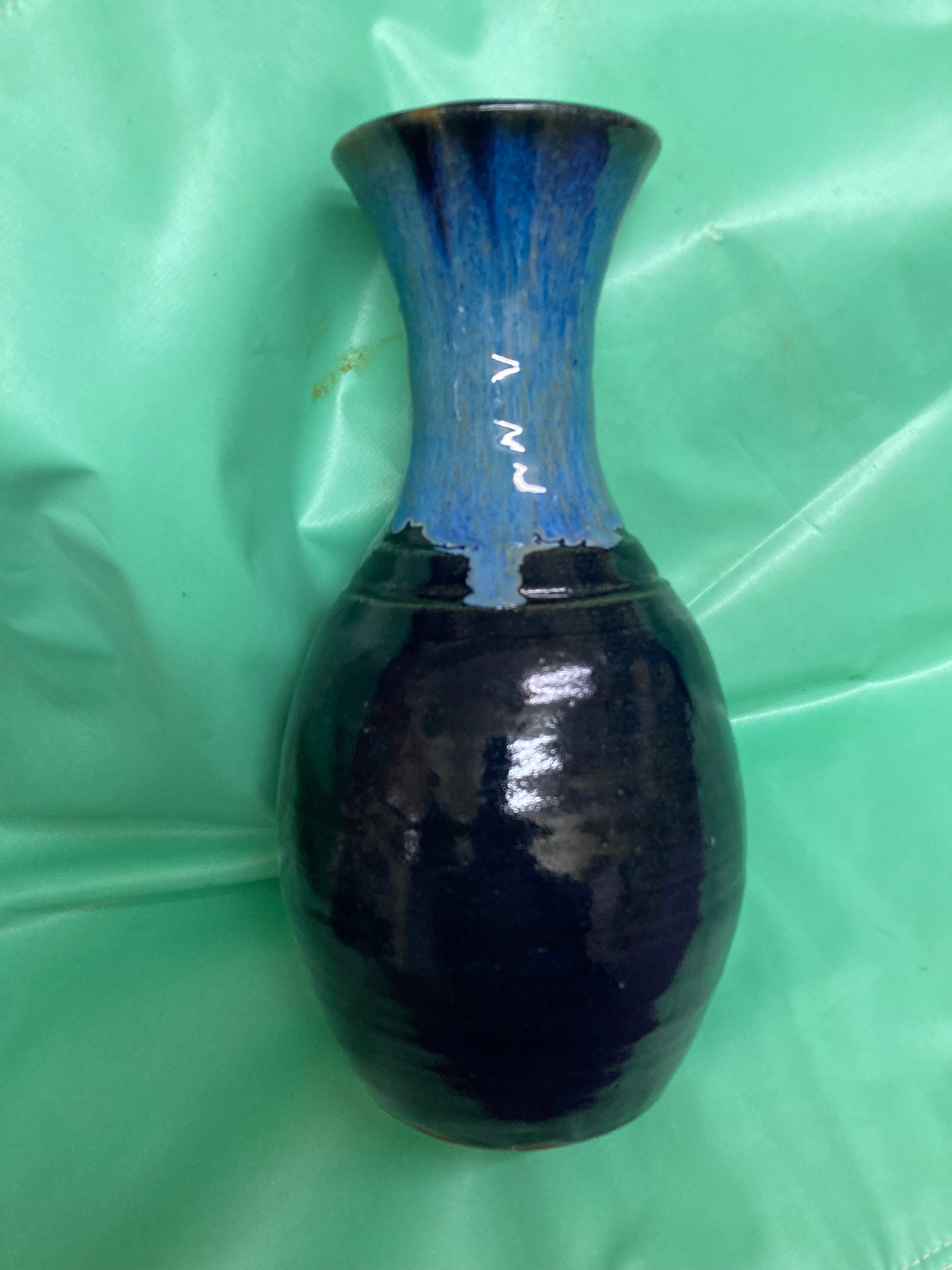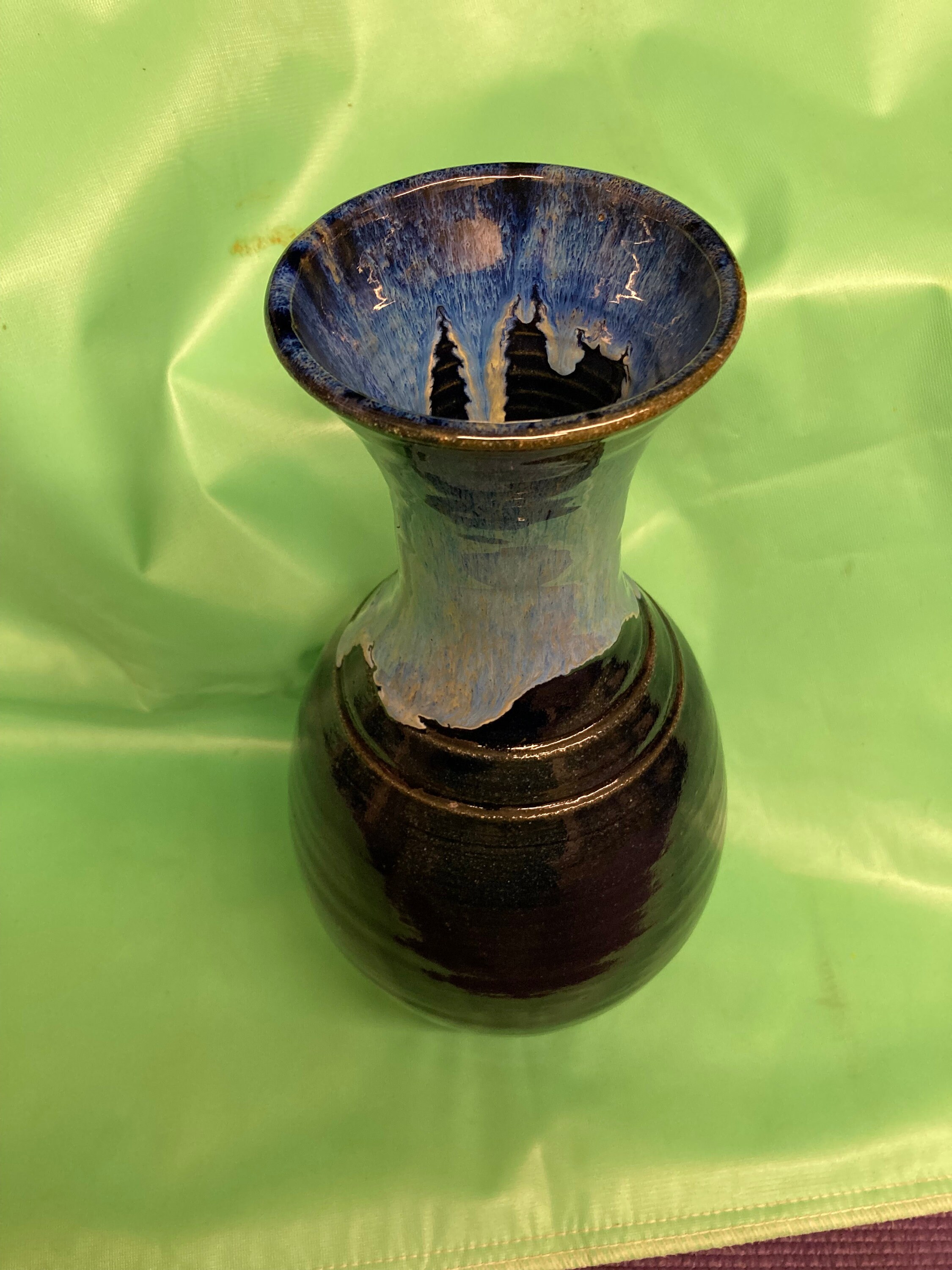 Handmade and hand painted vase Signed by Artist and stamped on the sideMade by Raindrop Pottery11.5 " Tall6" Diameter4" Base3.75" Mouth