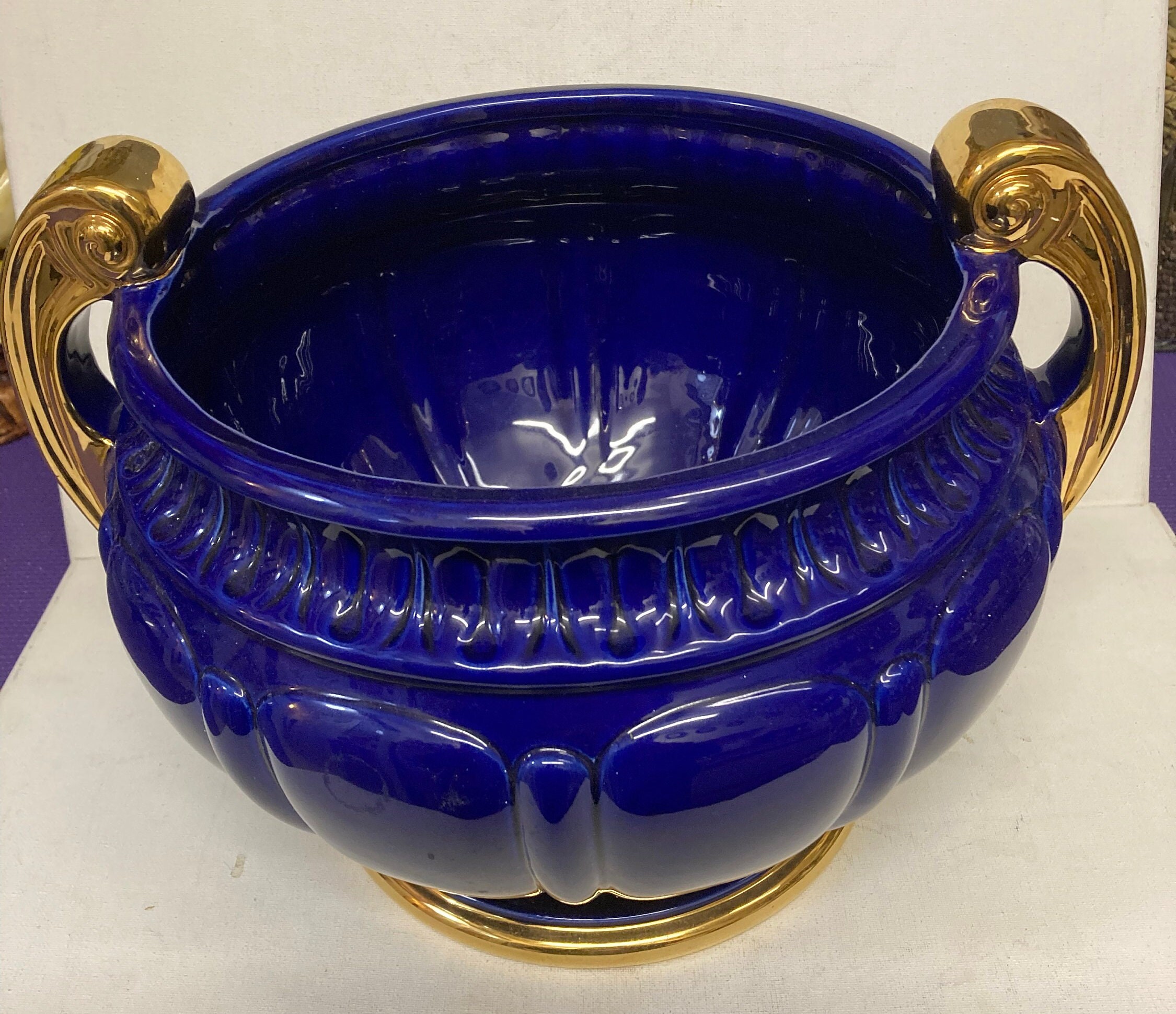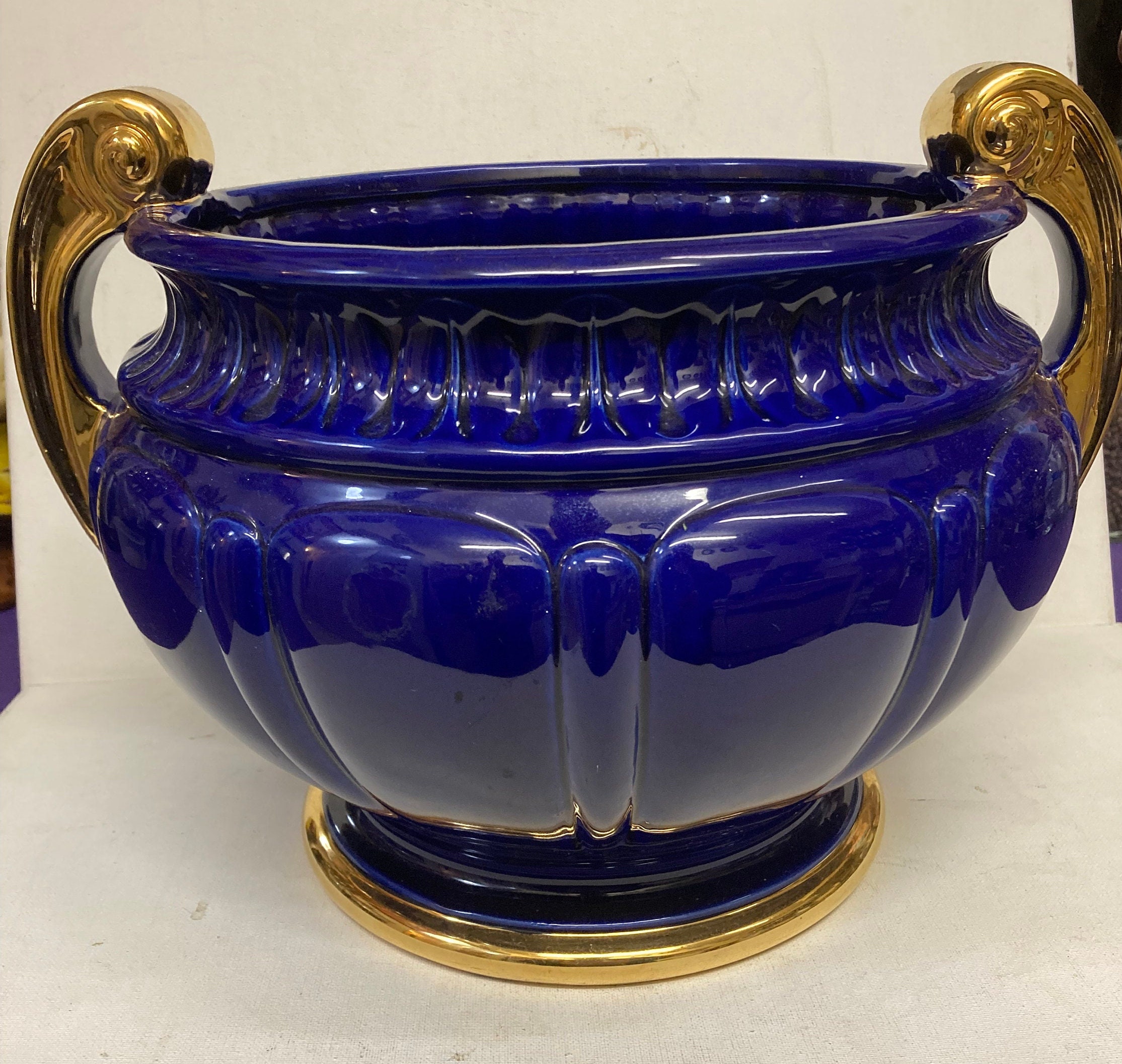 The Cobalt Blue with Gold Handles is a rare Battocchio Sartore (BS) Ceramic Vase
