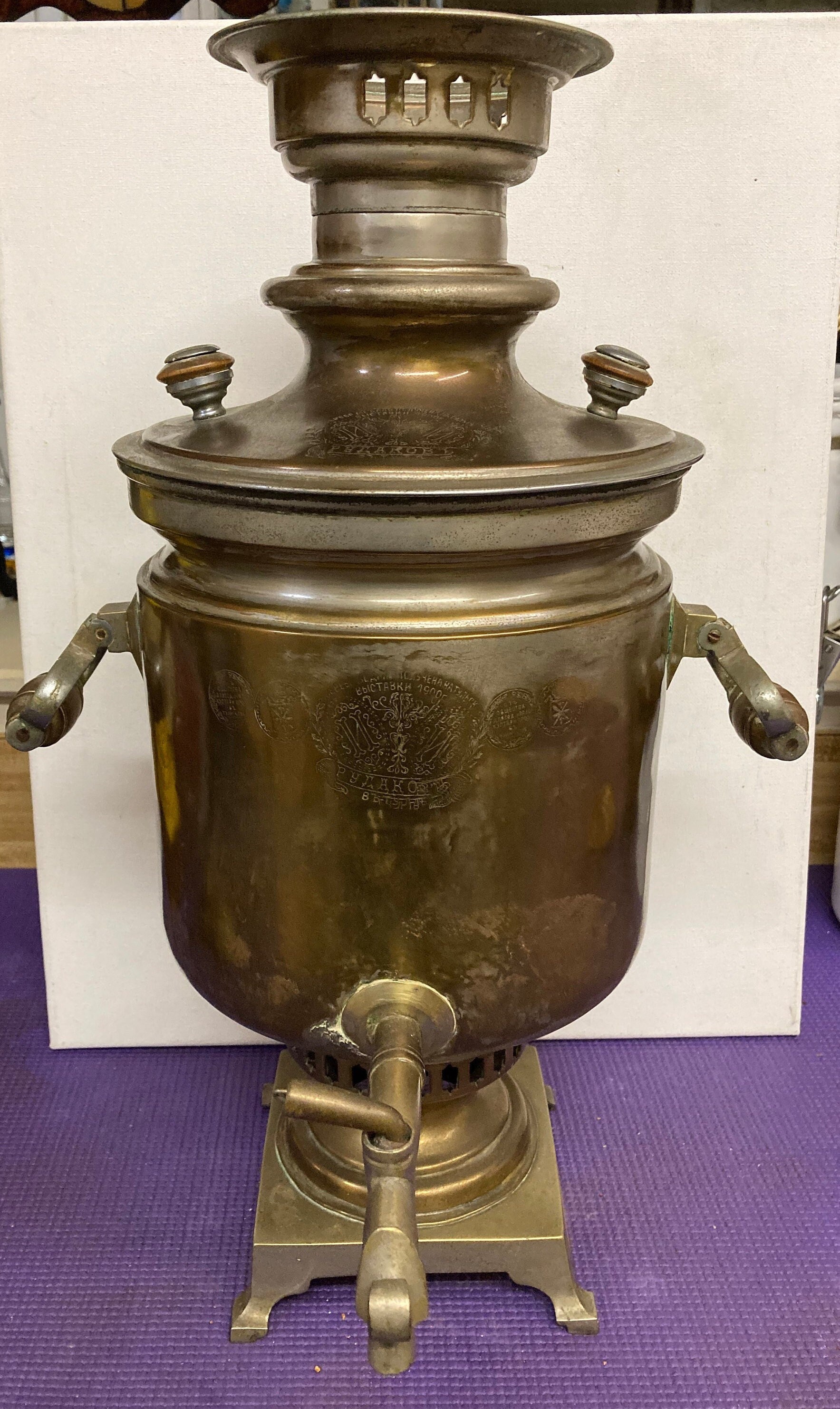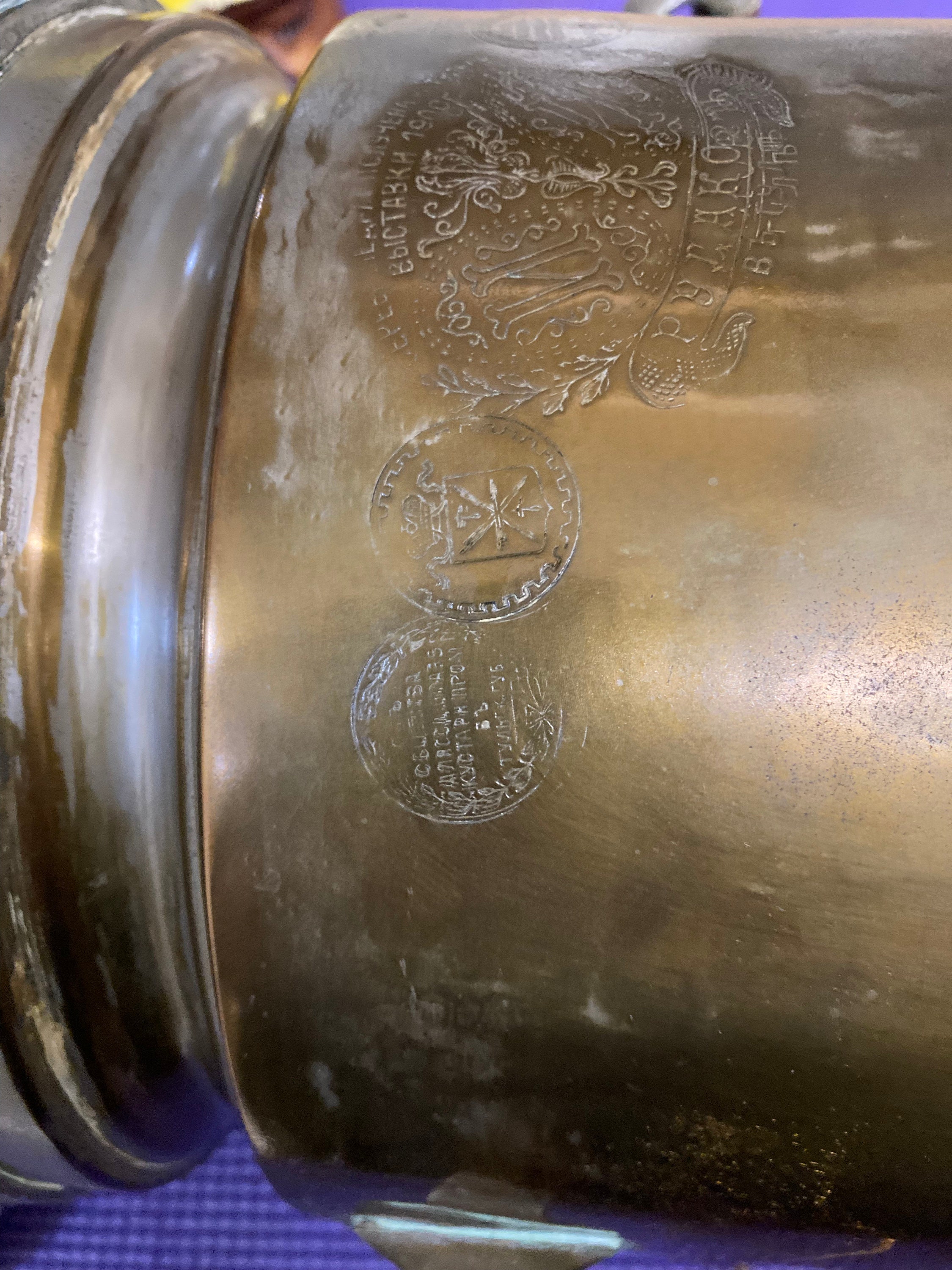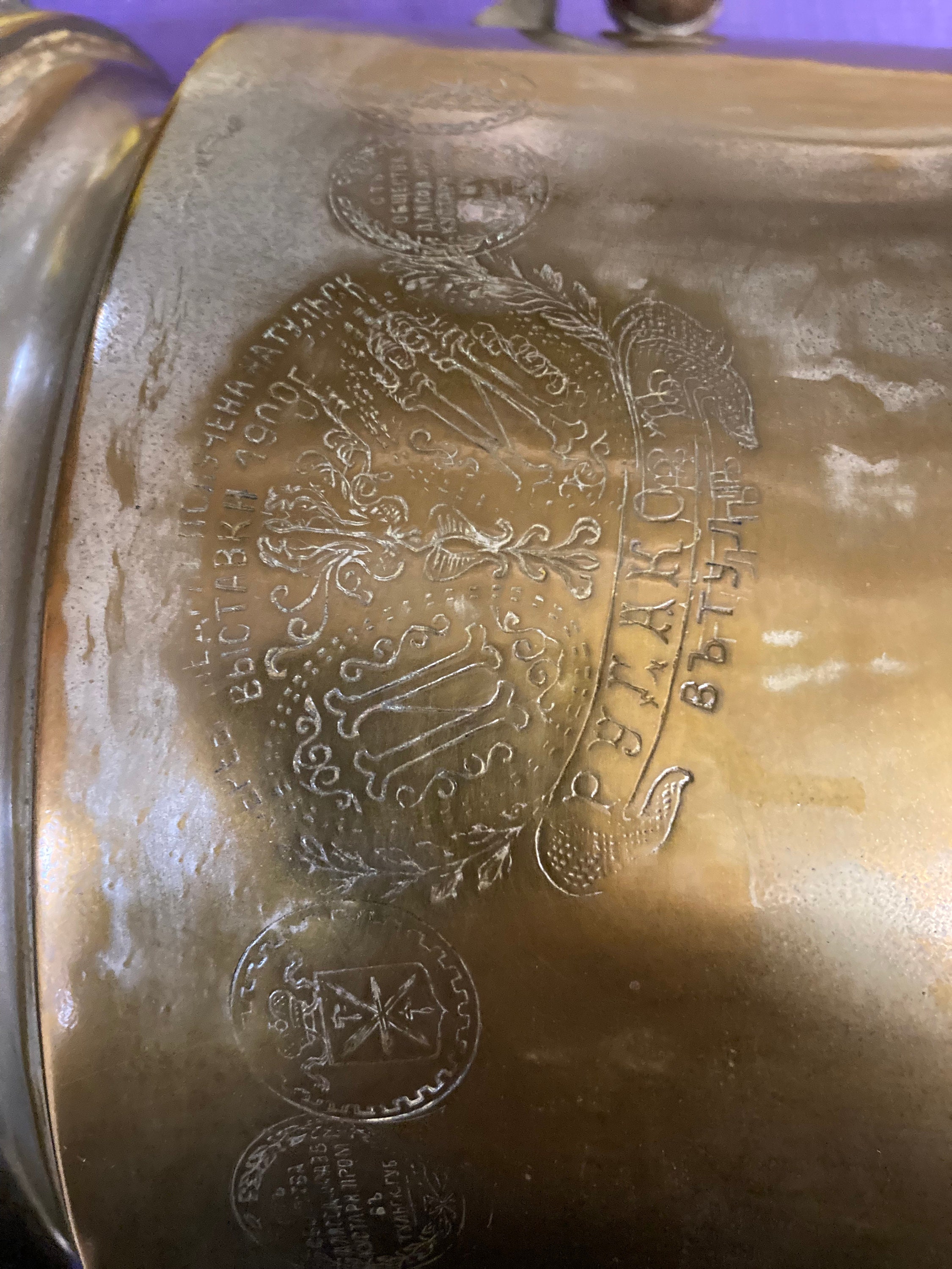 Antique Brass Russian Samovar Award Winning With Award Marks Dating From 1800's And Makers Mark