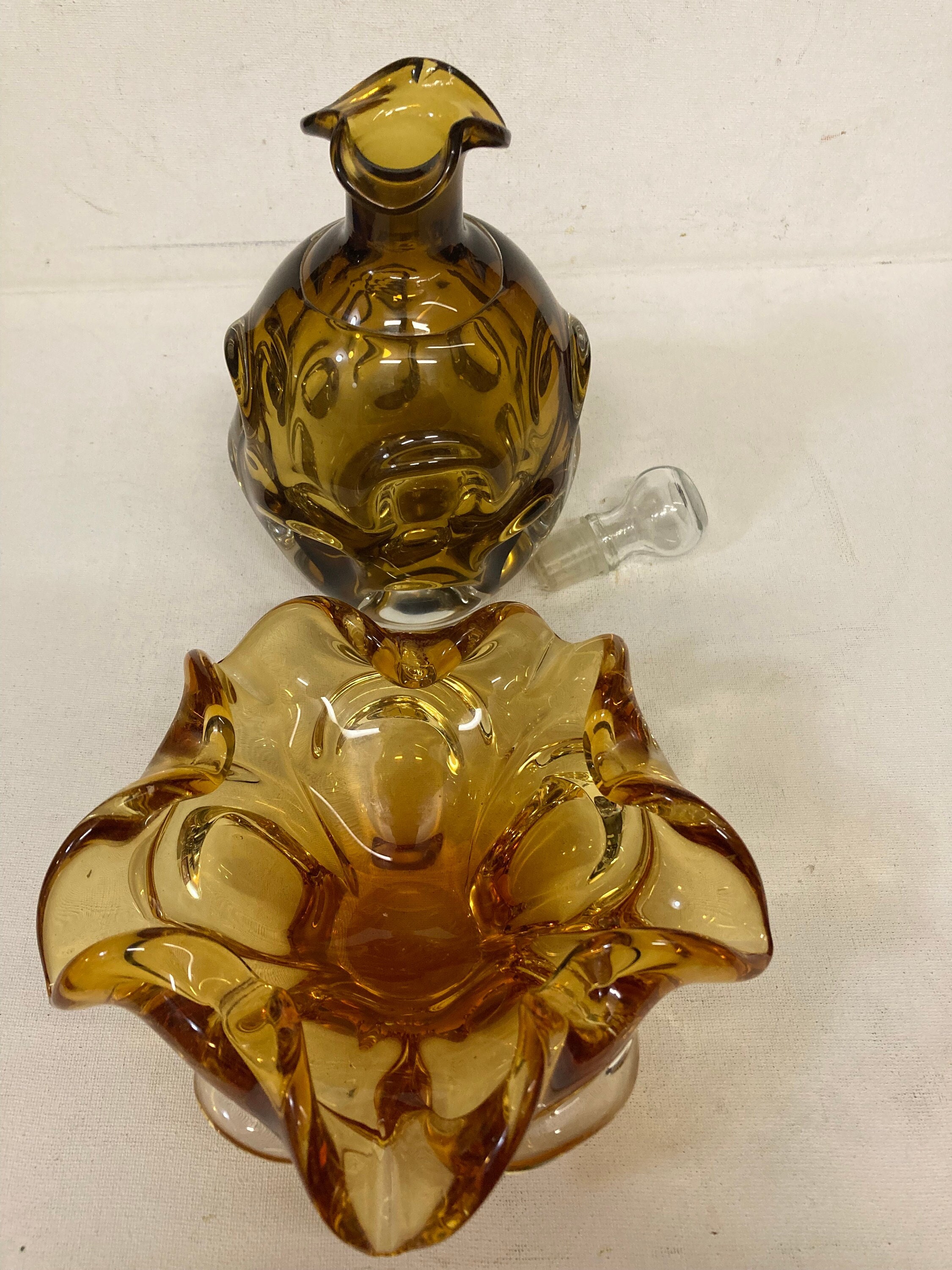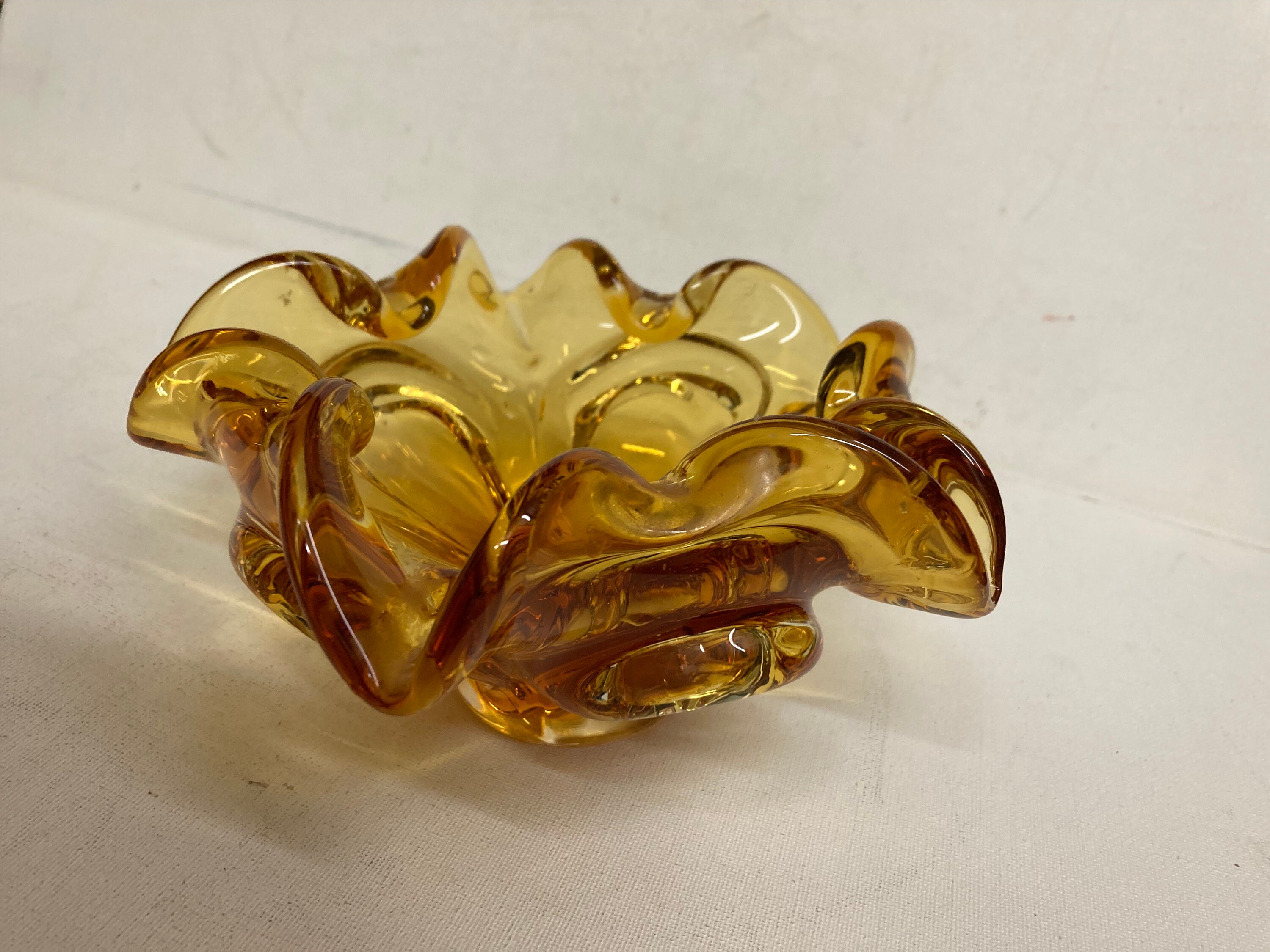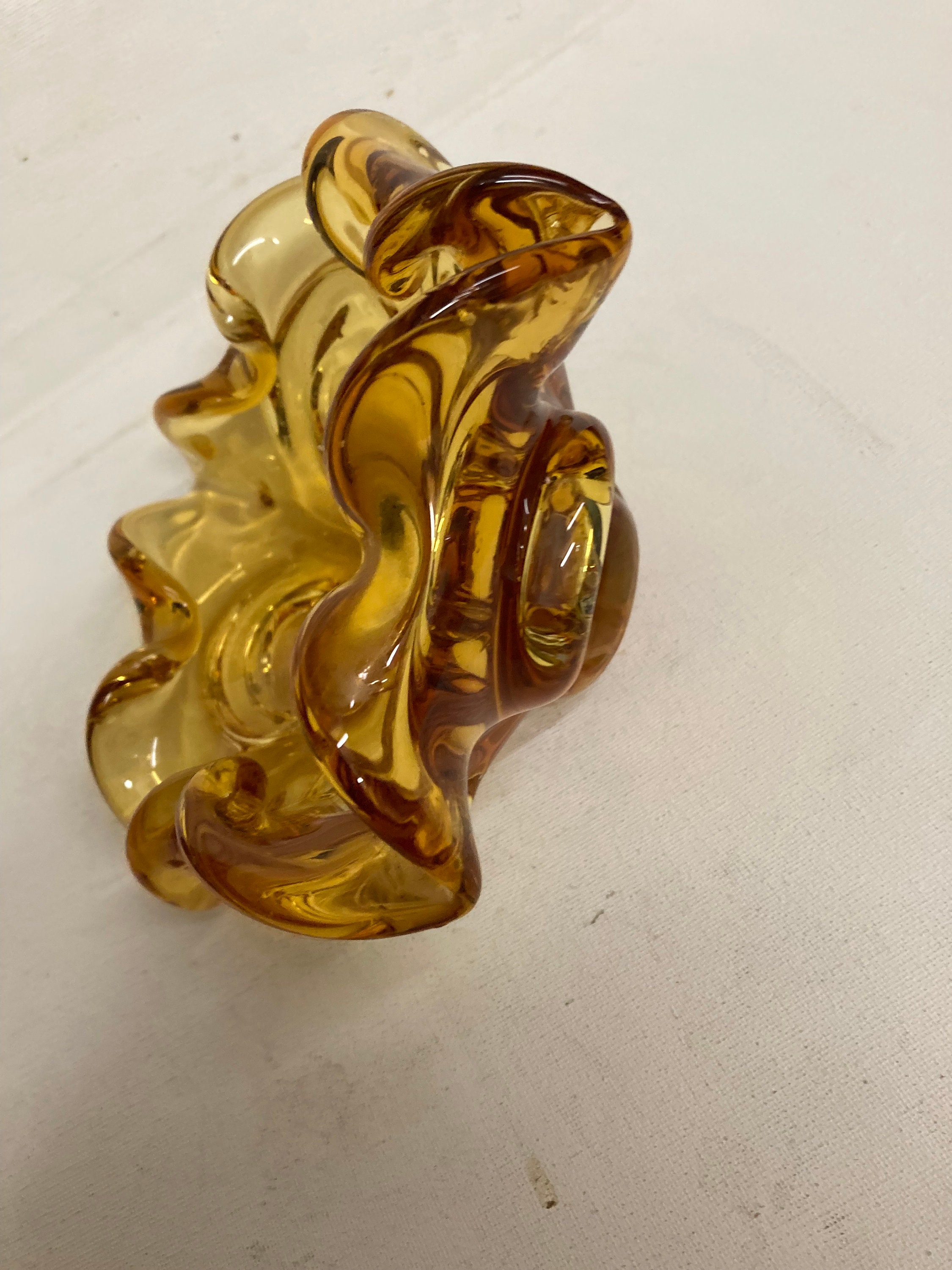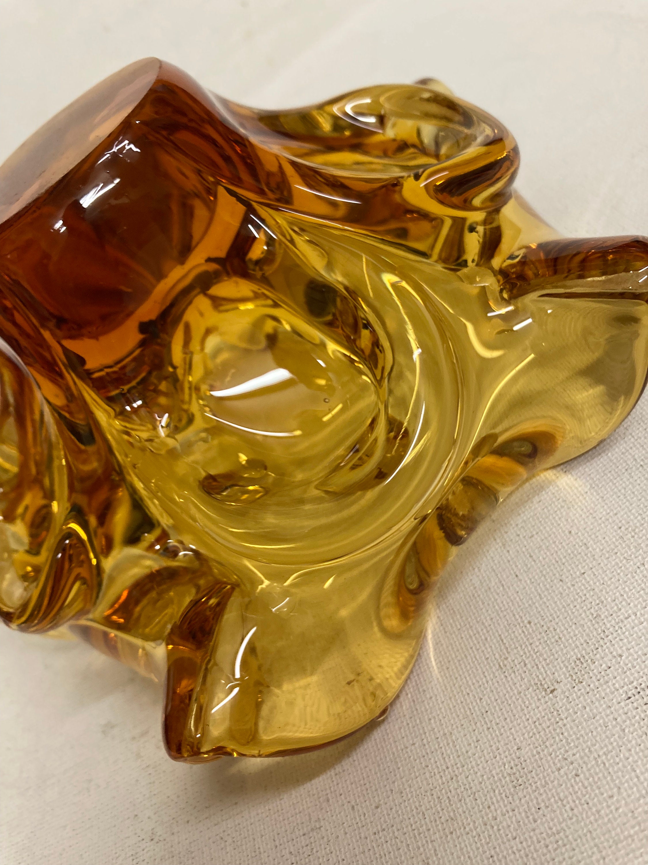 Mid century Murano style Chalet glass Amber hand blown ashtray or bowl Chalet glass