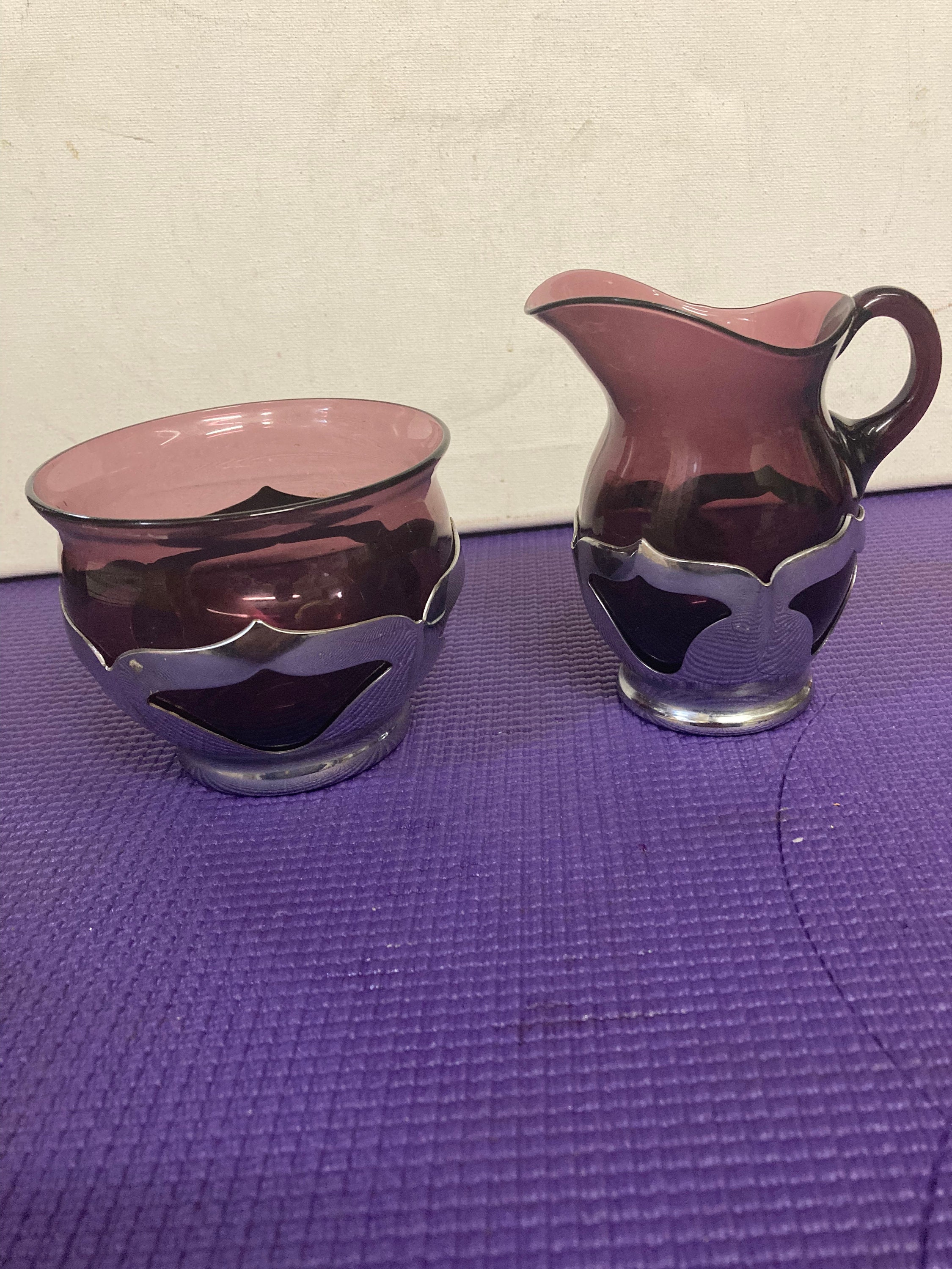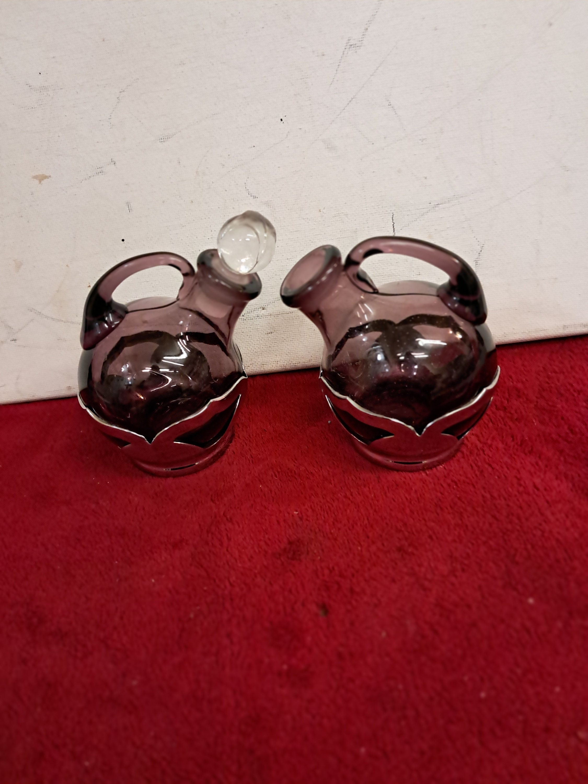 Vintage Amethyst Glass Farber Bros N.Y. Chrome Set