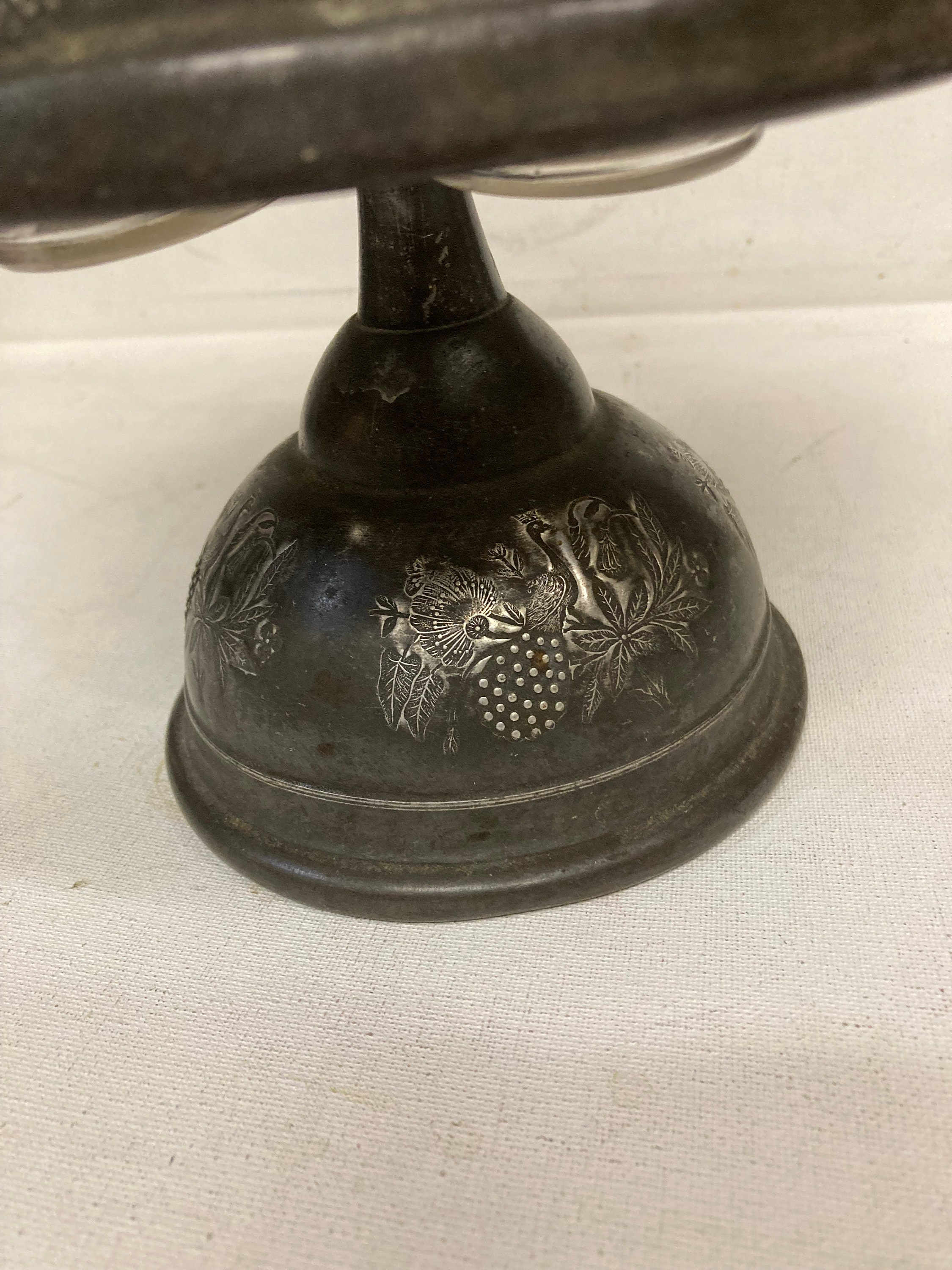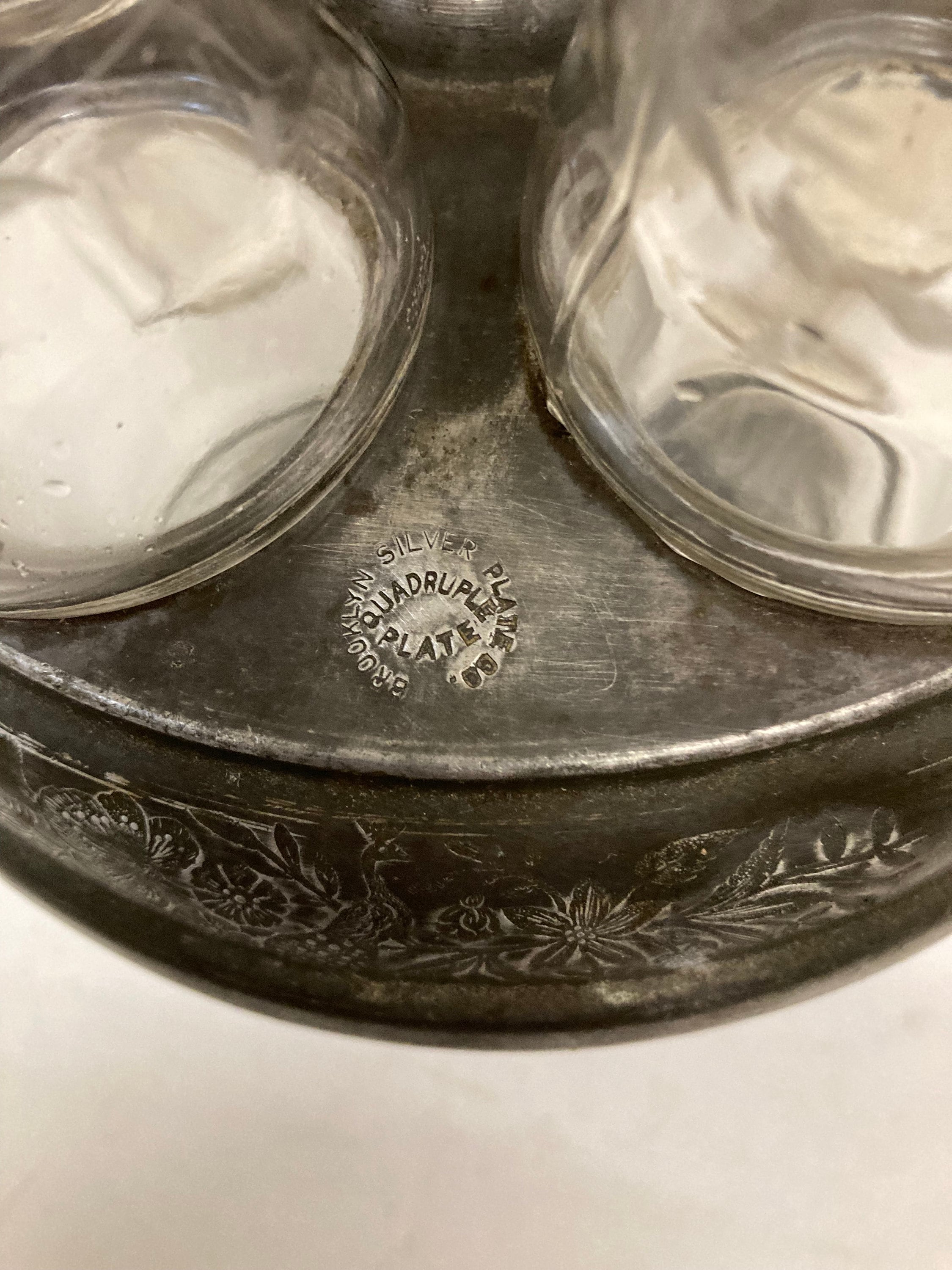 This beautiful silver plate and cut crystal condiment set is by BROOKLYN SIVERPLATE CO.