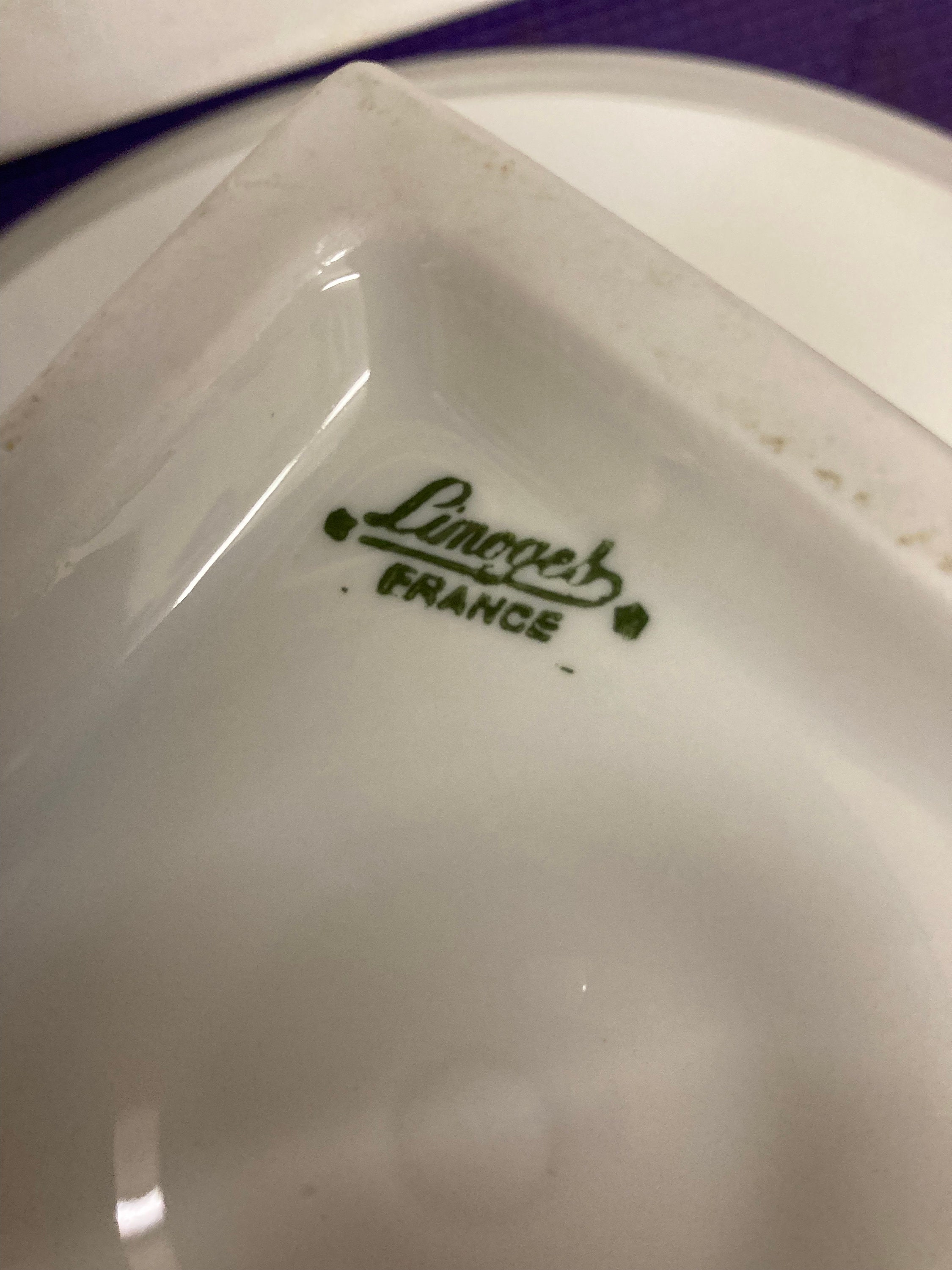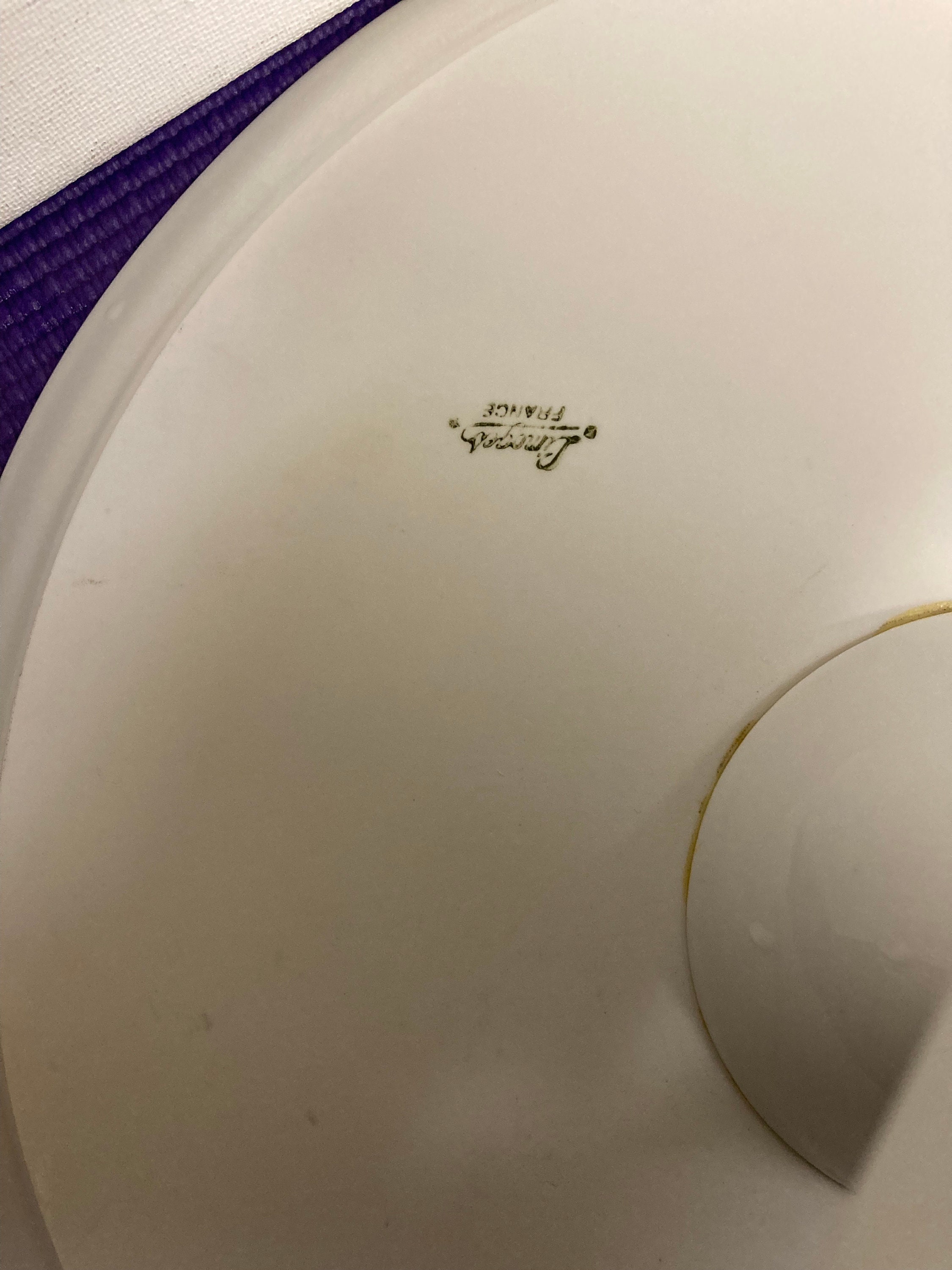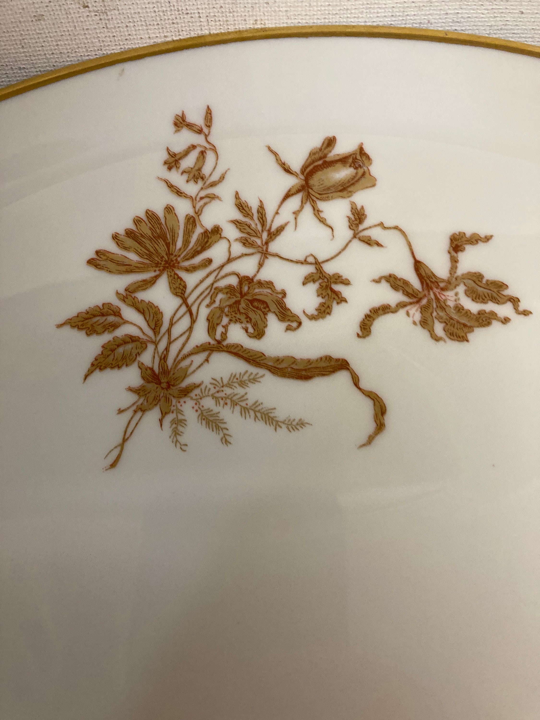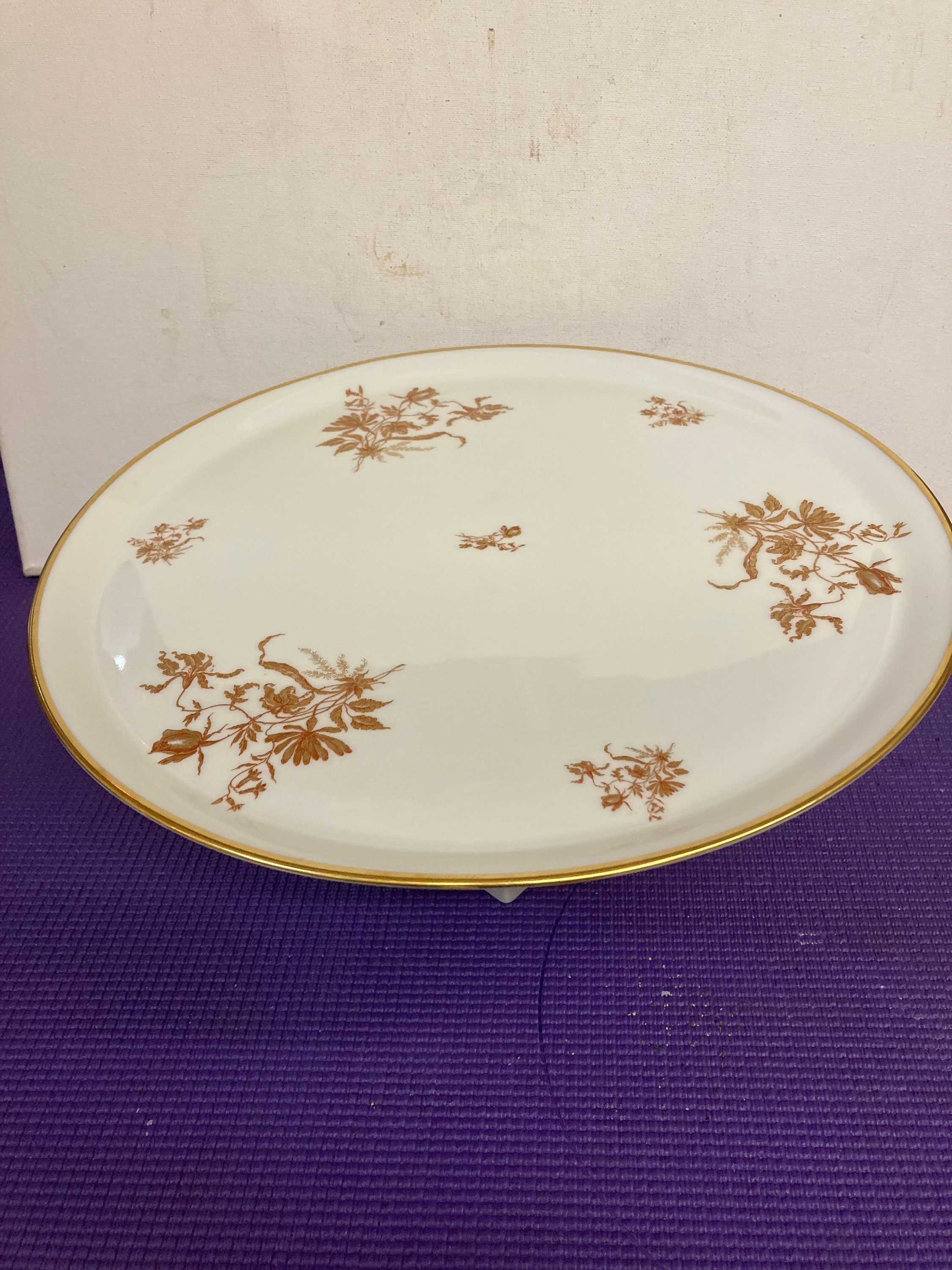 Limoges France White Pedestal Cake Plate with Gold Flowers and Gold Trim,