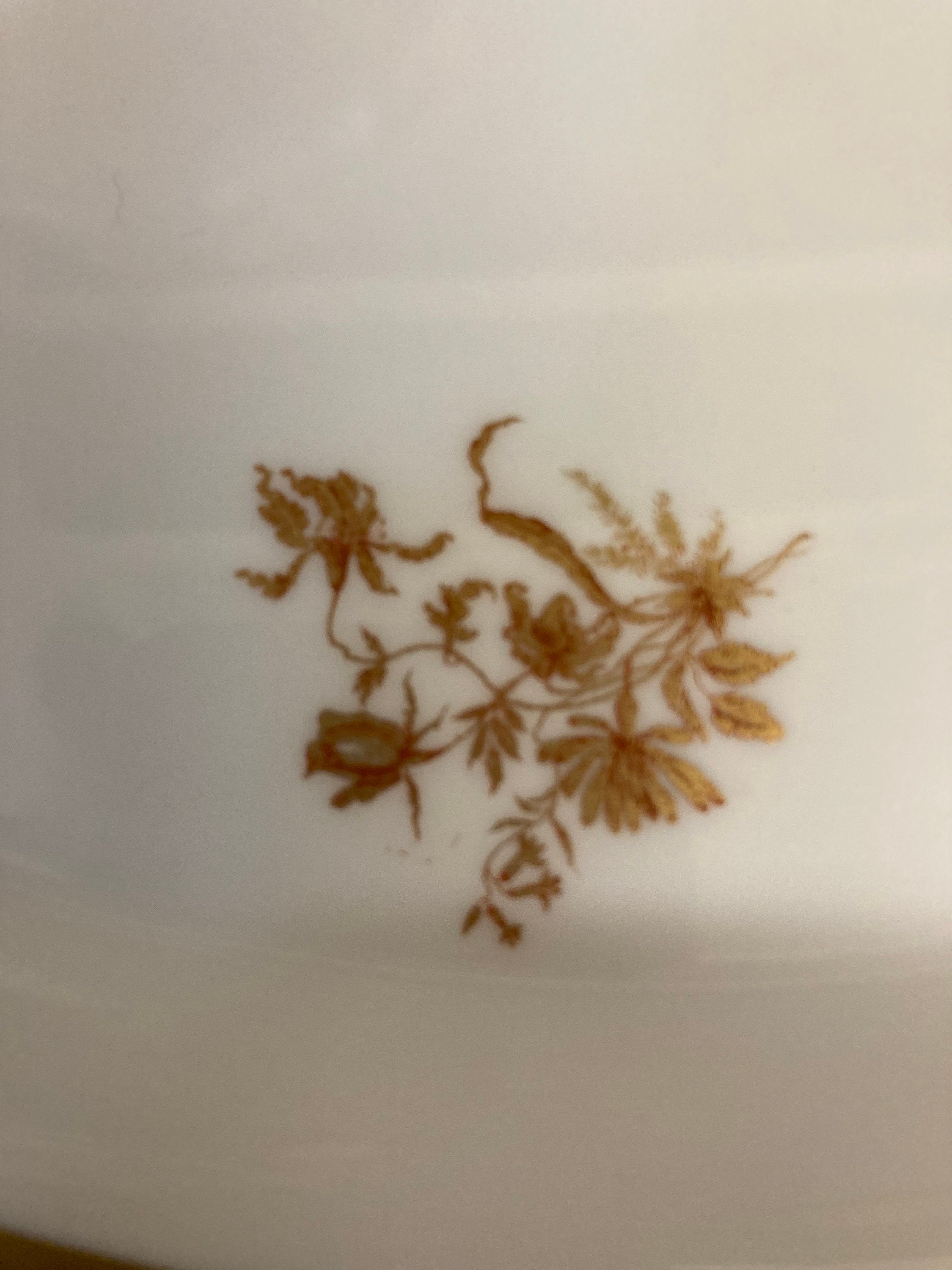 A beautiful vintage Limoges France Pedestal Cake Plate with Delicate Golden floral design on the platter and a small floral design on the base. The underside of the plate is not glazed. This pedestal is in great condition with no chips, cracks, stains or repair. The gold trim is very good condition.