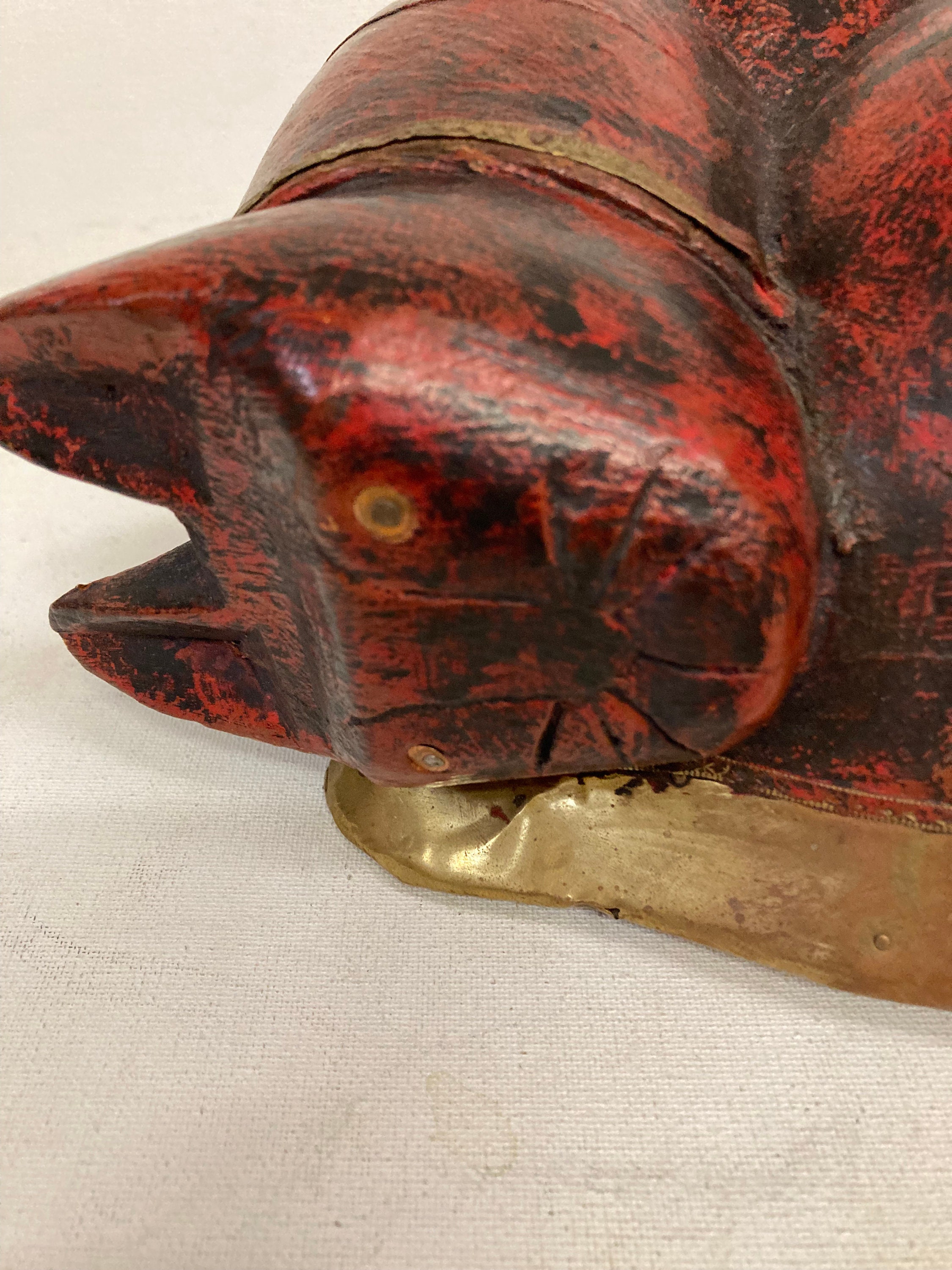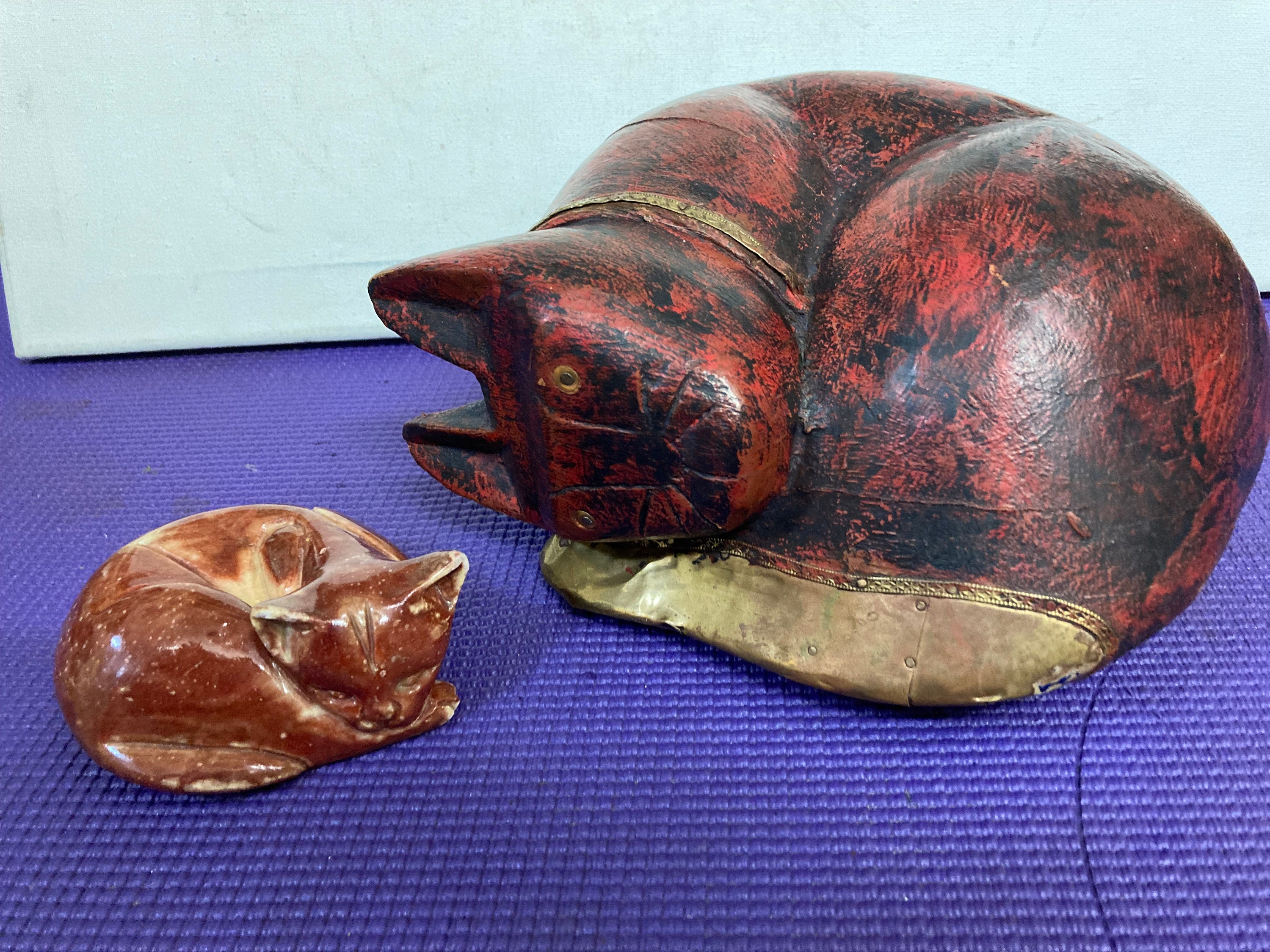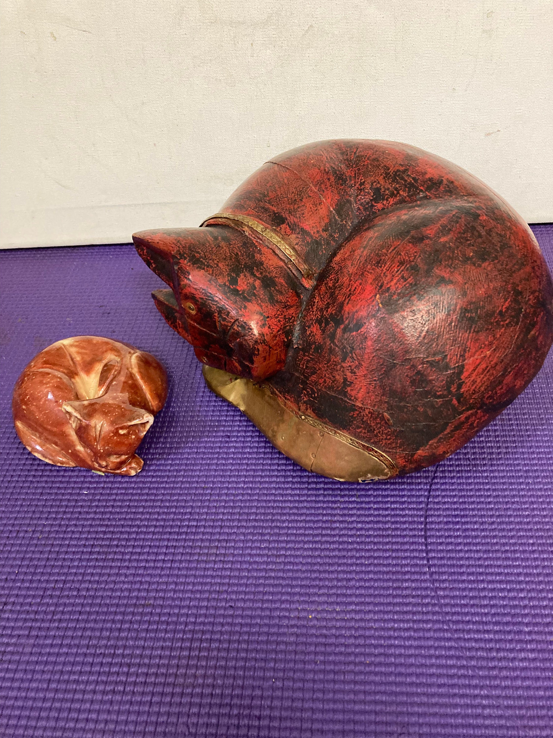 These beautiful handmade figurines are a great match .mama Cat is wooden one and is trimed in brass around the neck, eyes and full tail