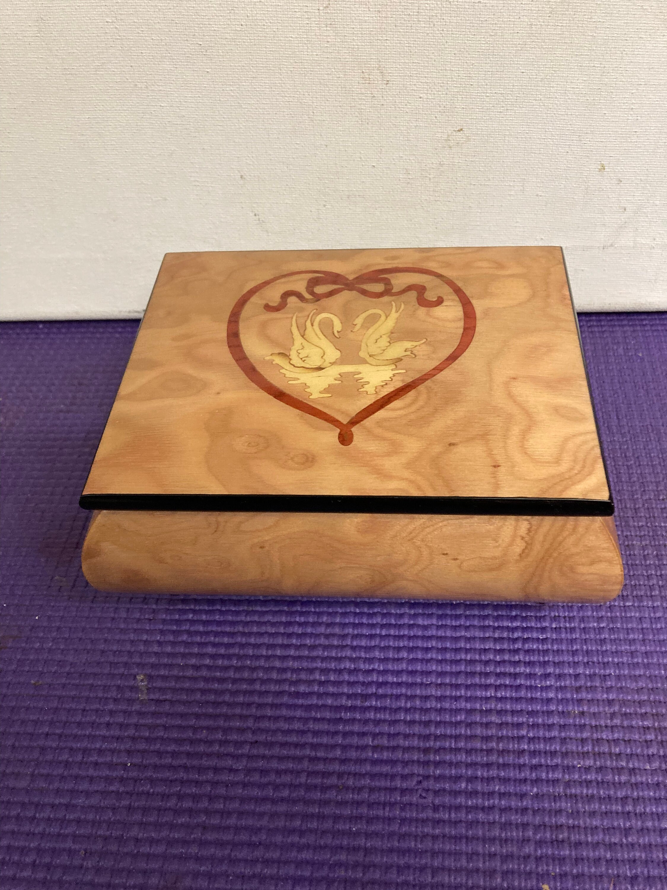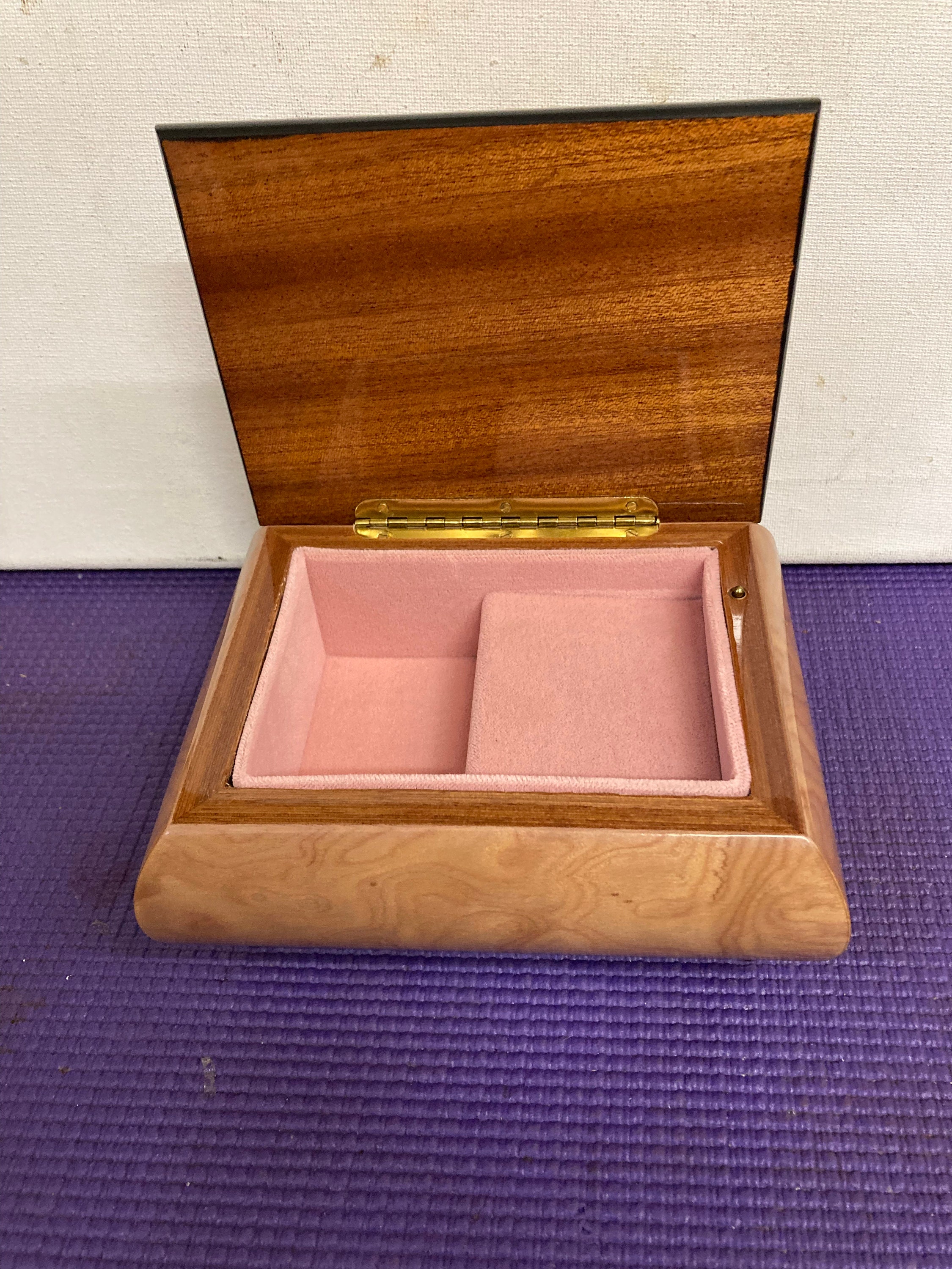 Excellent Condition .with pink velevet interior Music/ Jewlery Box 4 x 5 1/8 x 2 1/2 , one poundInlaid wood