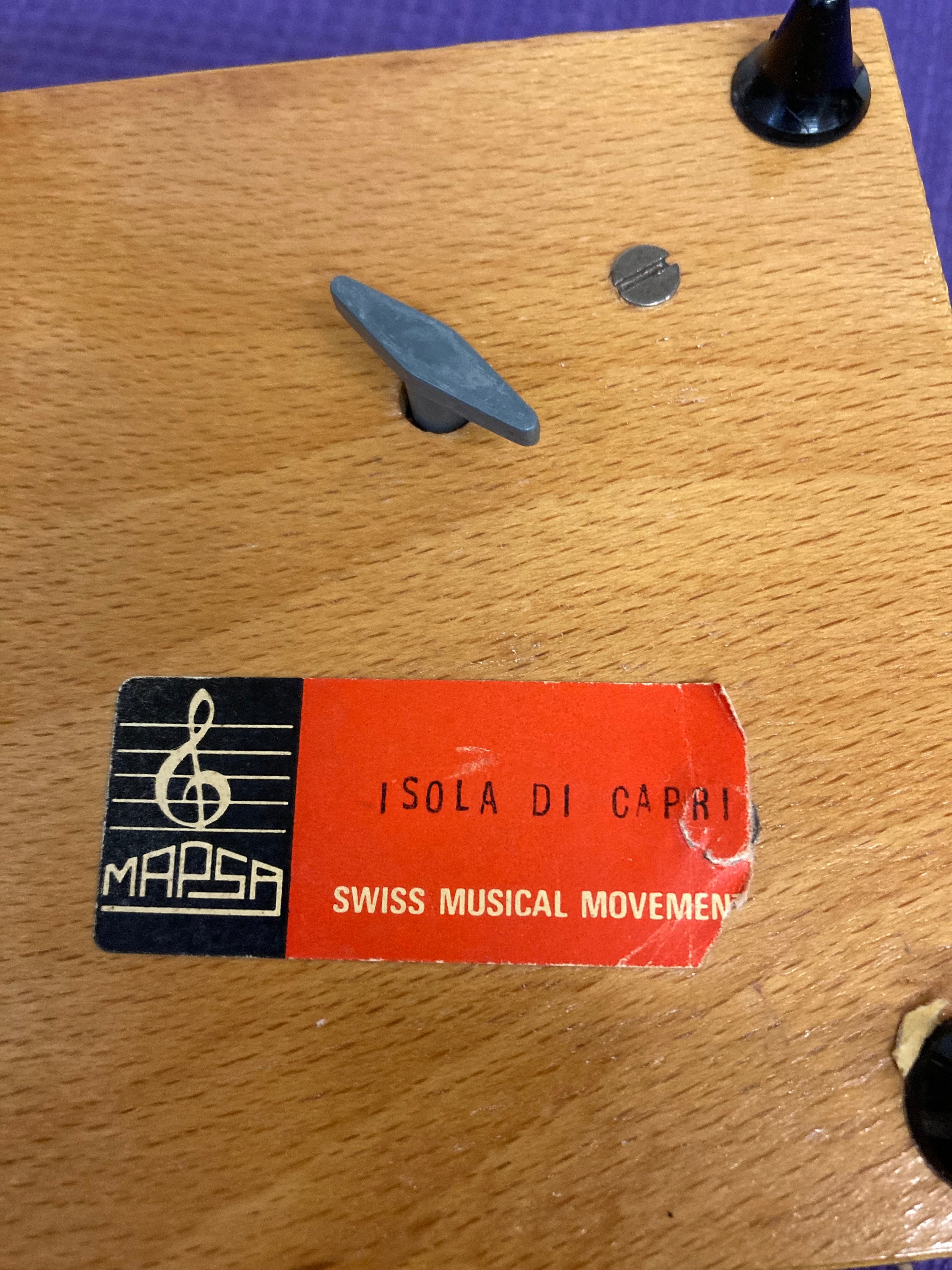 Mapsa , Swiss Musical Instrument, Music Box , Sola Di Capri6x 4 x 2 1/8 ,one pound, Red Velvet Interior very good condition, plays well