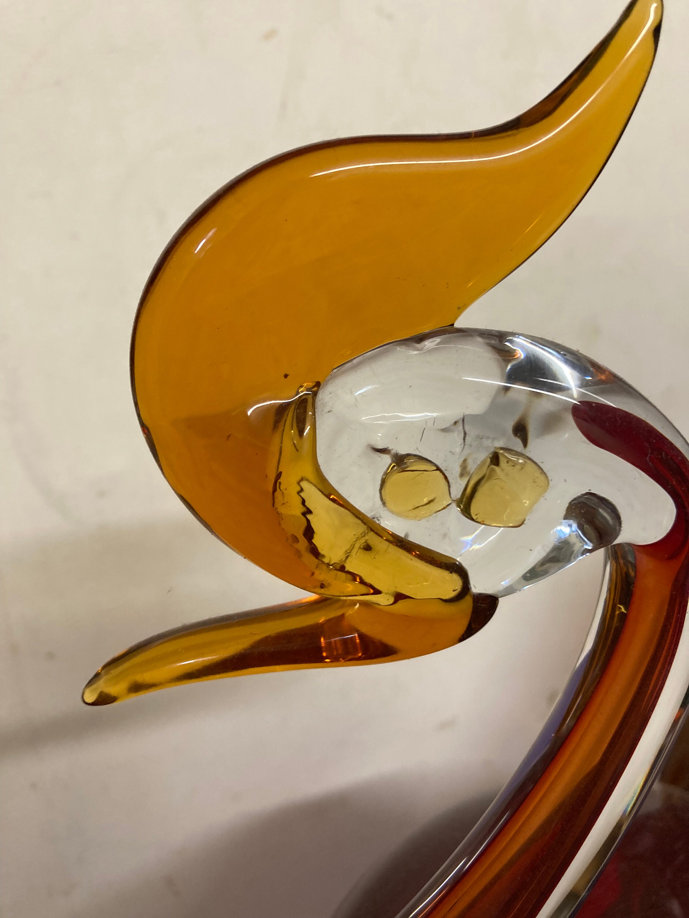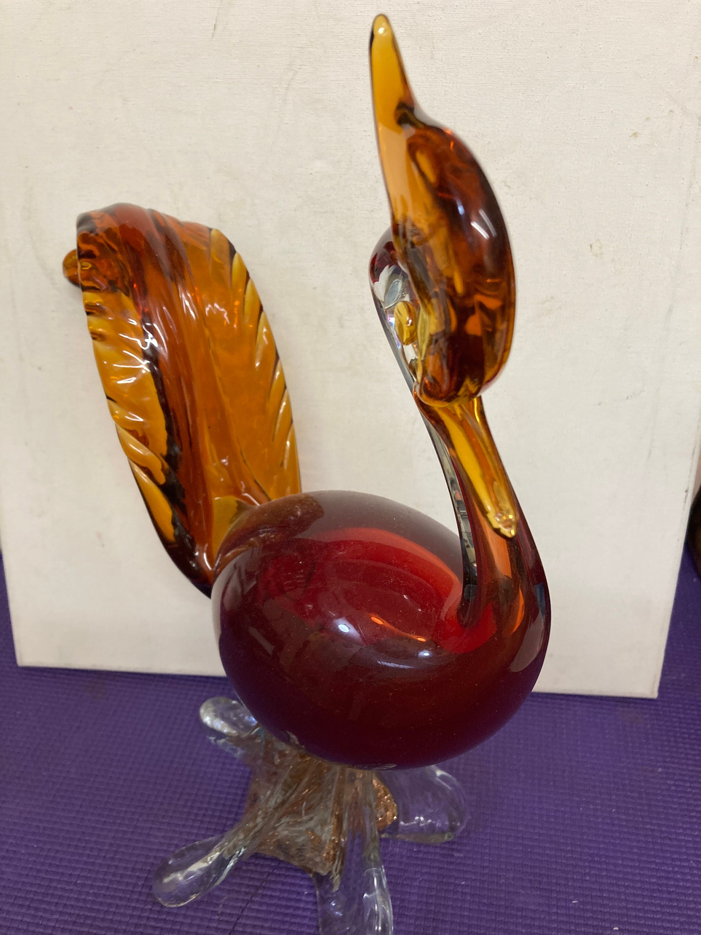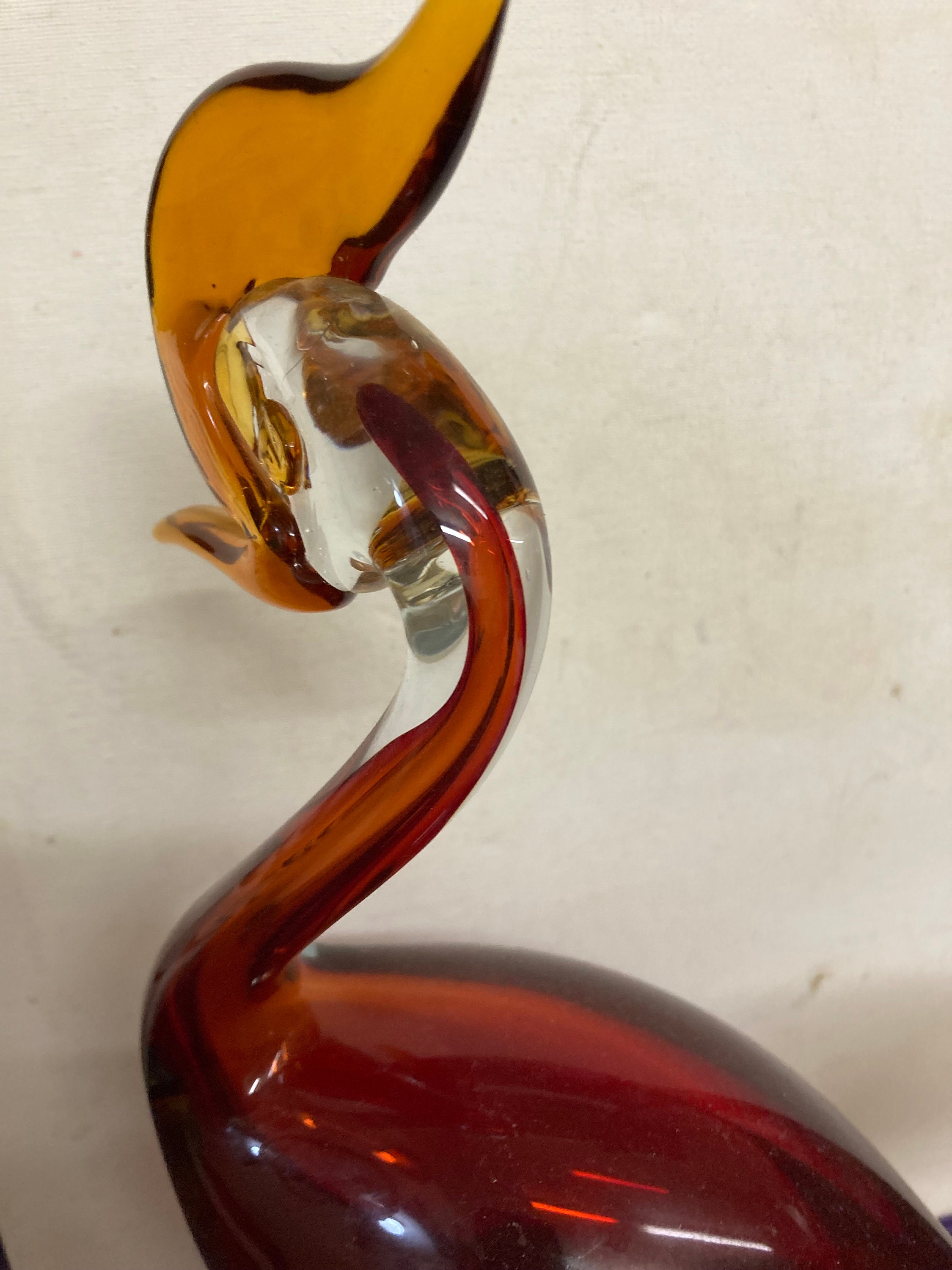 The color is extremely rare and hard to find in Murano by Barbini , Most of the birds you’ll find made by Murano Artist Alfredo Barbini Are birds of paradise parrots and other types of birds not the Runner