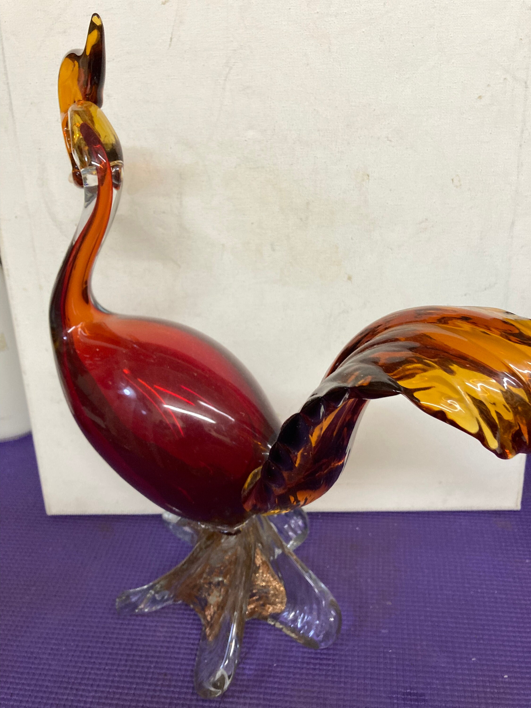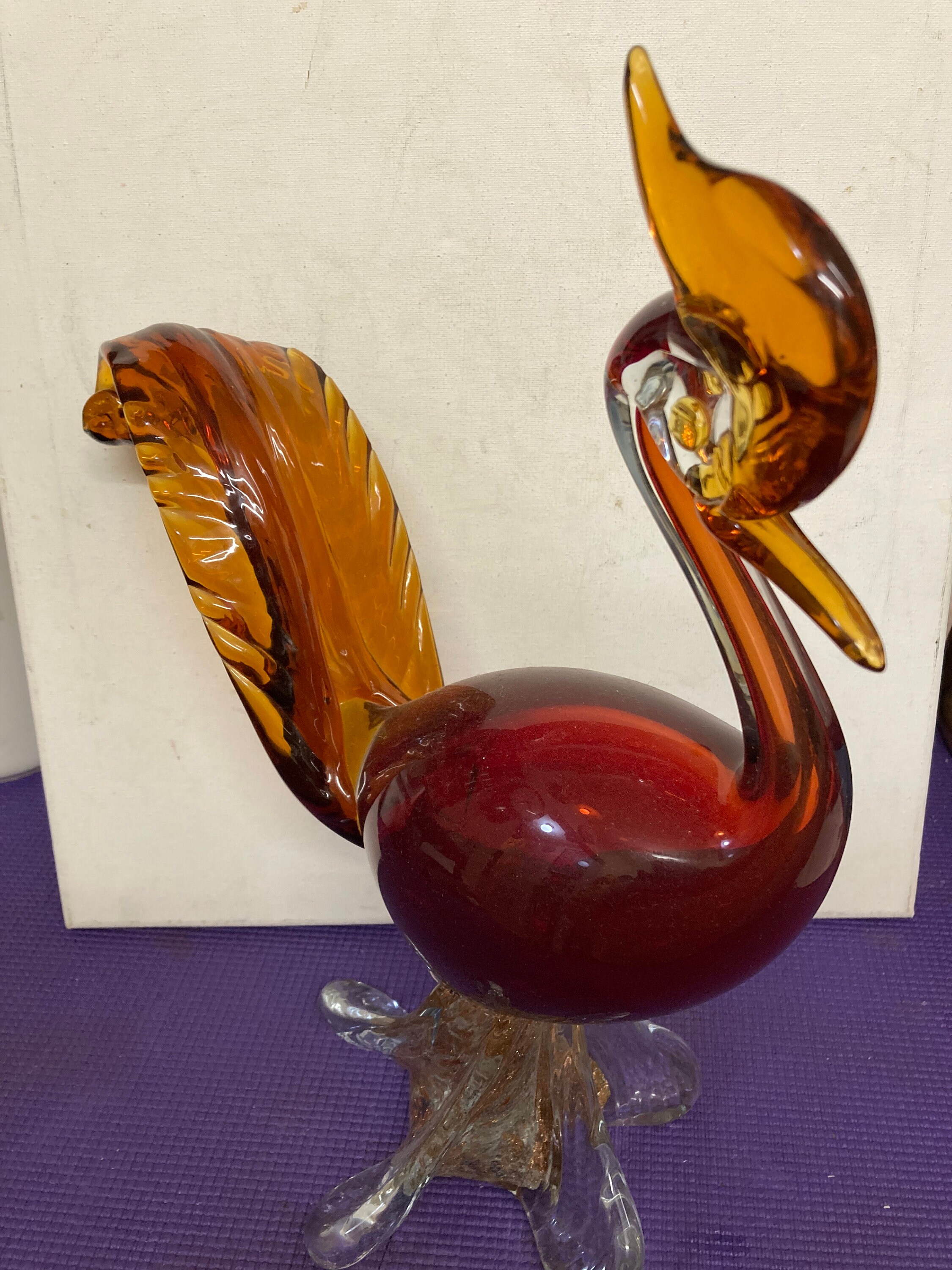 RARE! Vintage Murano Alfredo Barbini gold and clear stand with Burgundy color 15 1/4” Road Runner bird.