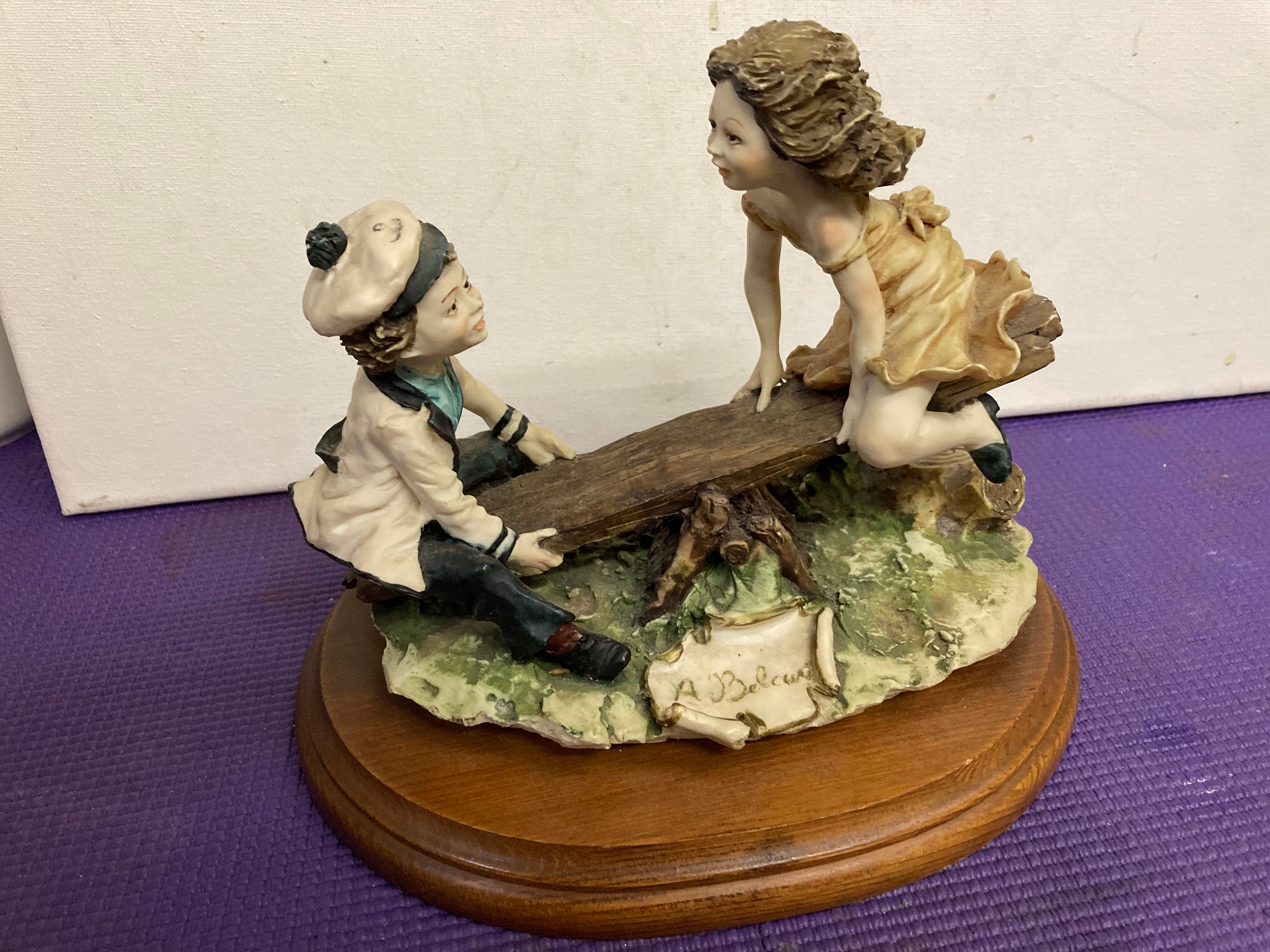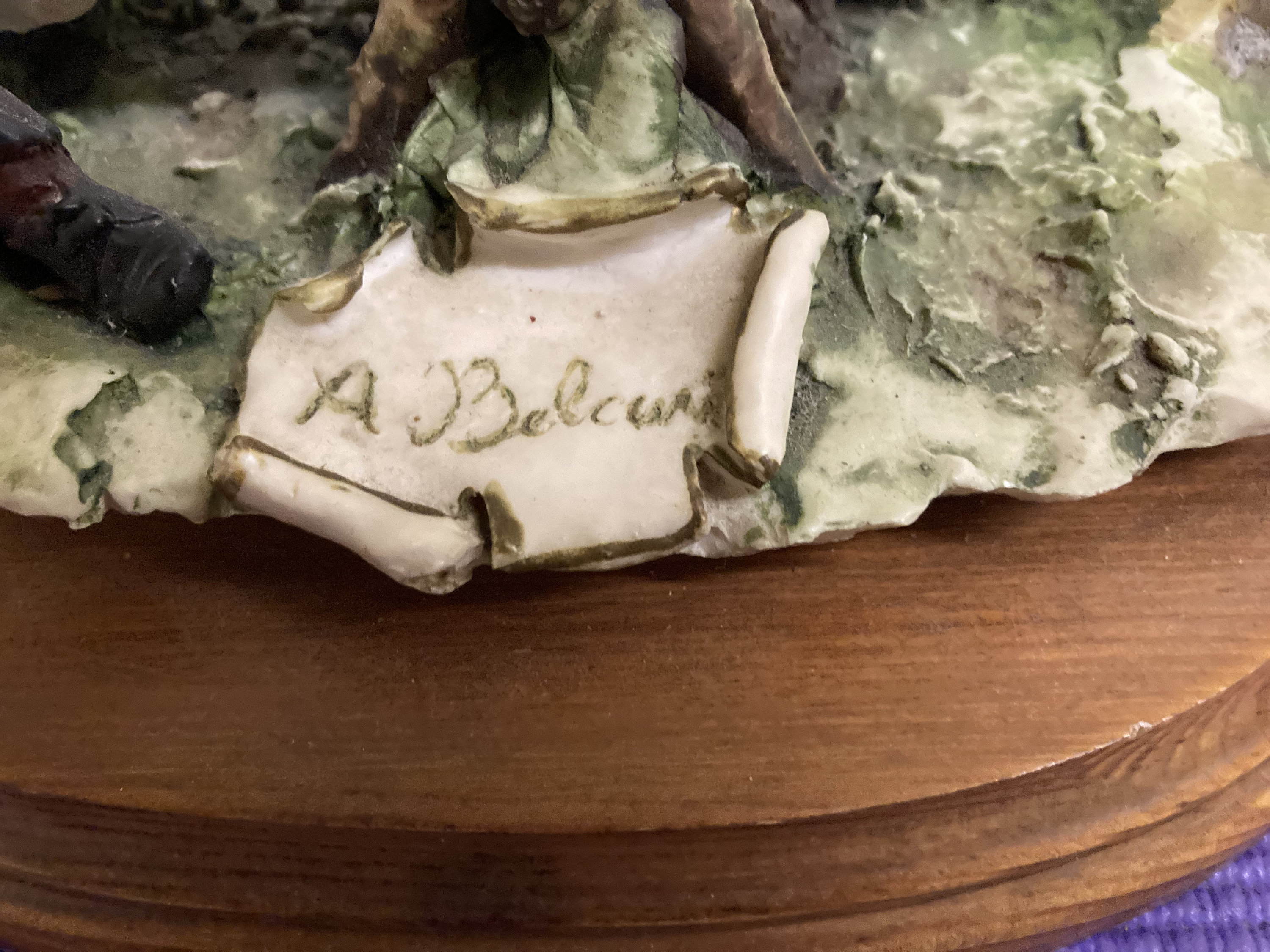 Both figurines are signed "A. Belcari" prominently in front. Magnificent