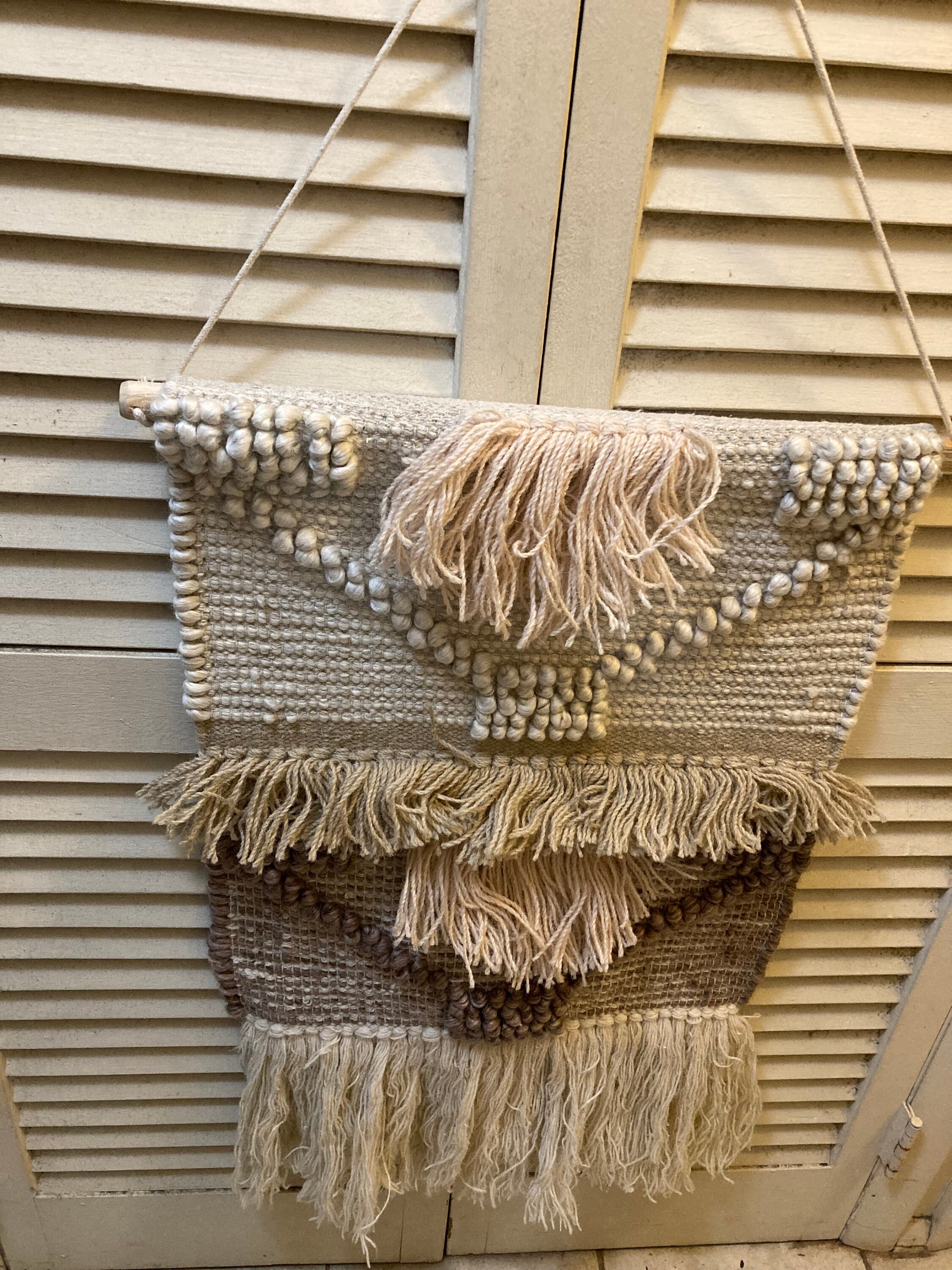 Handwovan , Handmade Hanging Wall DecorMade of WoolAbstract Desigh20 " Wide32 " Tall10 " Rope