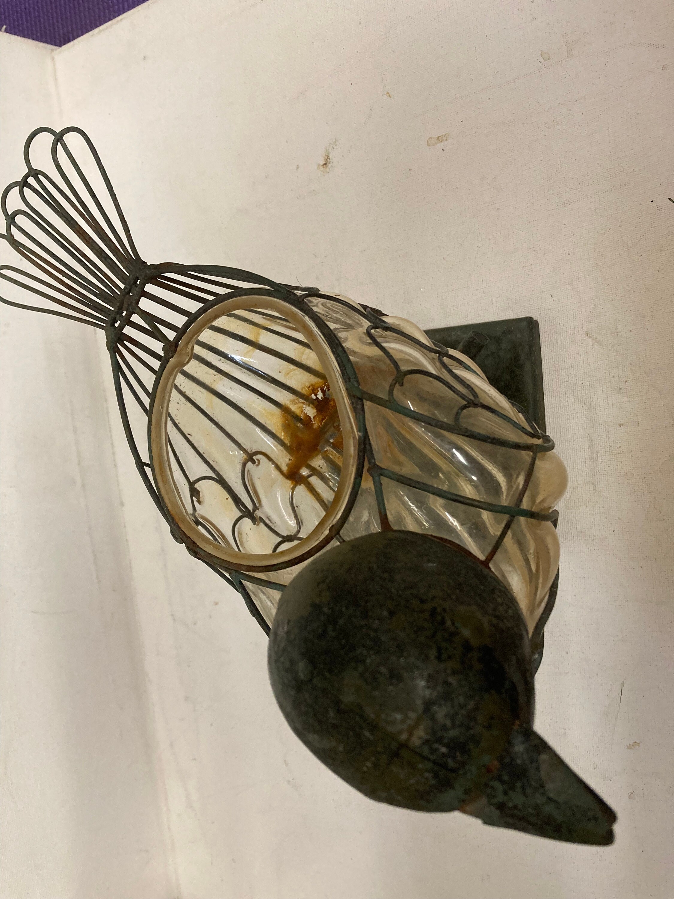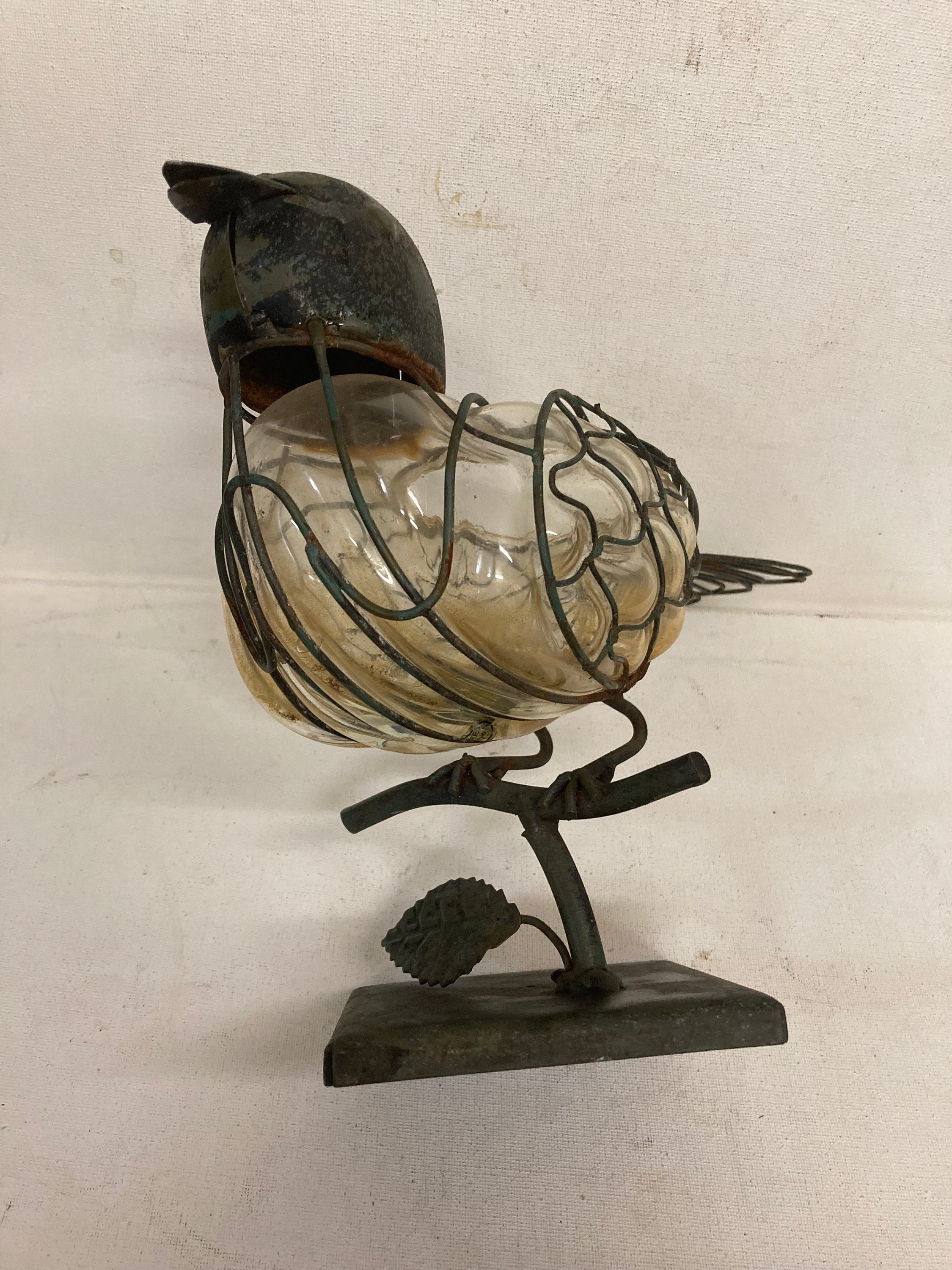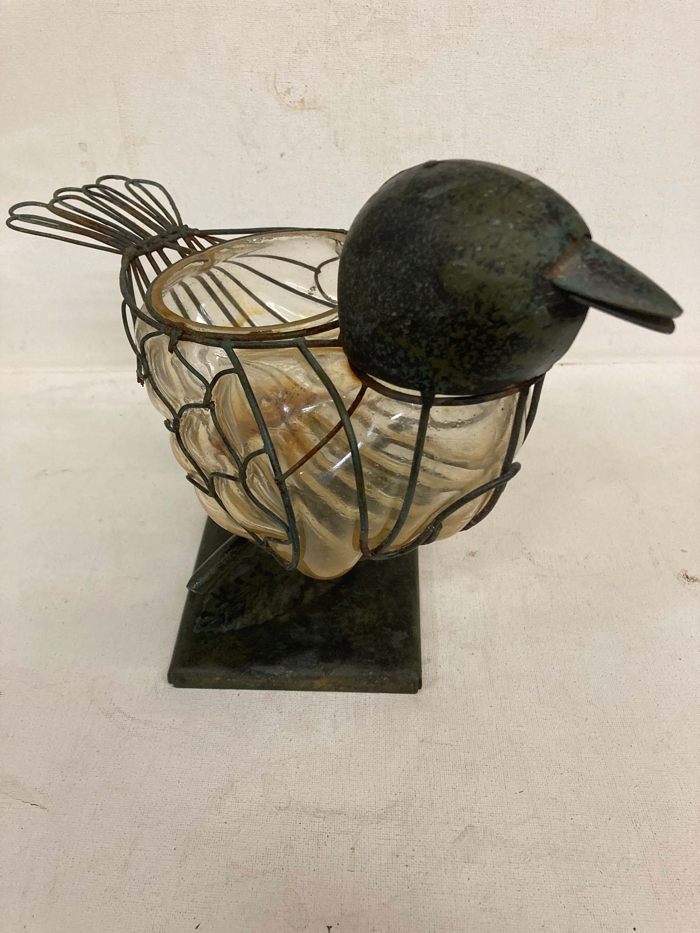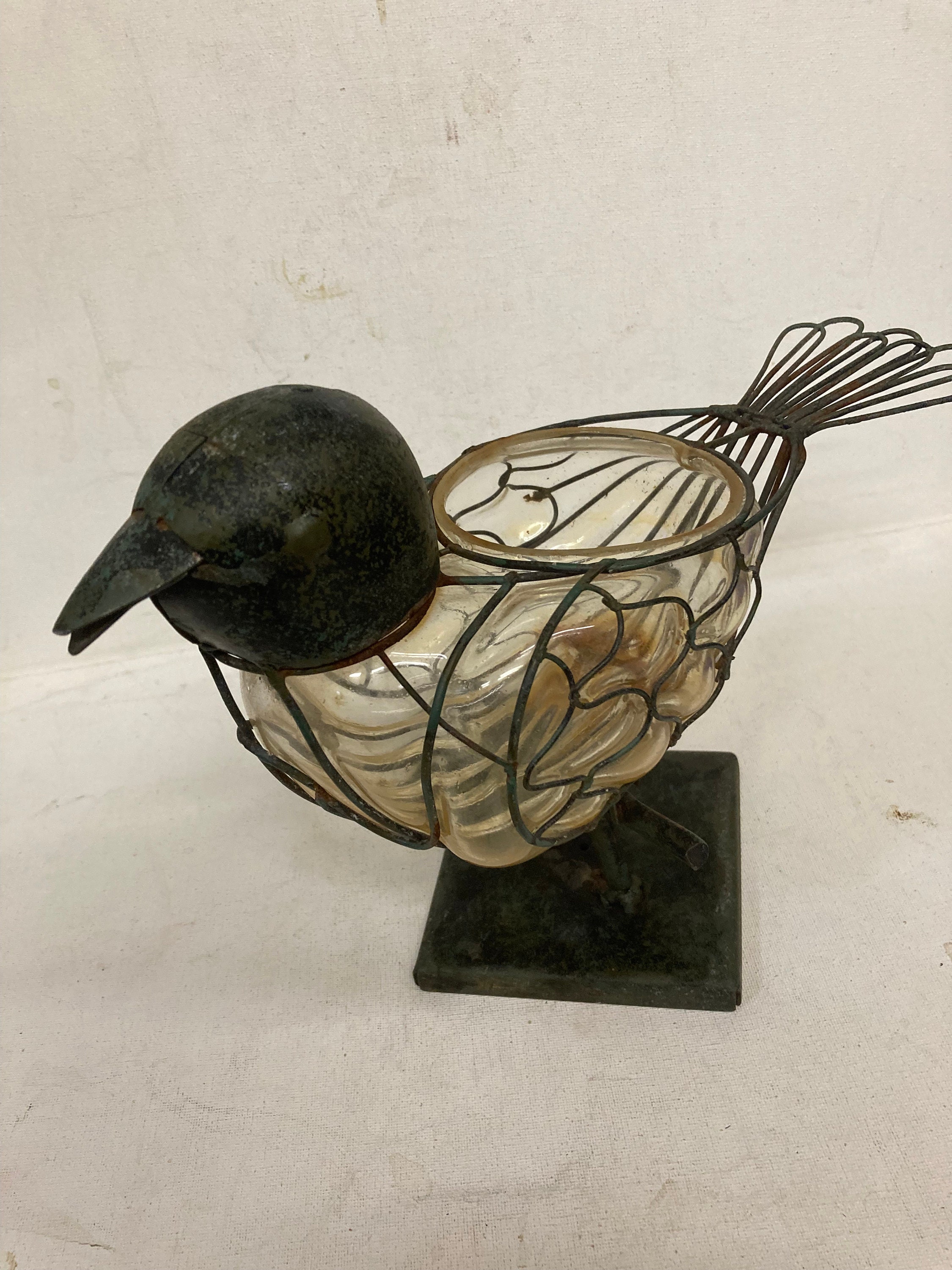Handmade Decorative Bird made of Glas and Metal wiresVery Creative, Unklnown Artist. and Time it was maddeCan be used as is or fish bowl, plant vase or,,,,,,,,,!8 " tall11" wide4.5" deep