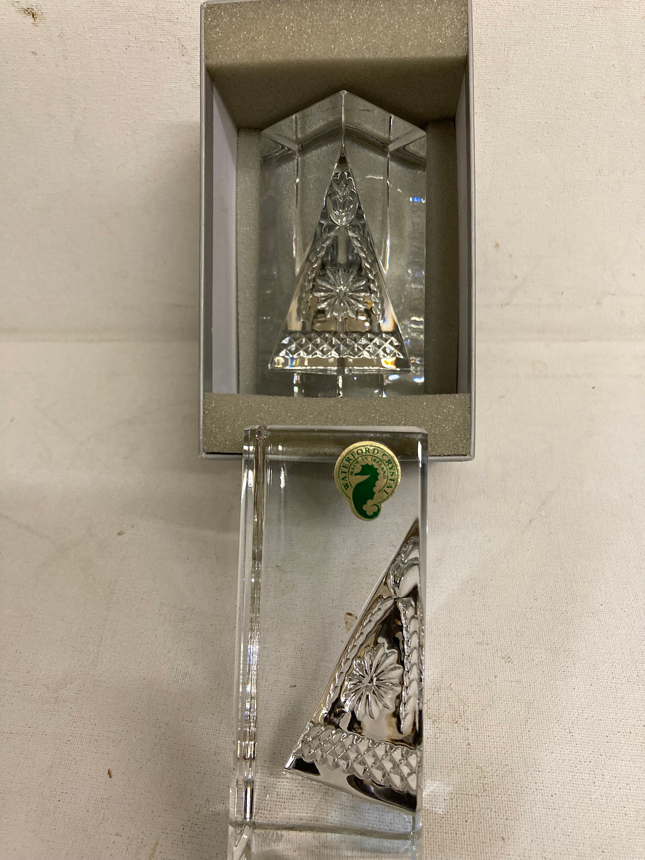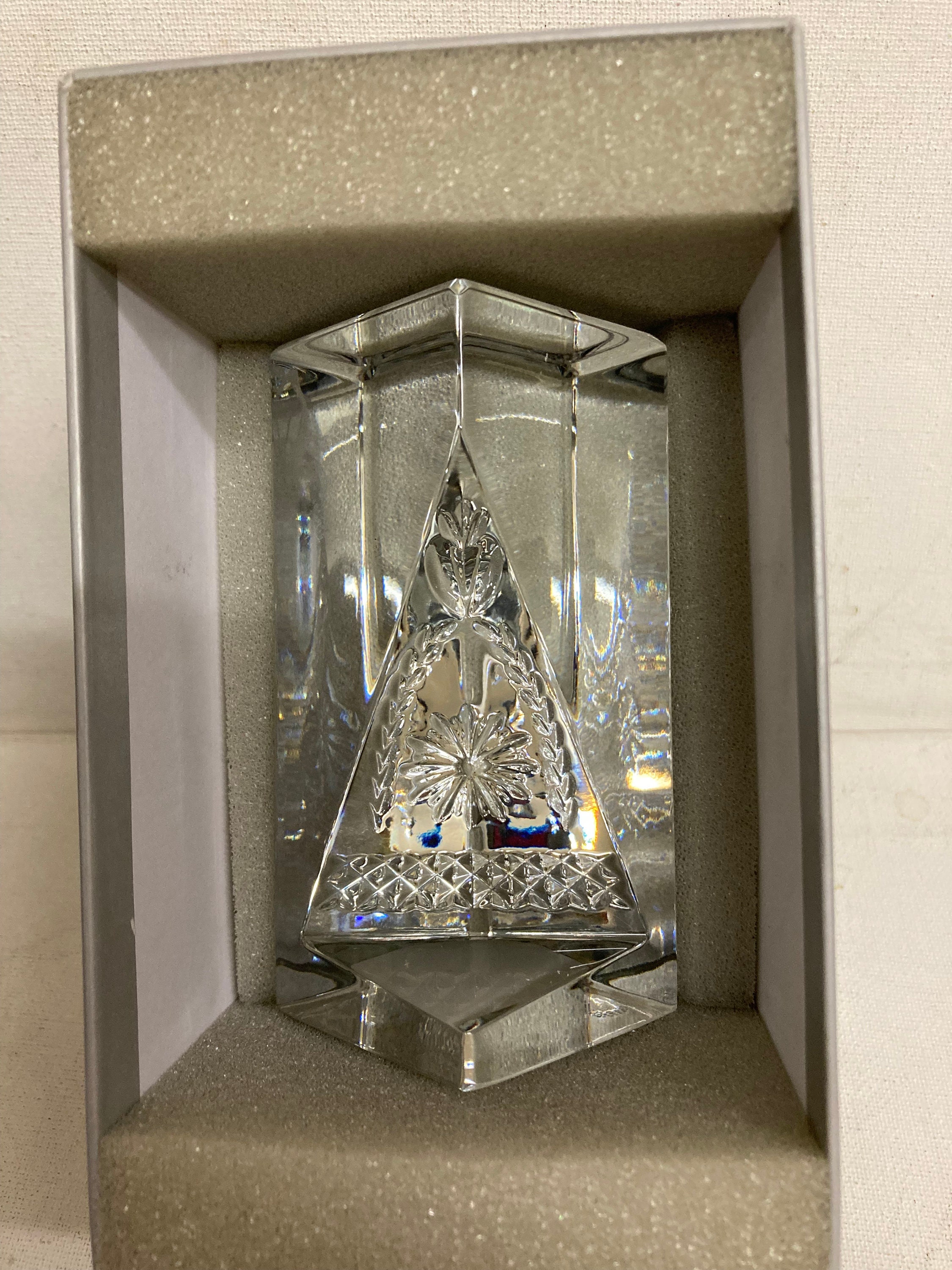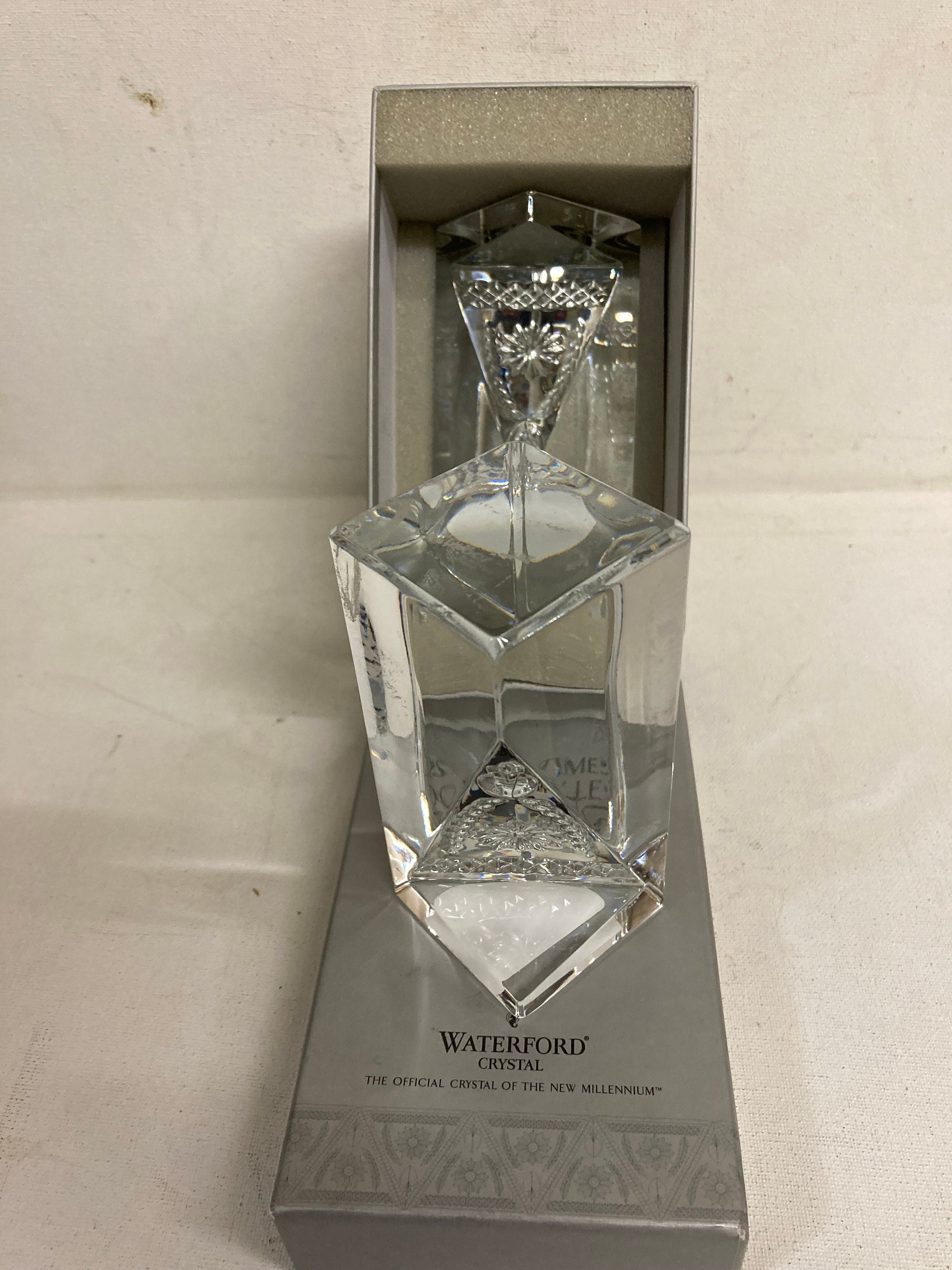 Description: Waterford Crystal Times Square 2001 paperweights. Included is a rectangular shaped plinth paperweight with a triangular cut design to the front. Approx. Net Weight: 4lbs Keywords: Glassware, Crystal; Ref: BD1235