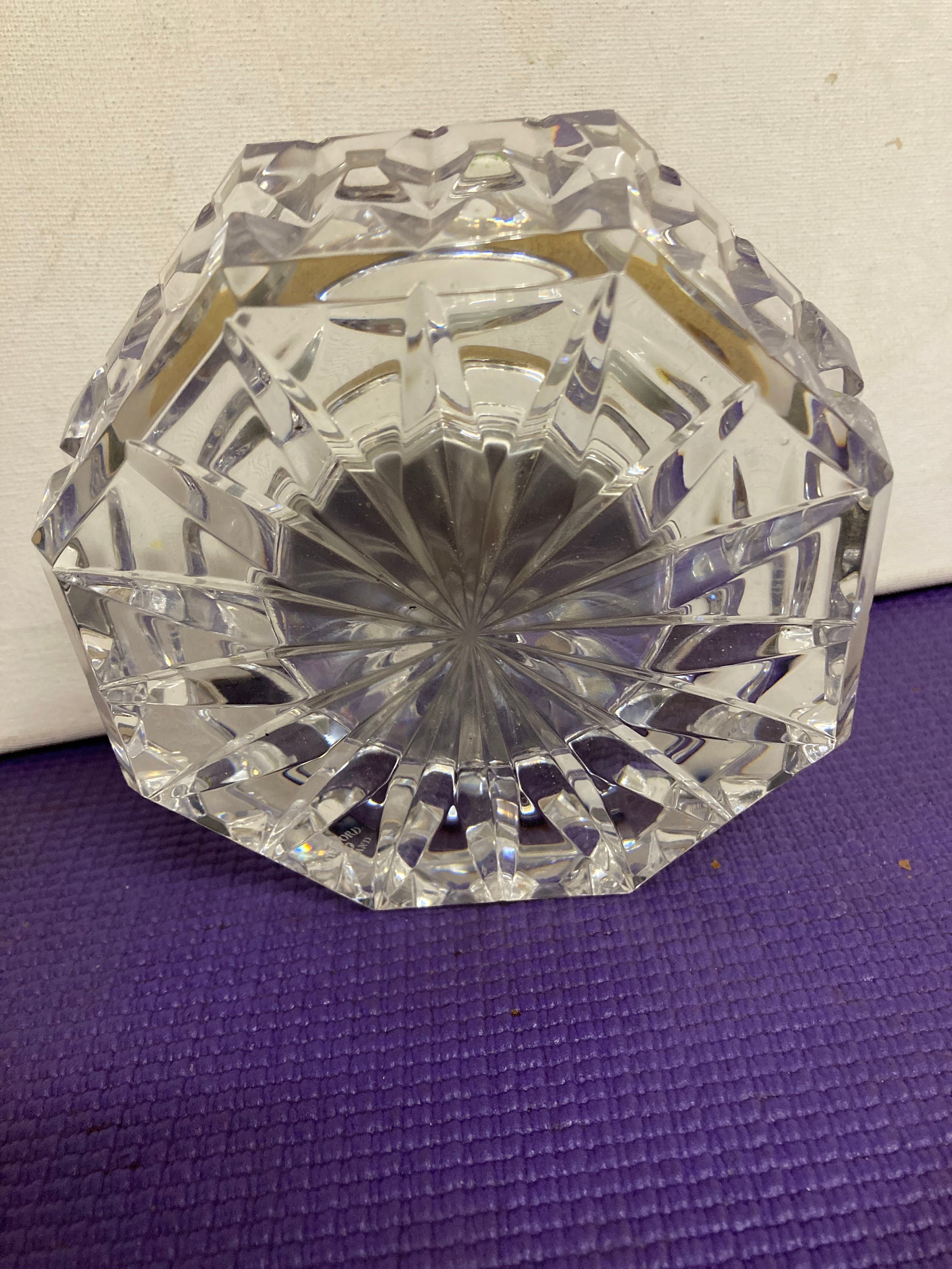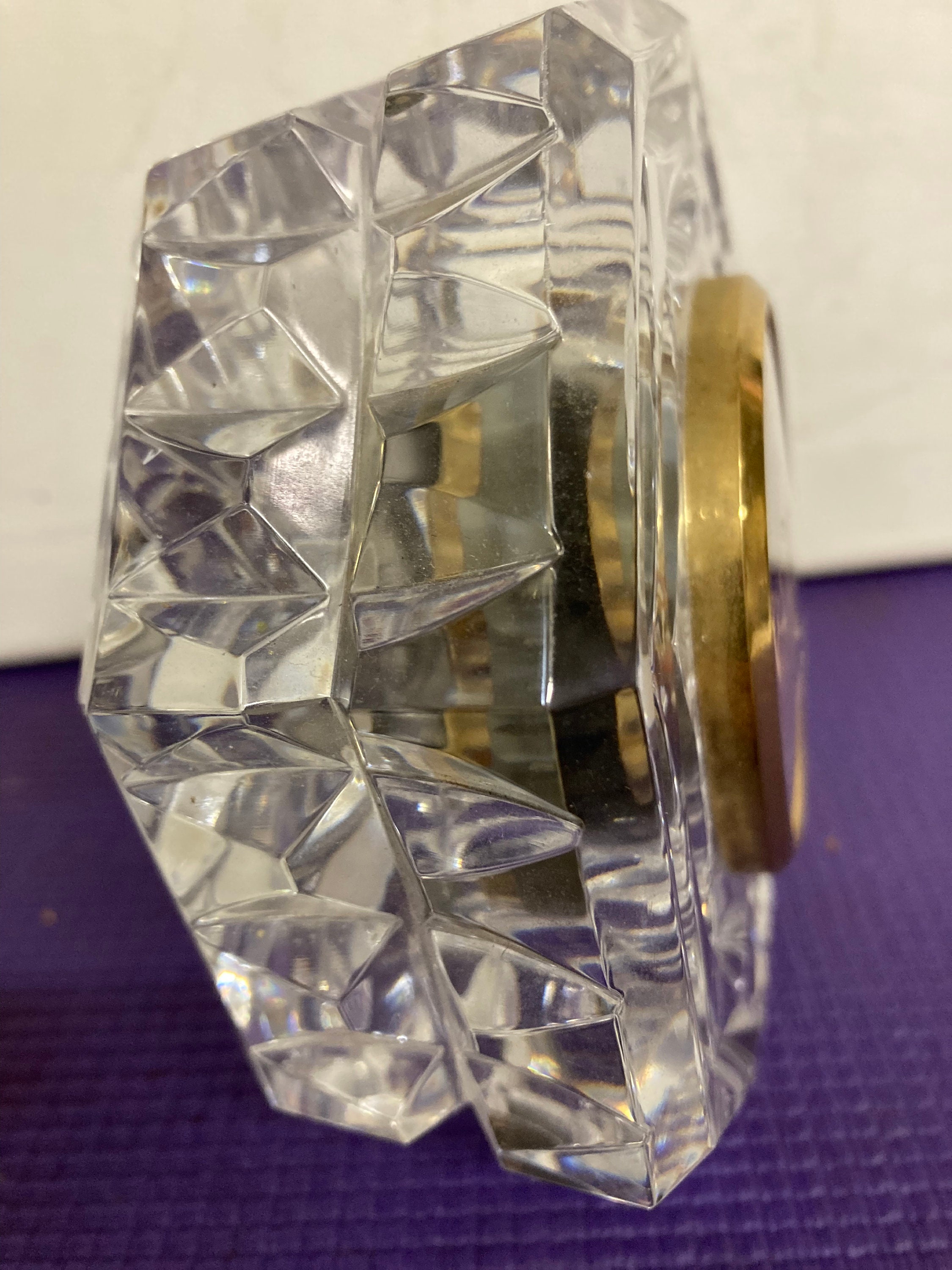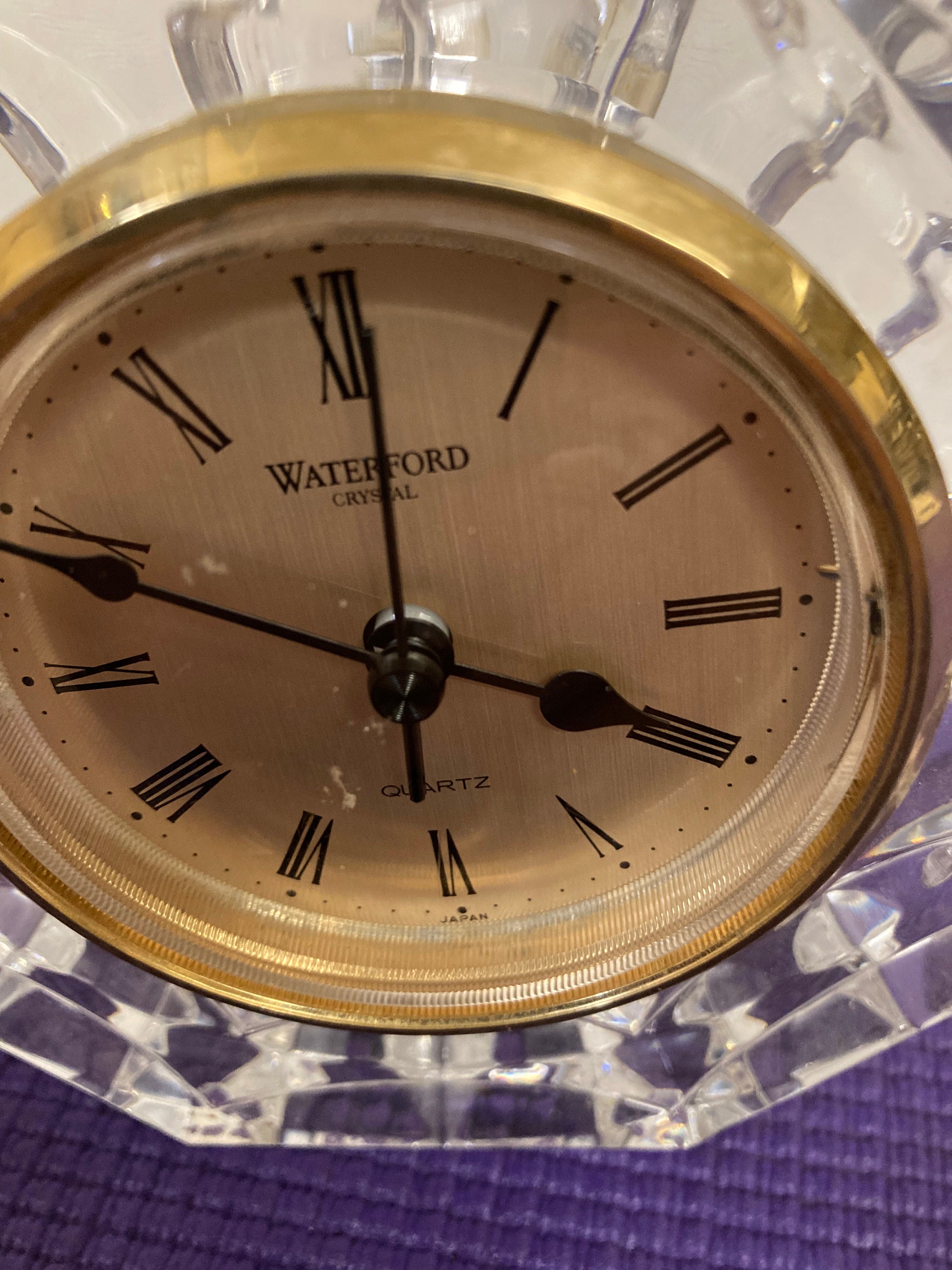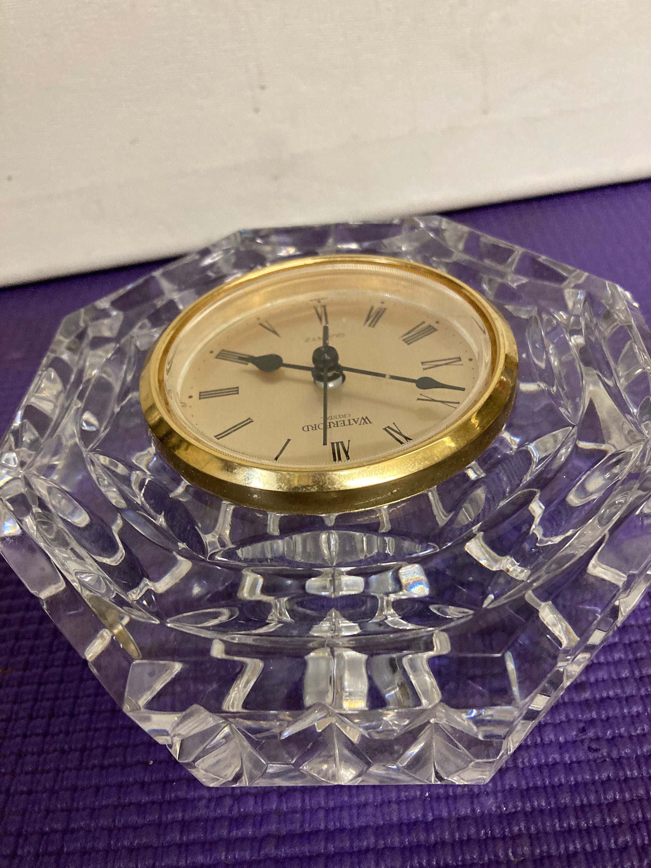 Waterford Crystal Octogonal Mantel/Desk ClockAbout 5 inches in diameter and 2 inch thickSolid and Strong ,All it need is a BatteryPerfect condition with no damages, scratches, chips or cracks