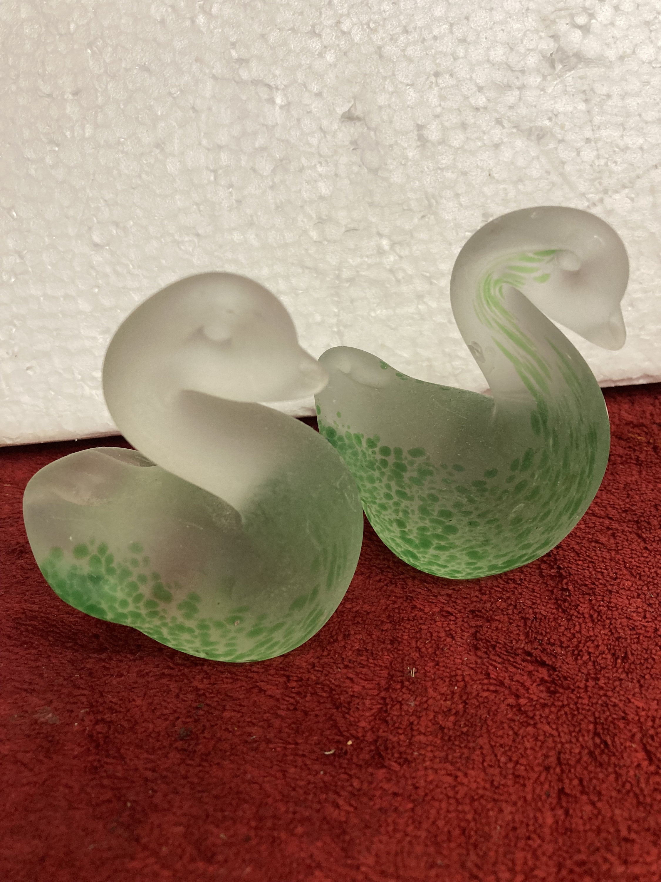 ( Mickey Mouse, Walt Disney)( 2 Wooden Docks, Japan )( 2 Green Glass Swans, Germany)( 1 Handmade Plaque)