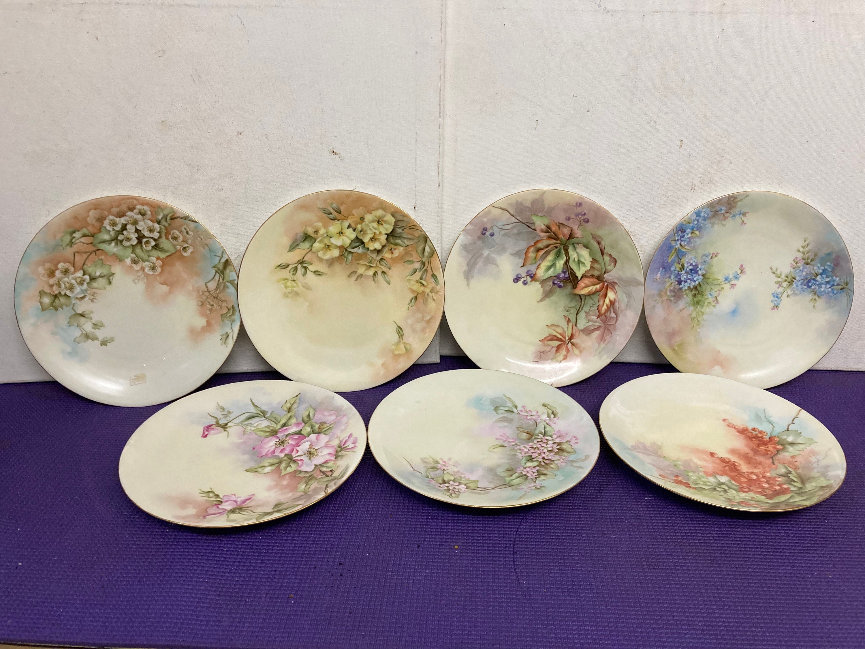 Seven Antique T & V Limoges France 8 1/2" porcelain plate made sometime between 1907-1919.