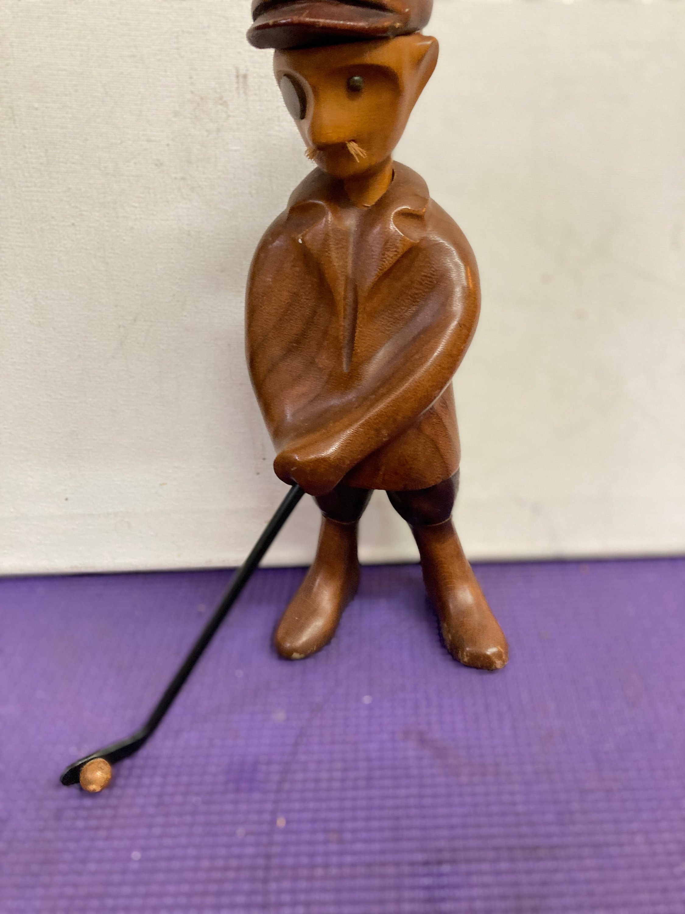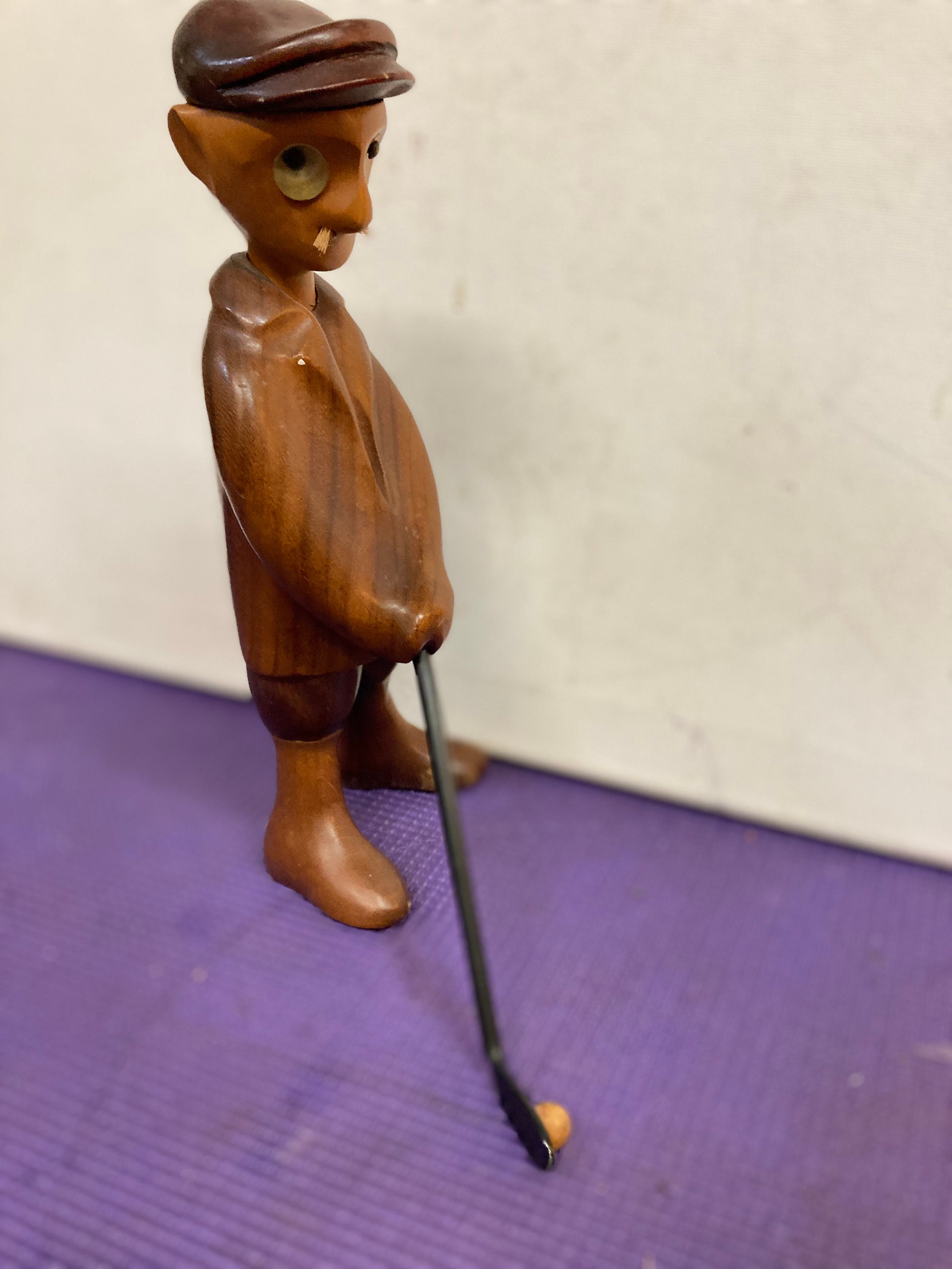 Vintage Hand Carved Wooden Figure ~The Golfer