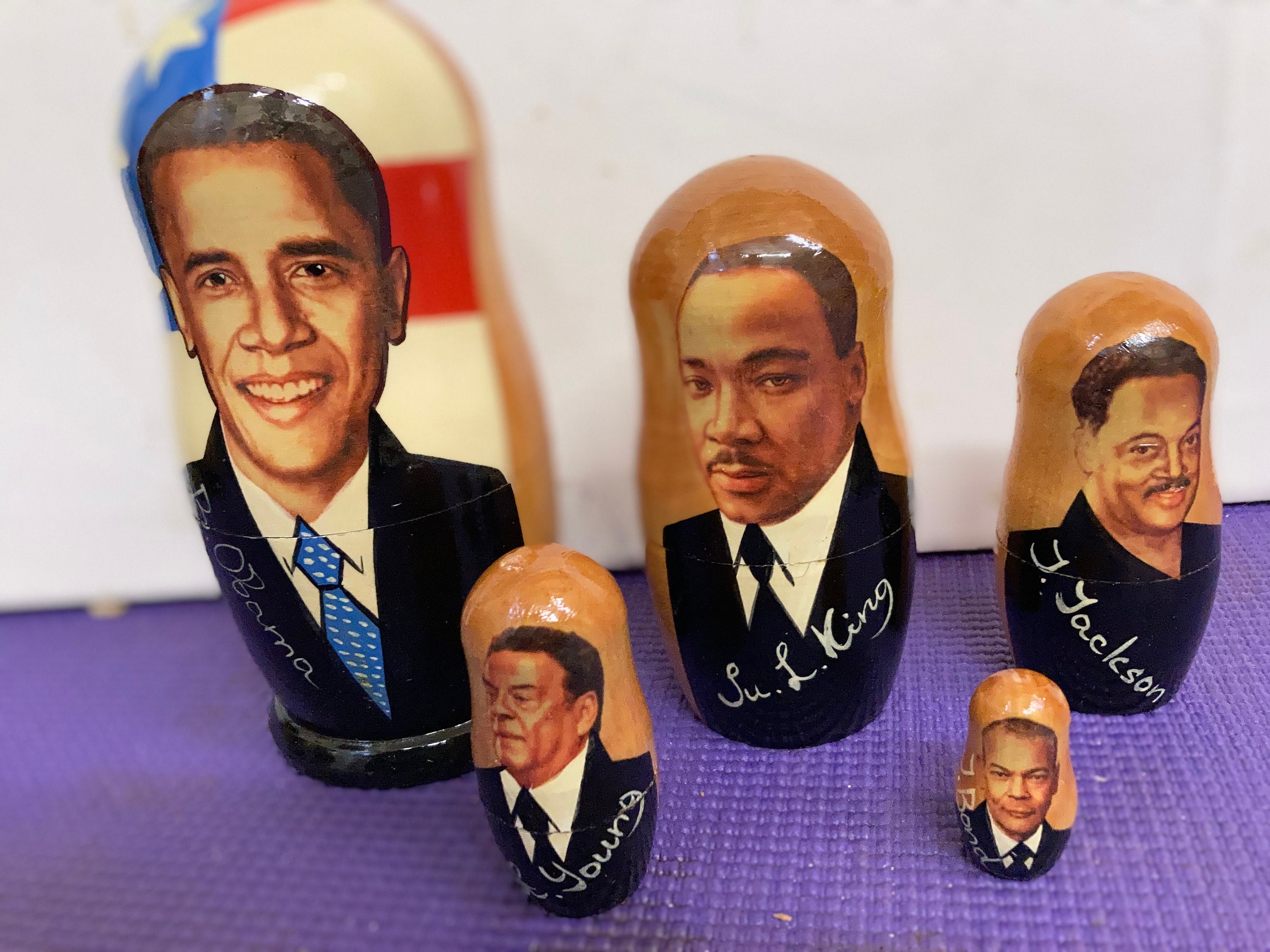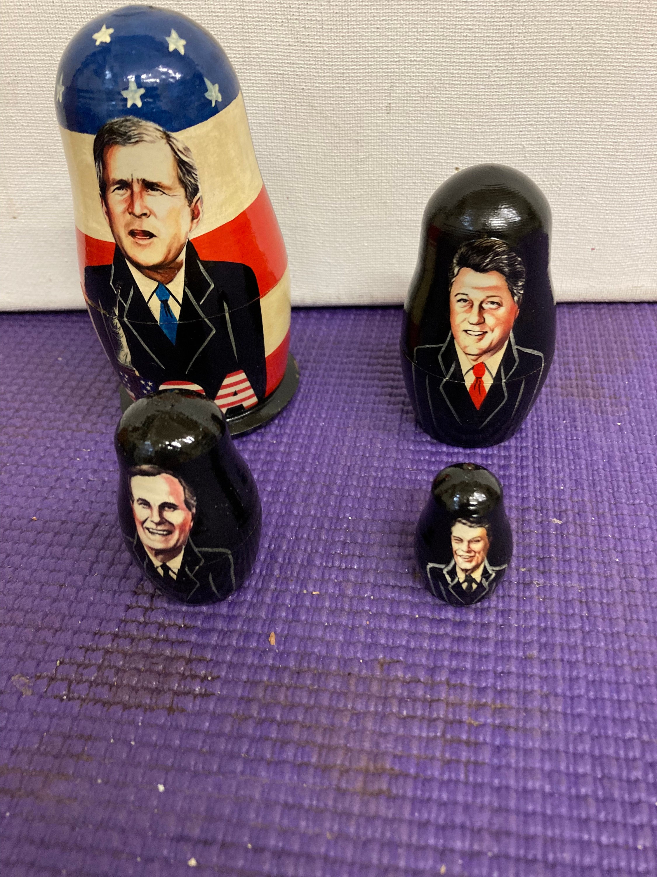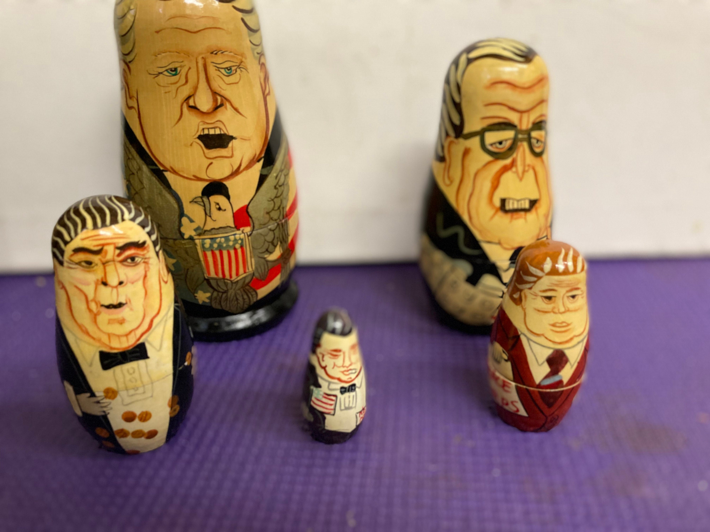 Six Rare Vintage and CollectiblePolitical Leaders Nesting Dolls Matryoshka 5 Piece Set,