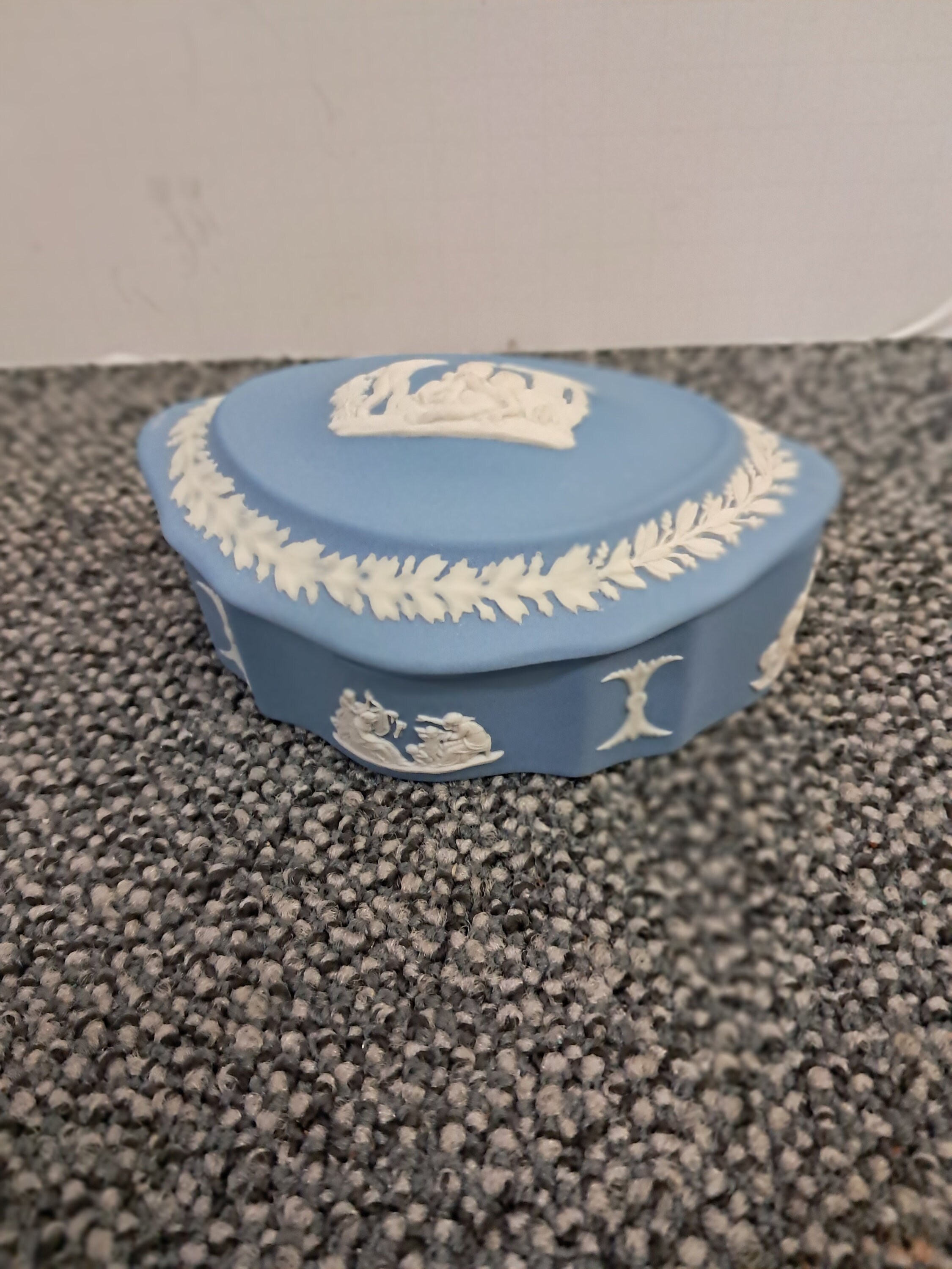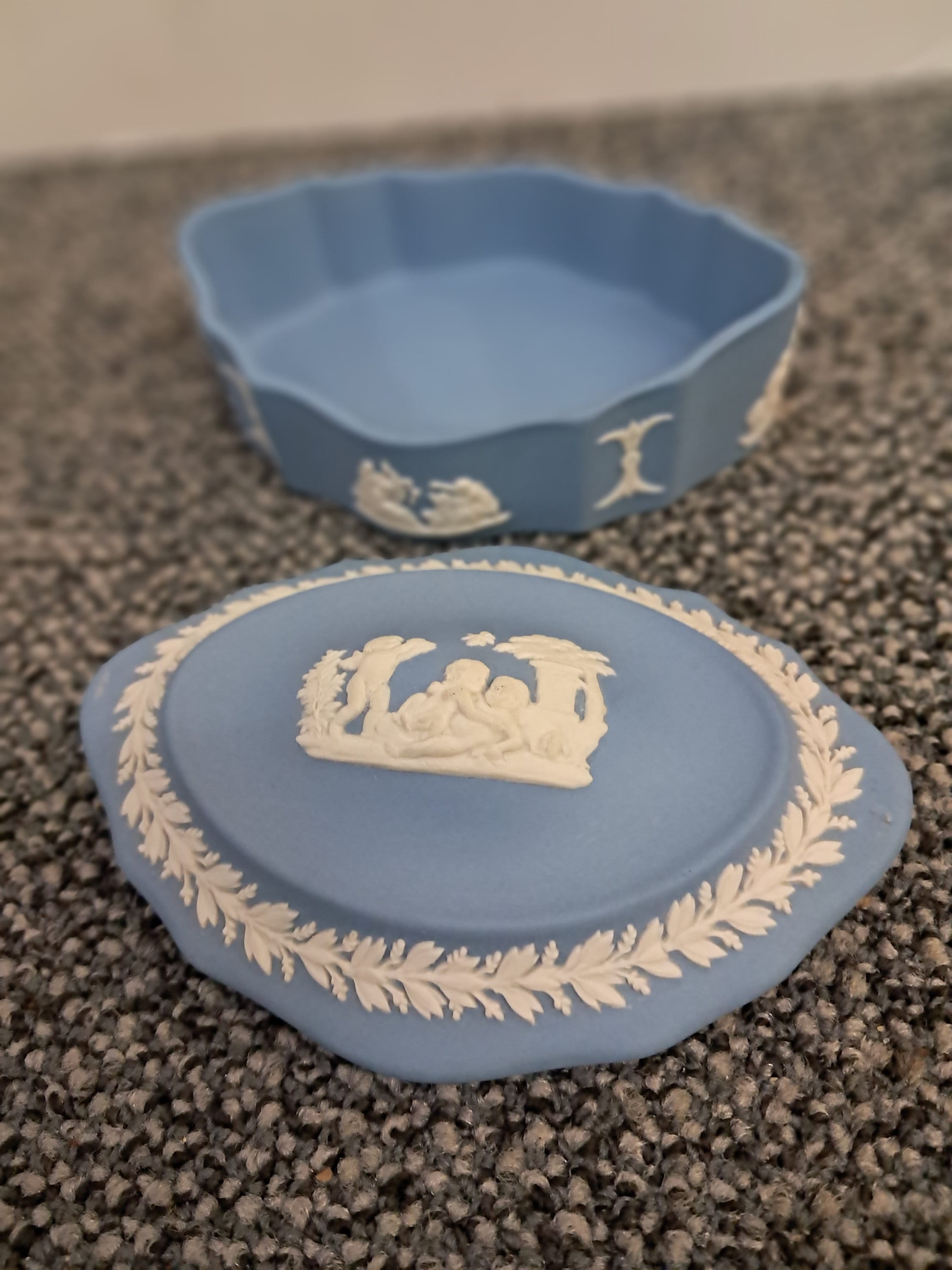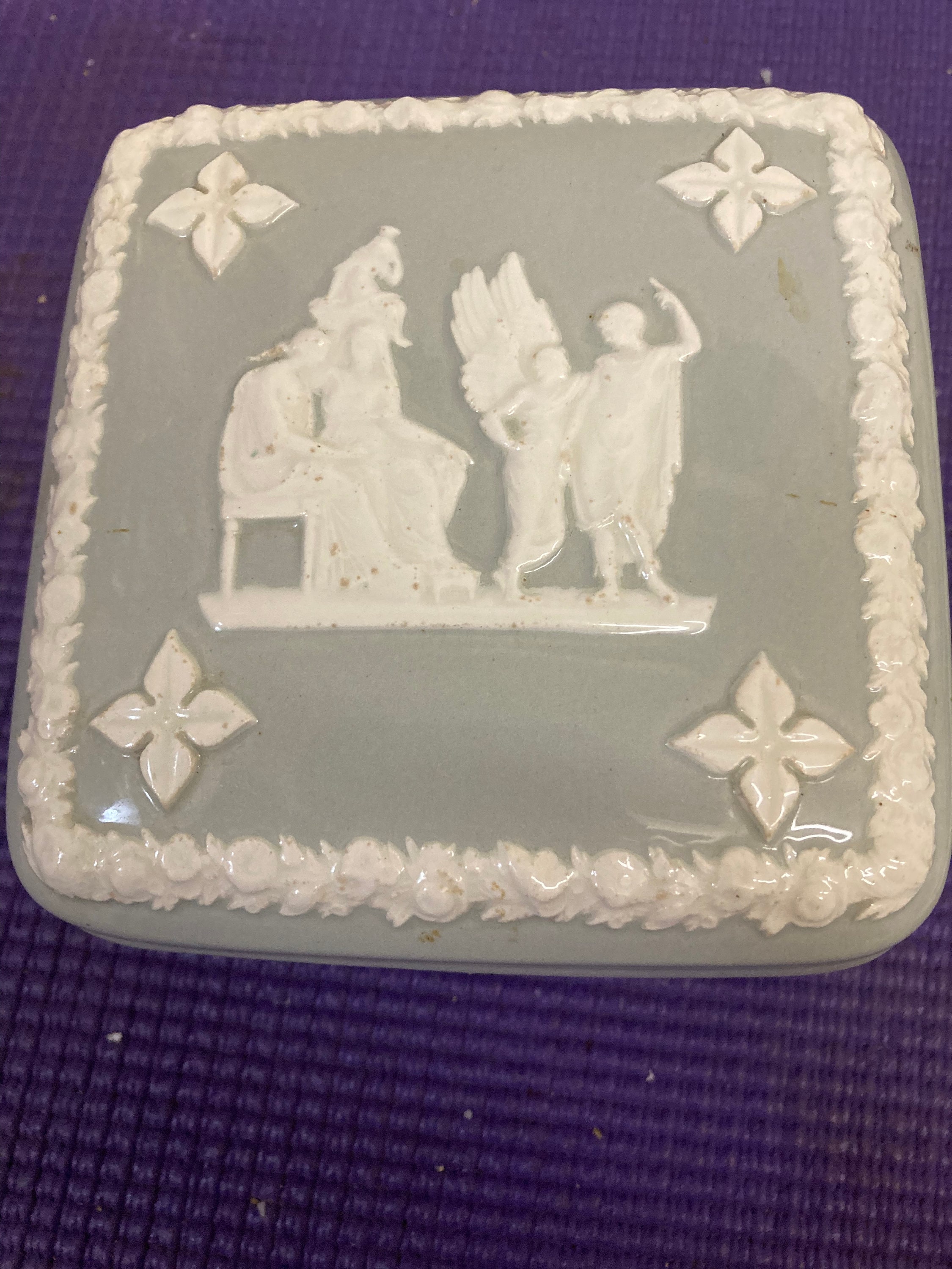 2 Wedgwood Of Etruria & Barlaston Powder or Jewlery Box (one light gray & one in Blue color)