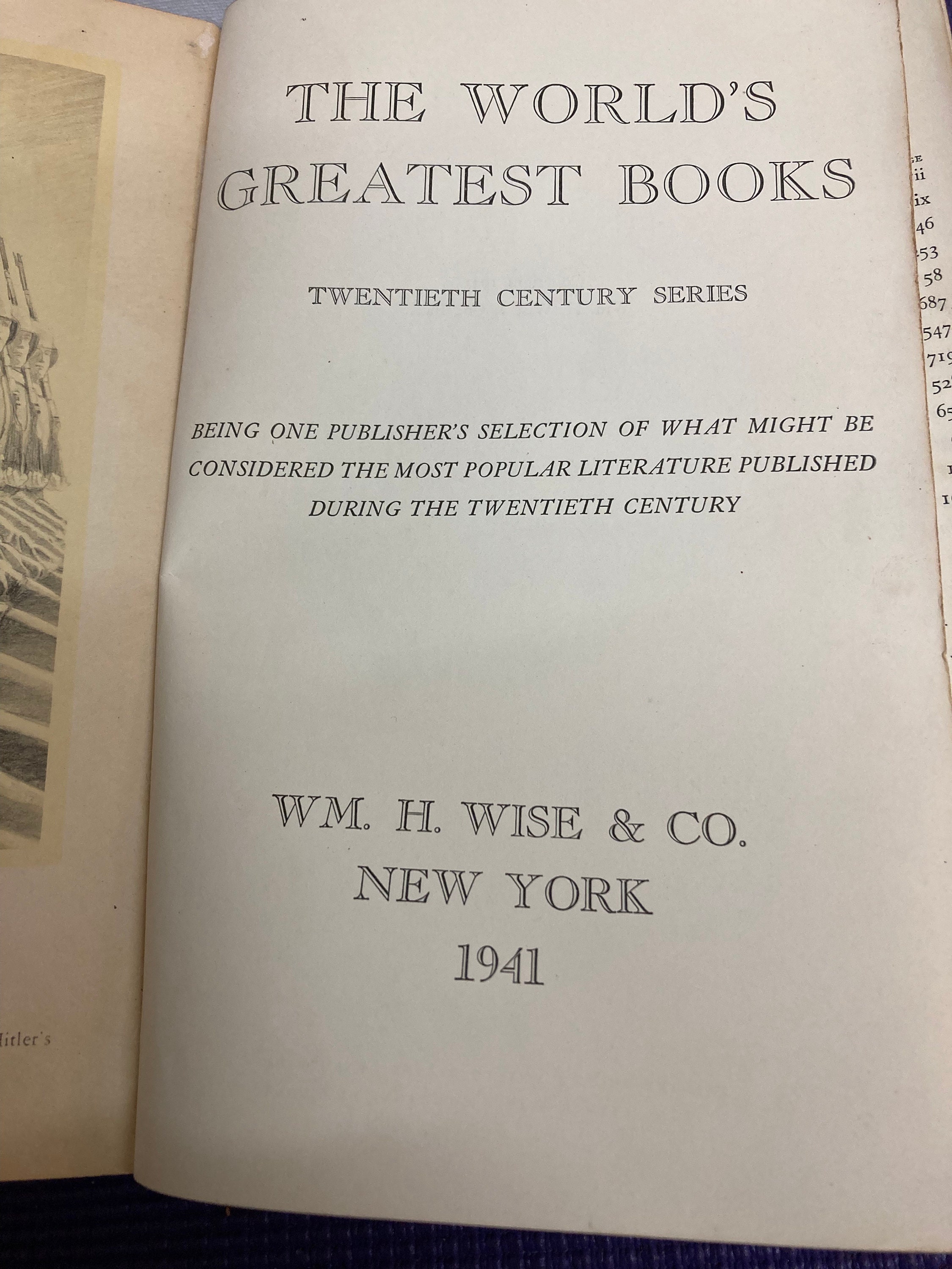 The World's Greatest Books, Twentieth Century Series, Being One Publisher's Selection Of What Might Be Considered The Most Popular Literature Published During The Twentieth Century