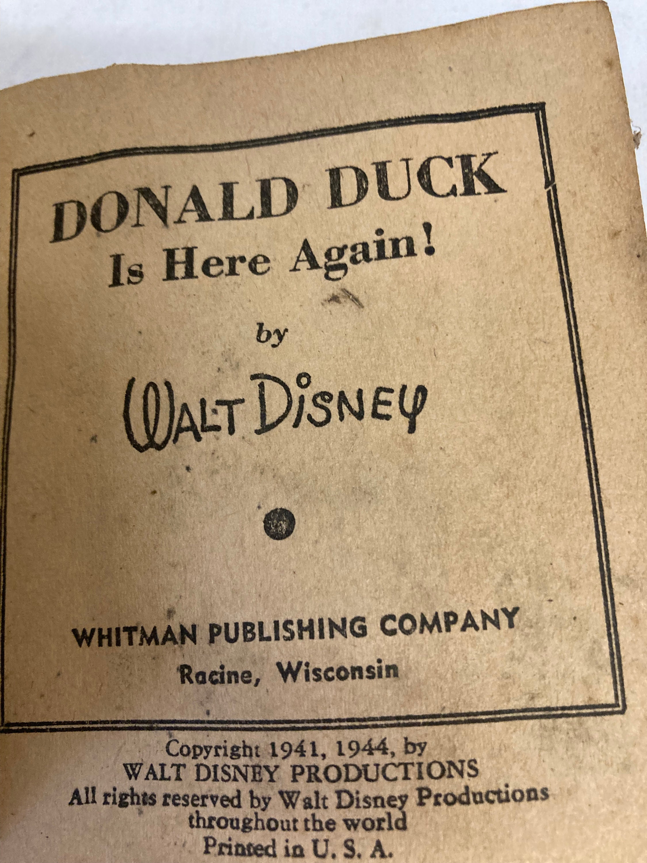 Walt Disney. "DONALD DUCK IS HERE AGAIN!" Whitman Publishing Company.