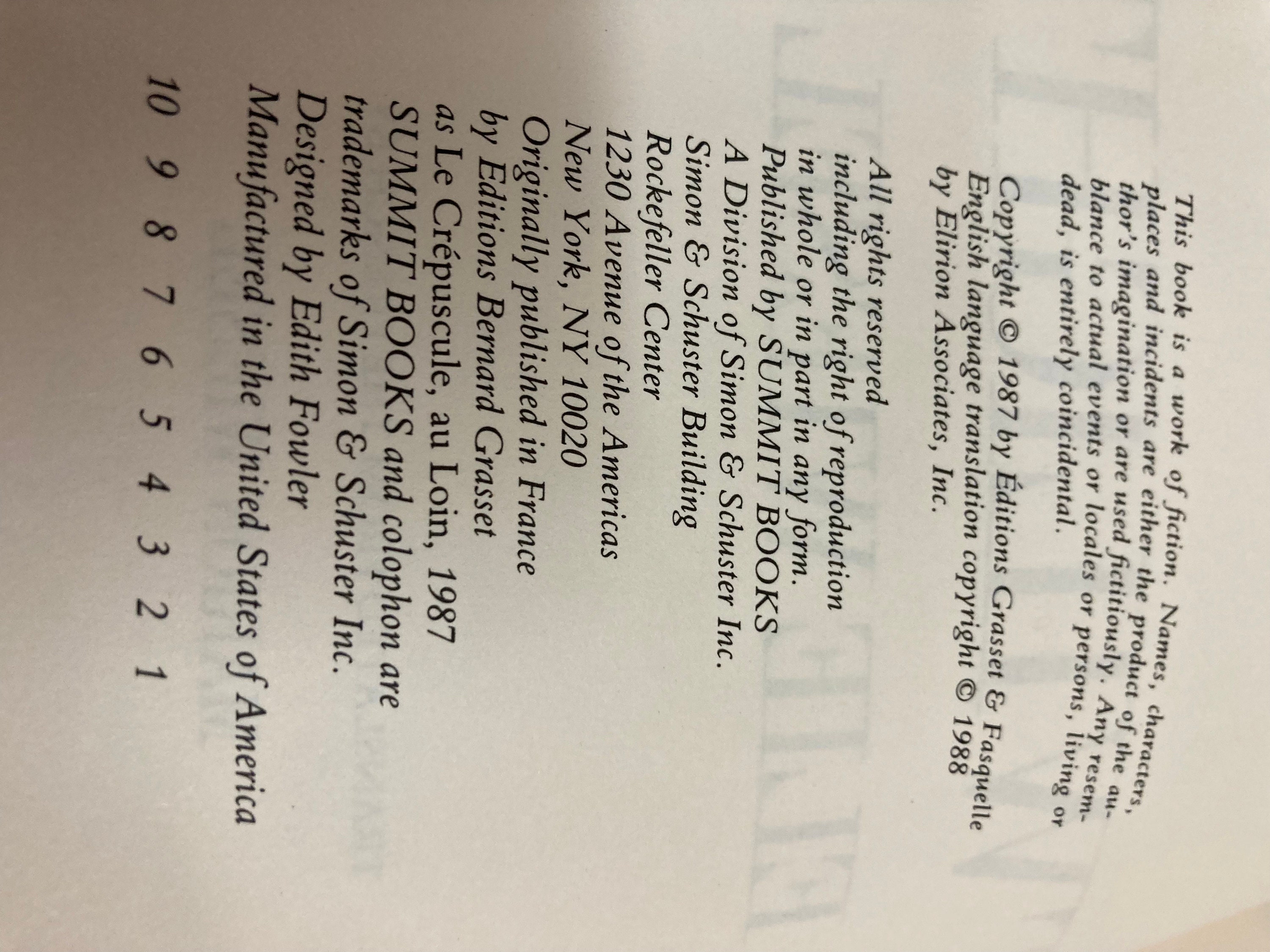 New York: Summit Books, 1988. First Edition; First Printing. Hardcover