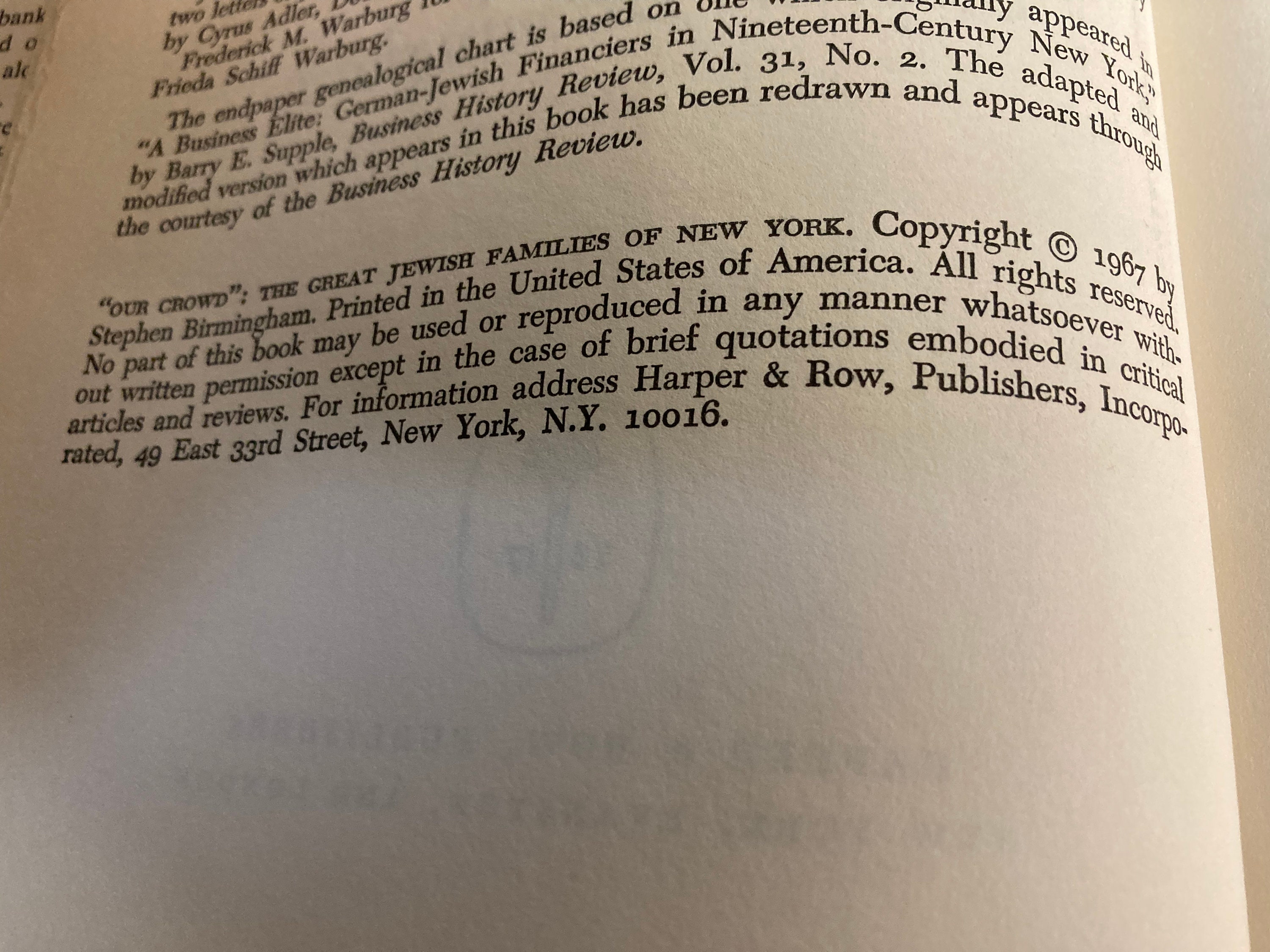 Our Crowd The Great Jewish Families of New York, Stephen Birmingham, 1967