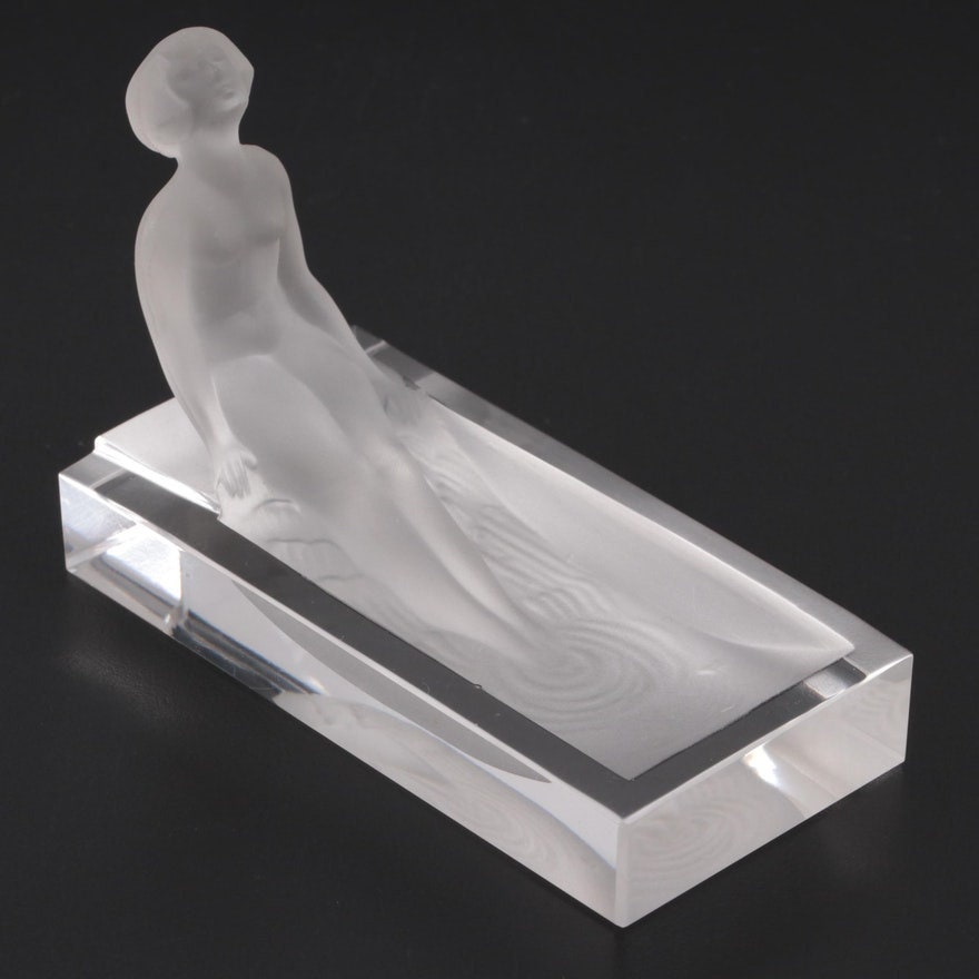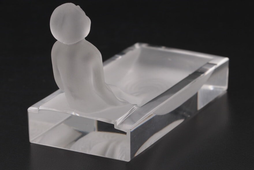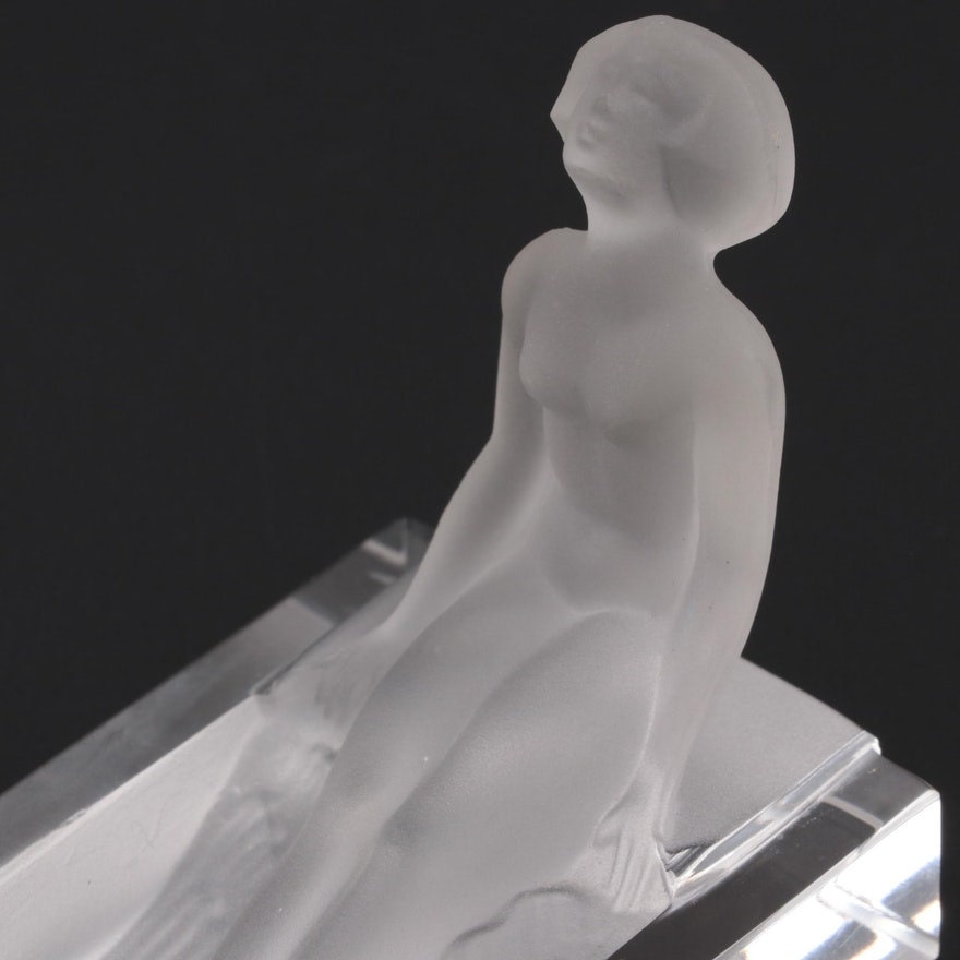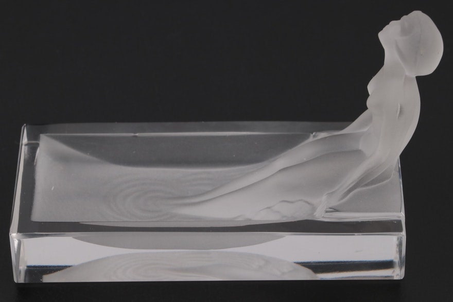 Art Deco Frosted Glass Nude Woman Bathing Glass Soap Dish