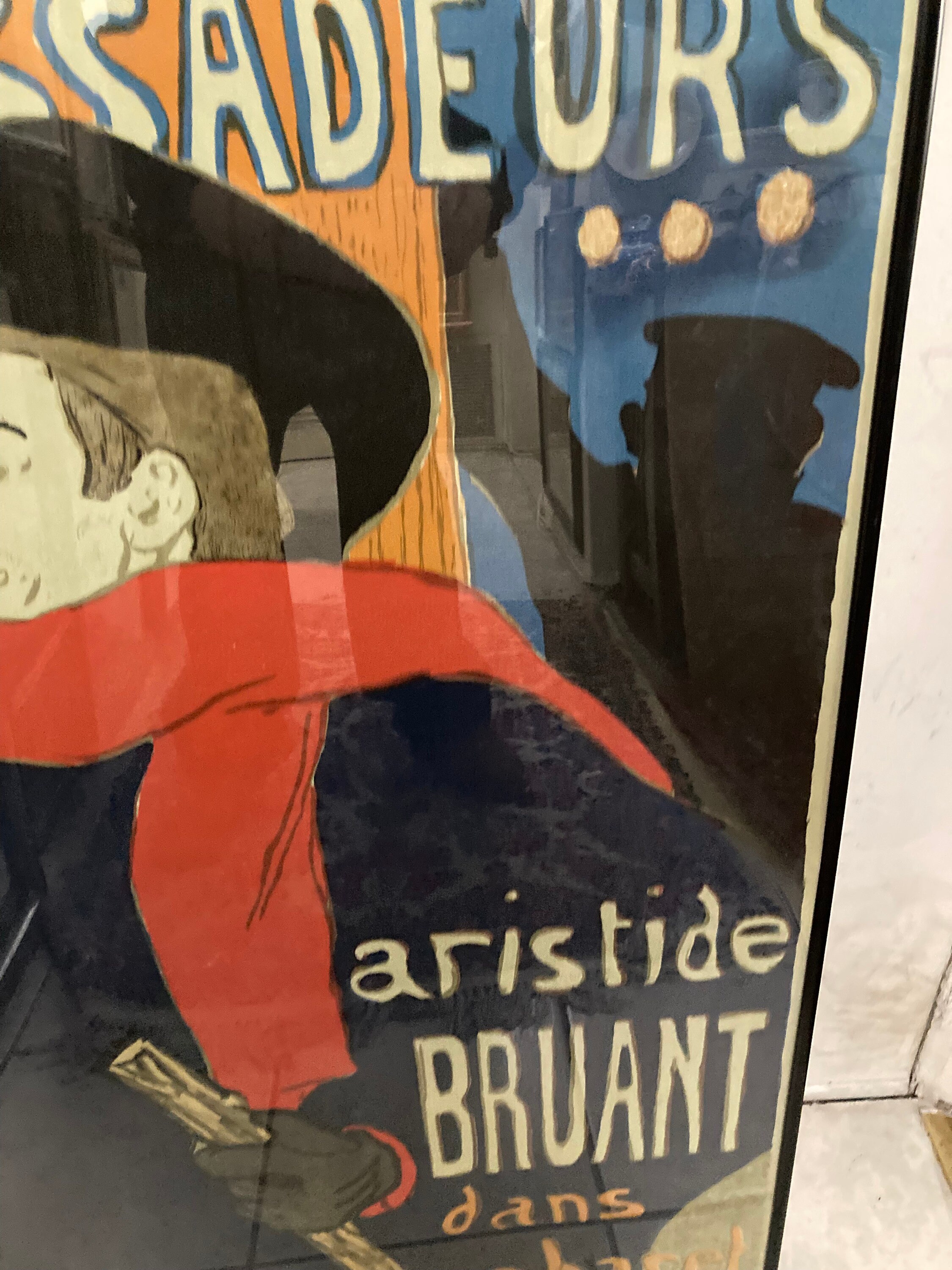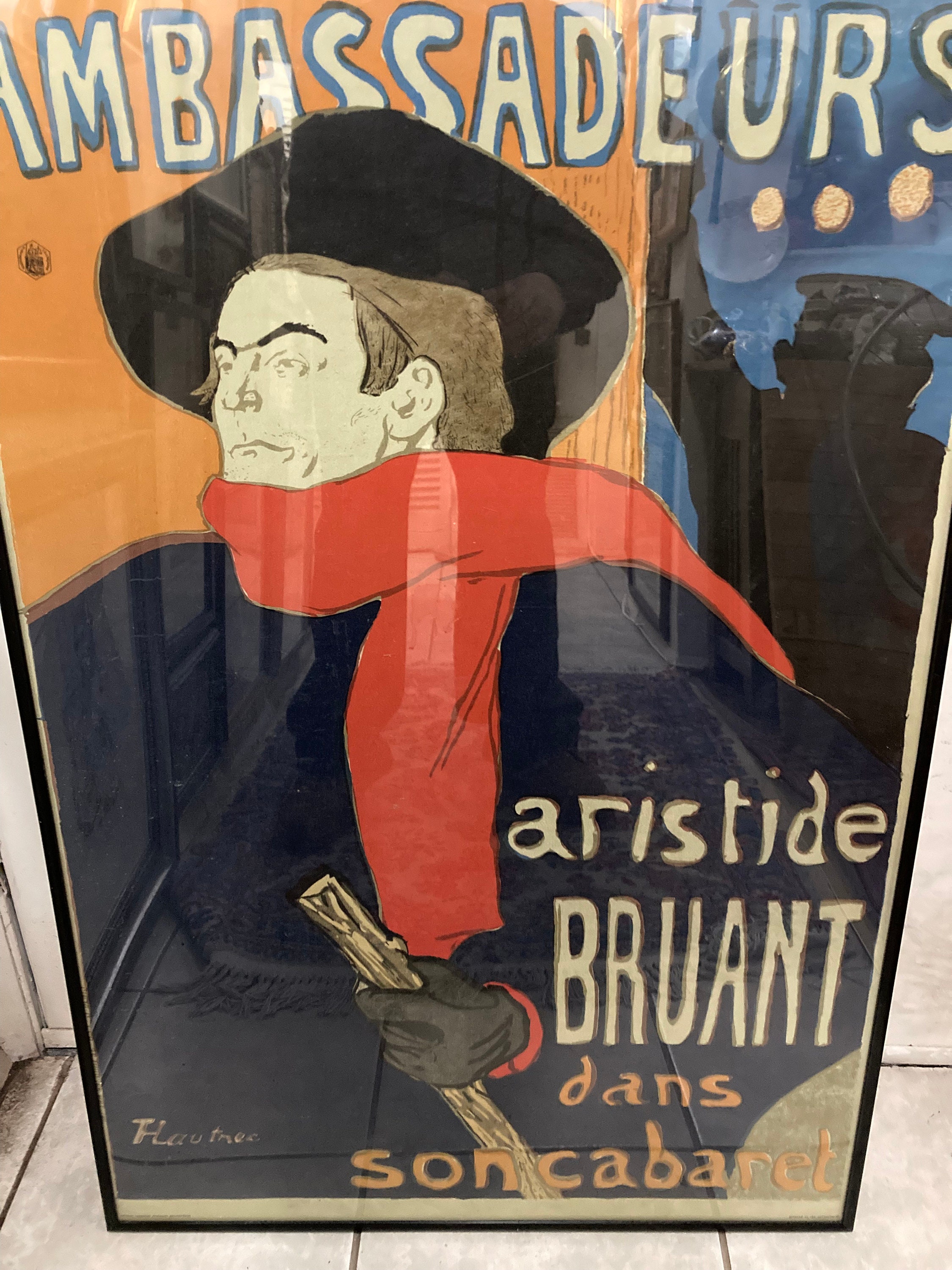 Bruant was known for his use of street slang and rowdiness on stage, and Toulouse-Lautrec successfully