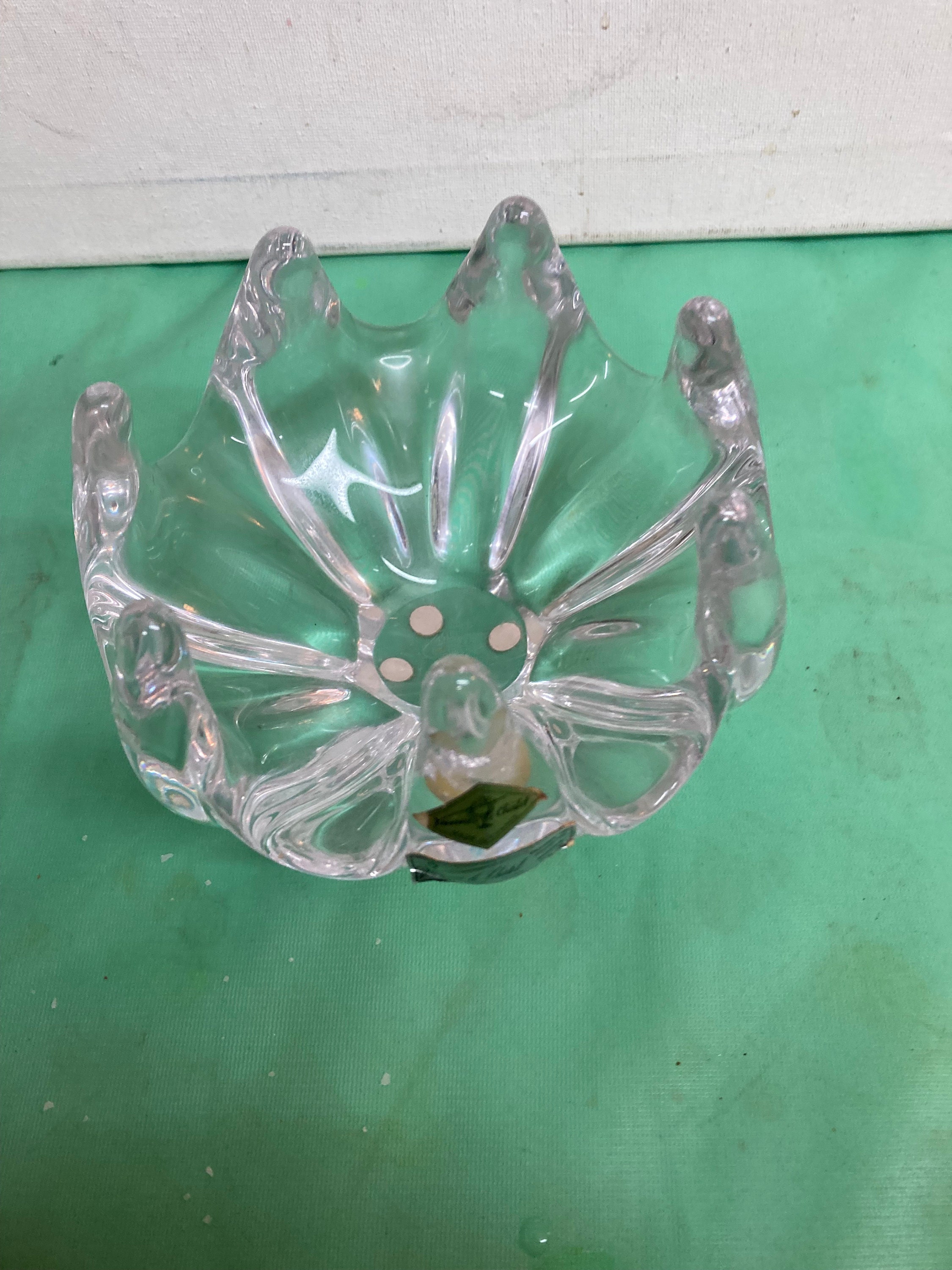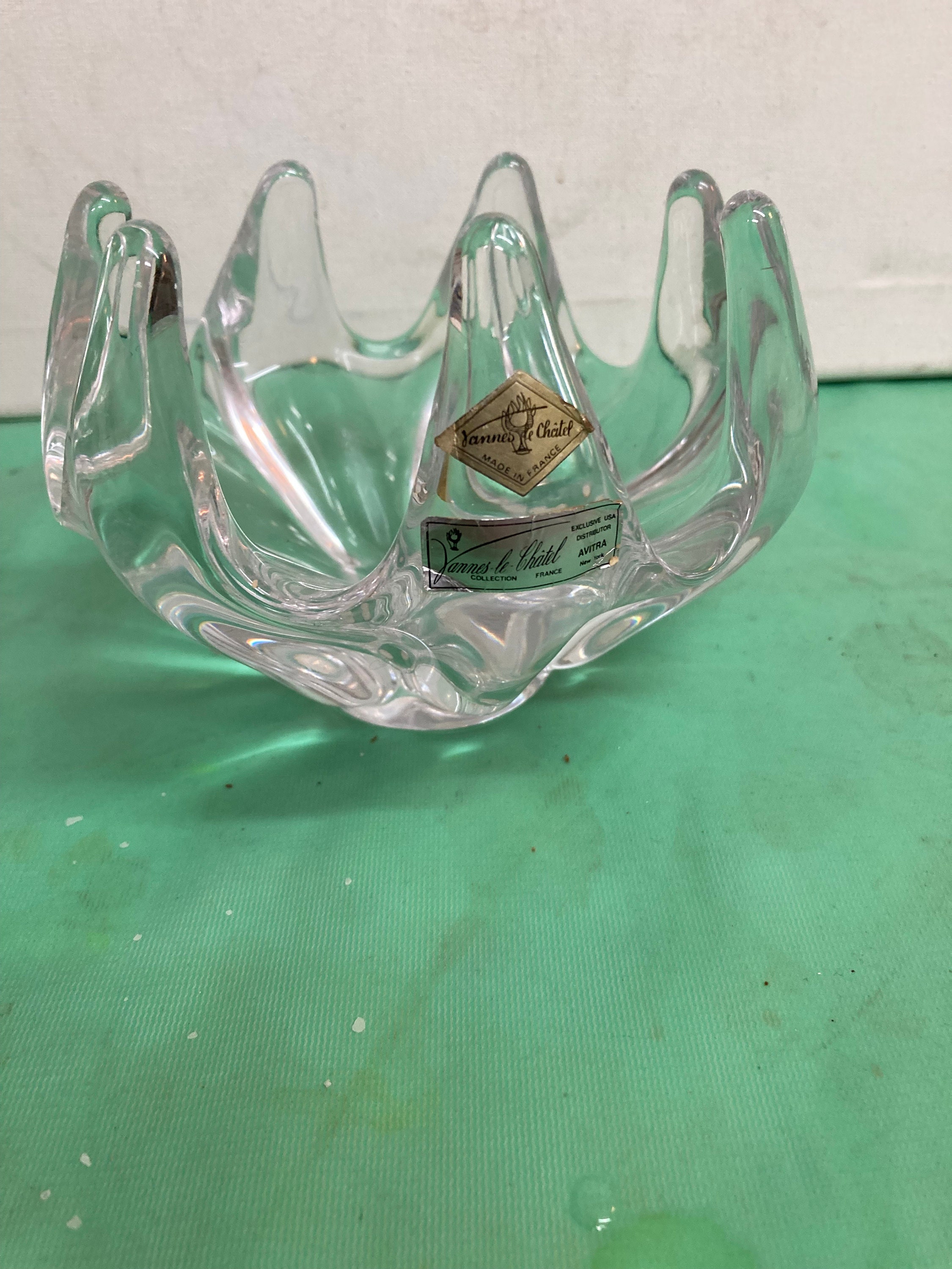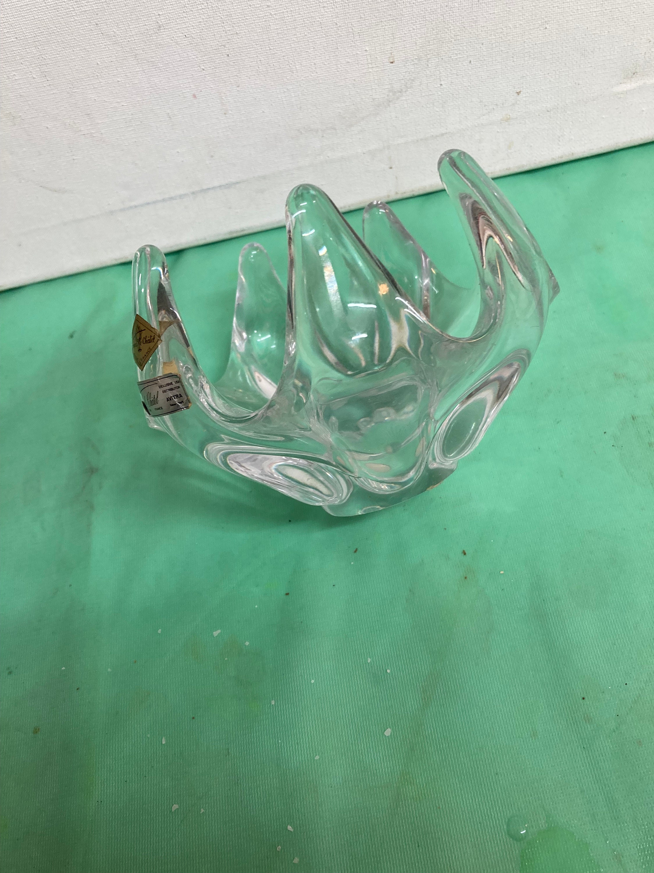 A vintage blown glass crystal bowl by Vannes le Chatel France. Bowl features seven fingers or prongs in an upward reaching design.