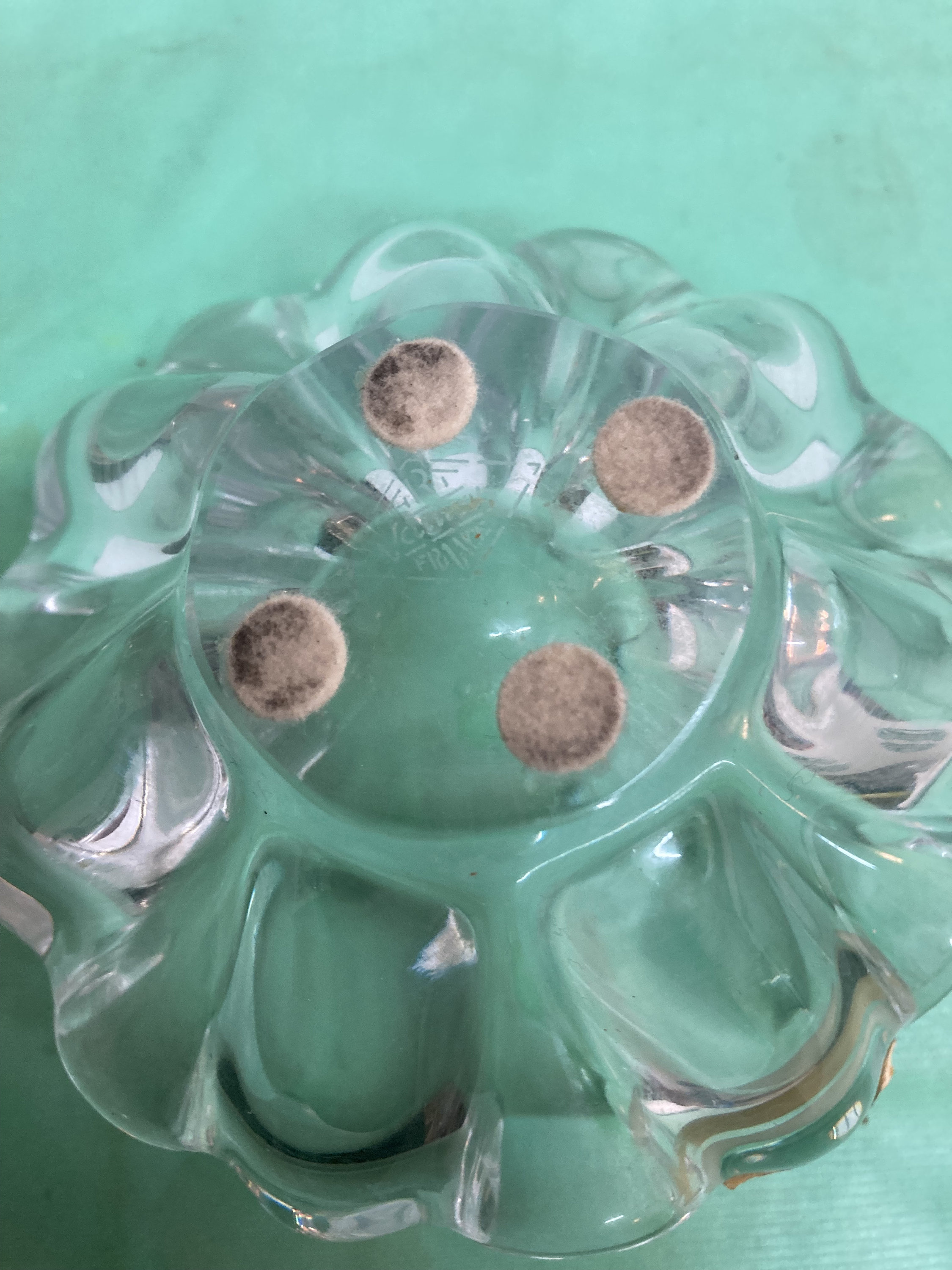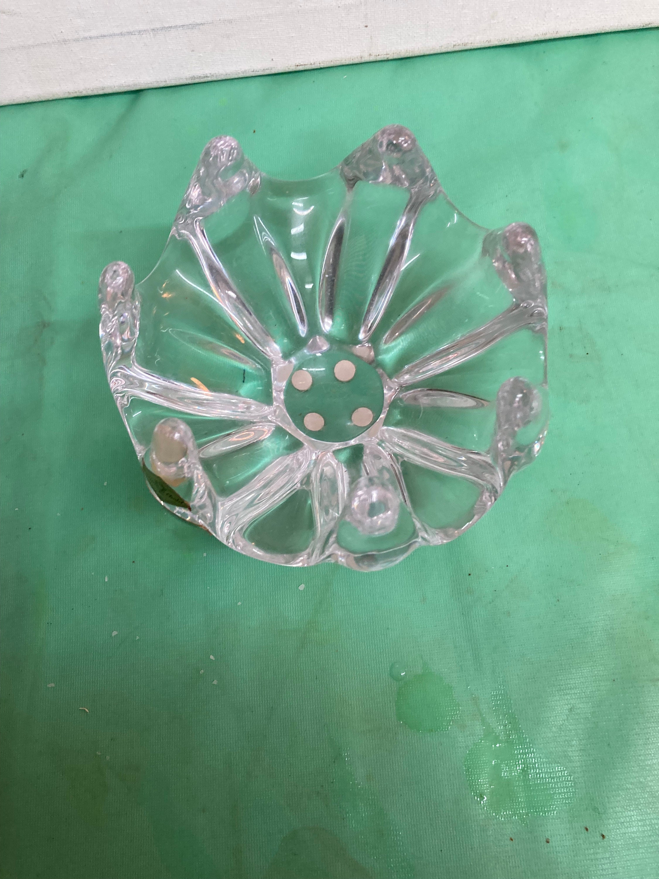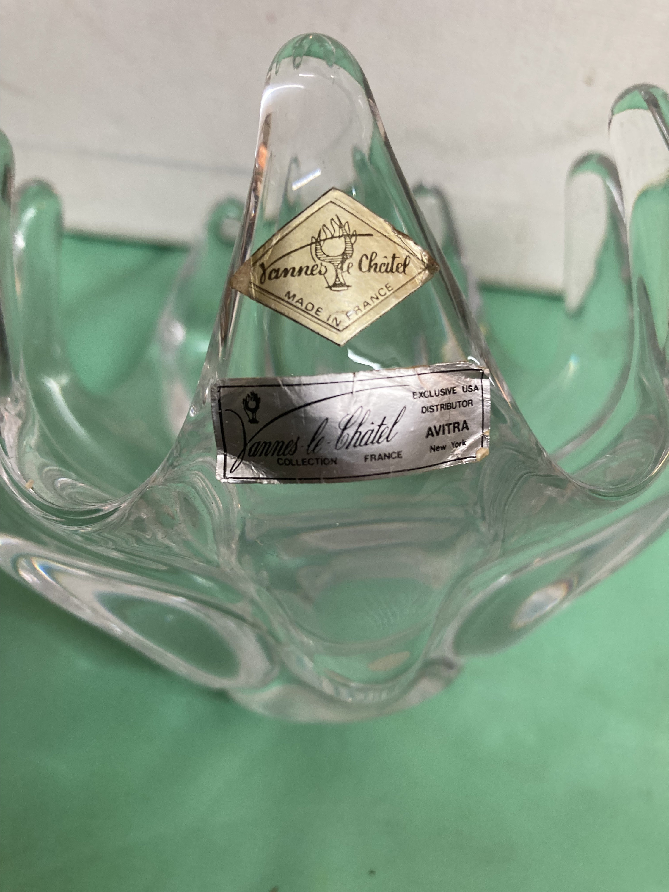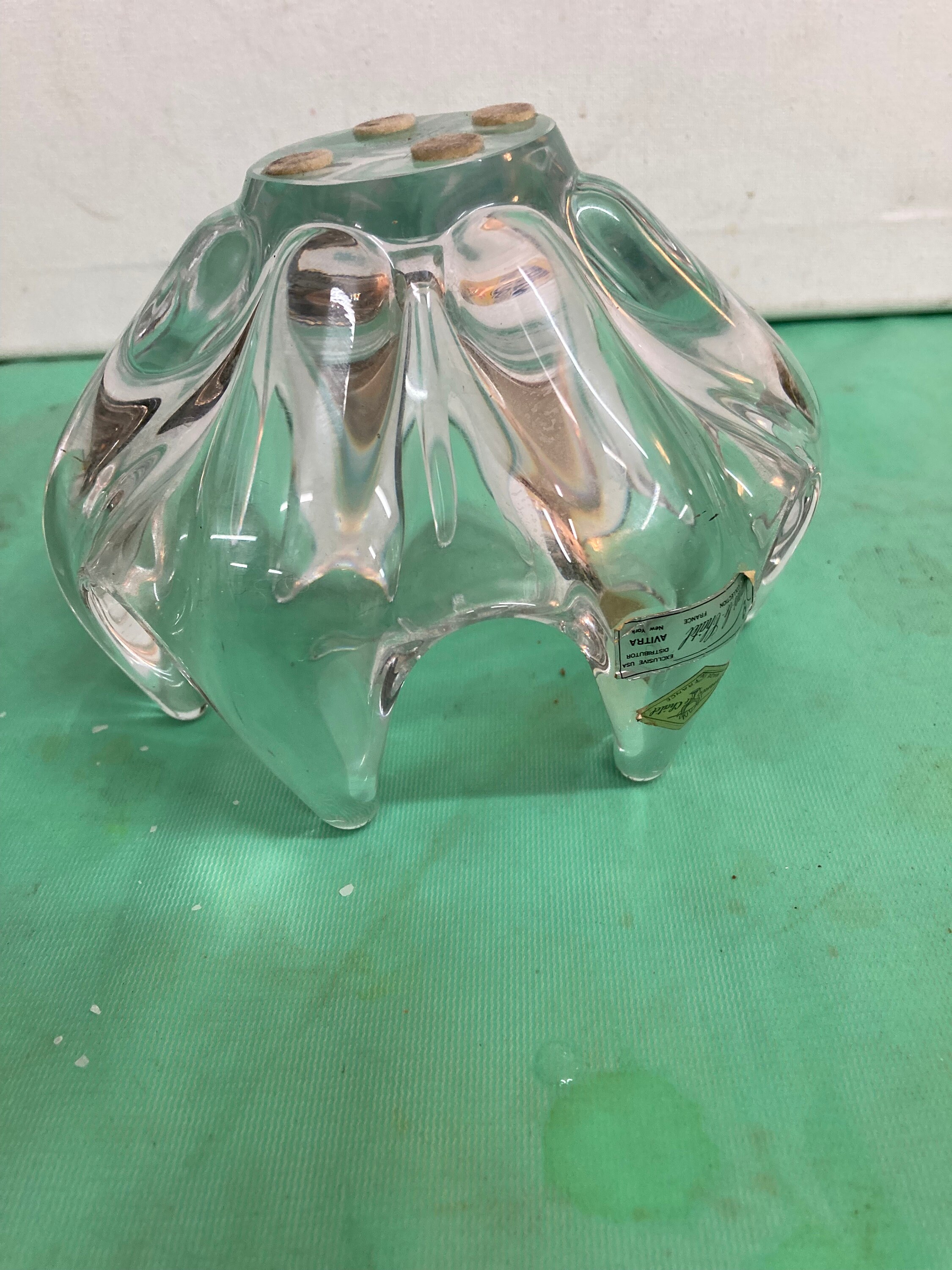 A vintage blown glass crystal bowl by Vannes le Chatel France. Bowl features seven fingers or prongs in an upward reaching design.