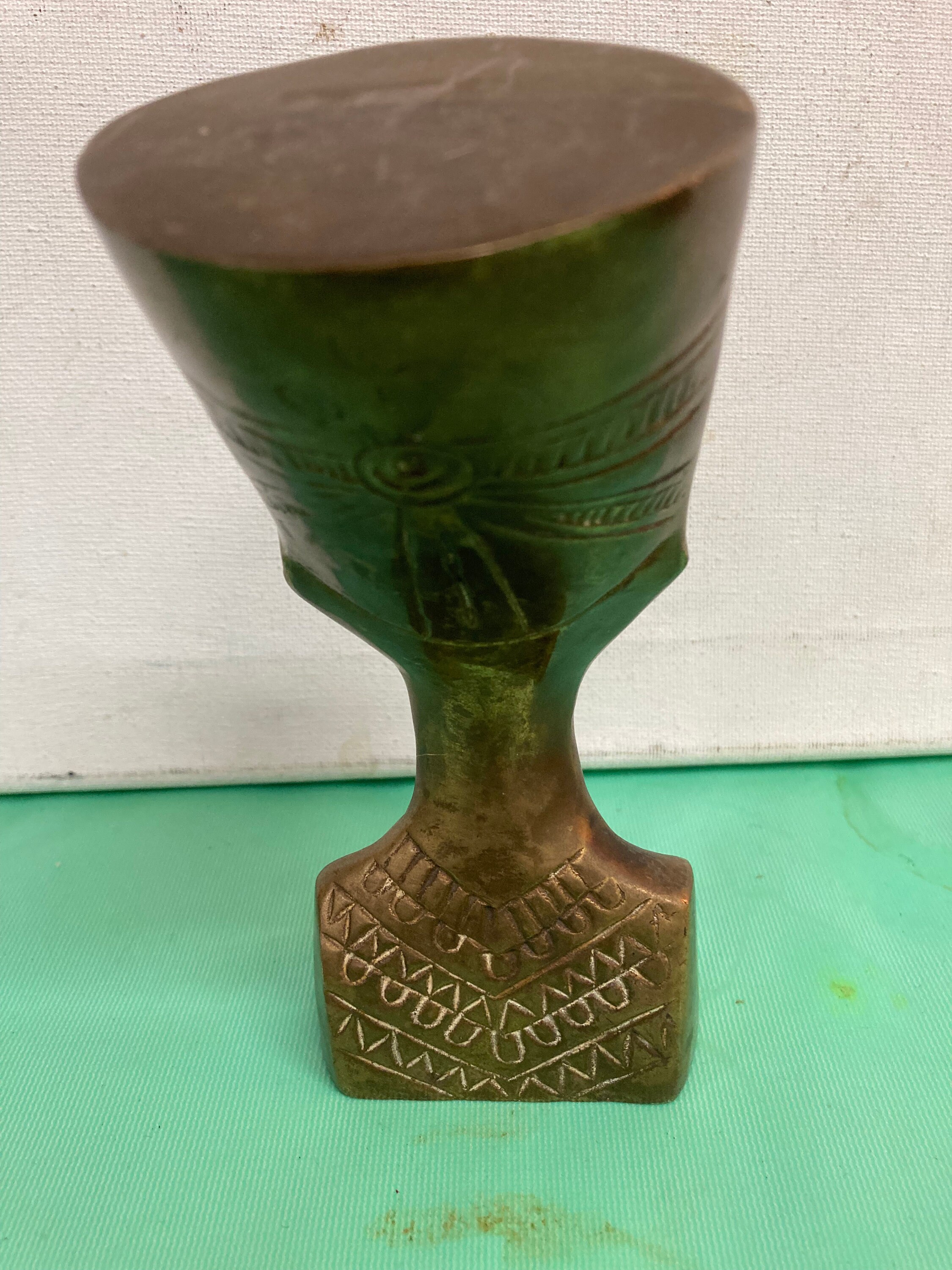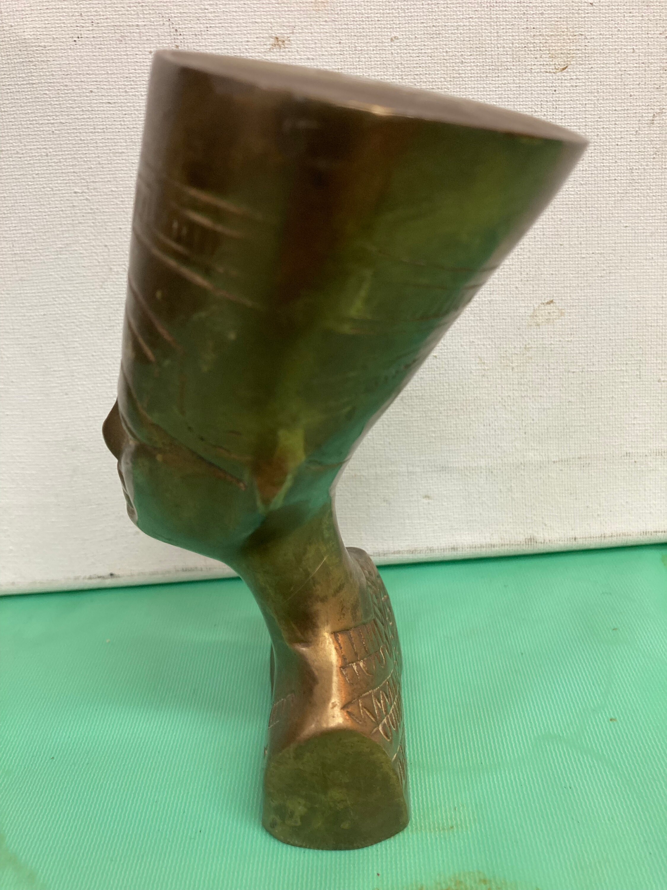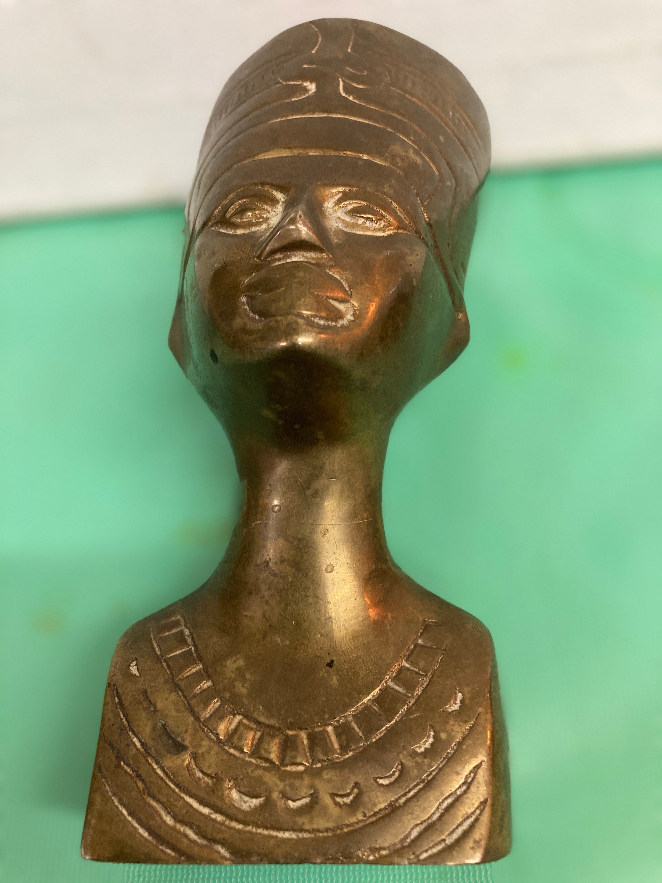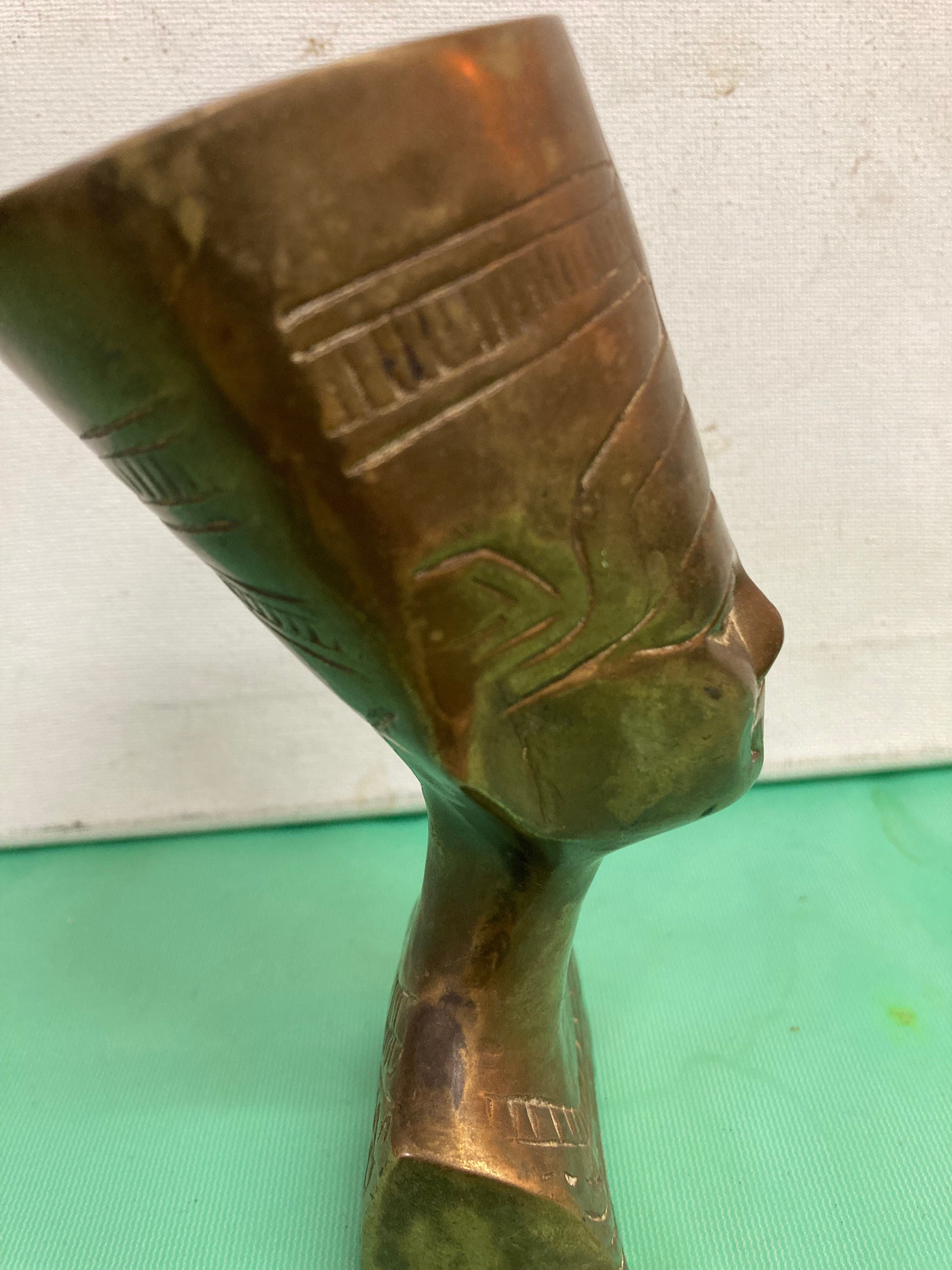Nefertiti Bronze Bust Statue, Egyptian Queen Nefertiti Sculpture5 " tall ,,2.5 " base,,2.5 " wide , weights 1 lb Good Vintage condition with normal wear & tear due to age