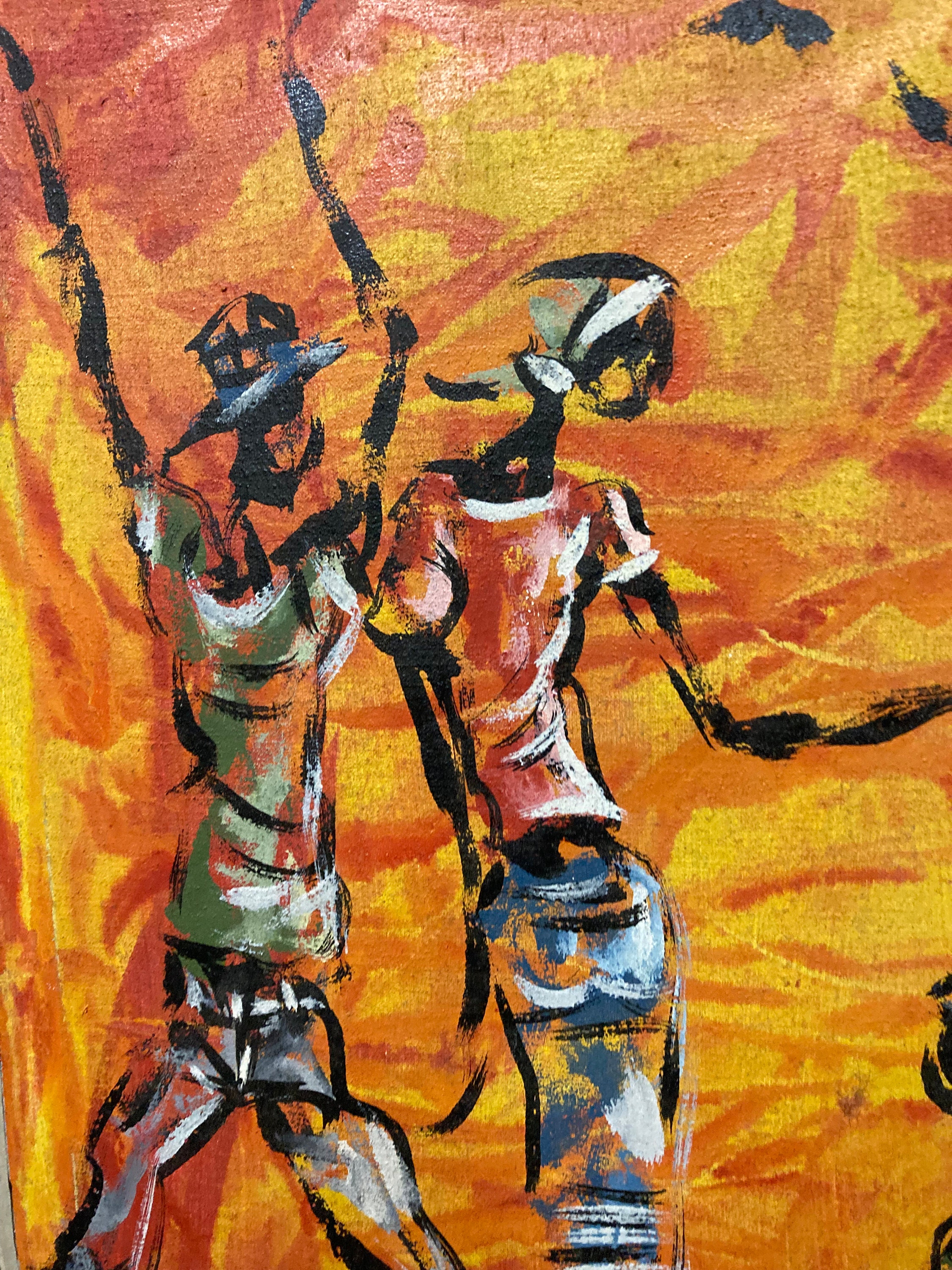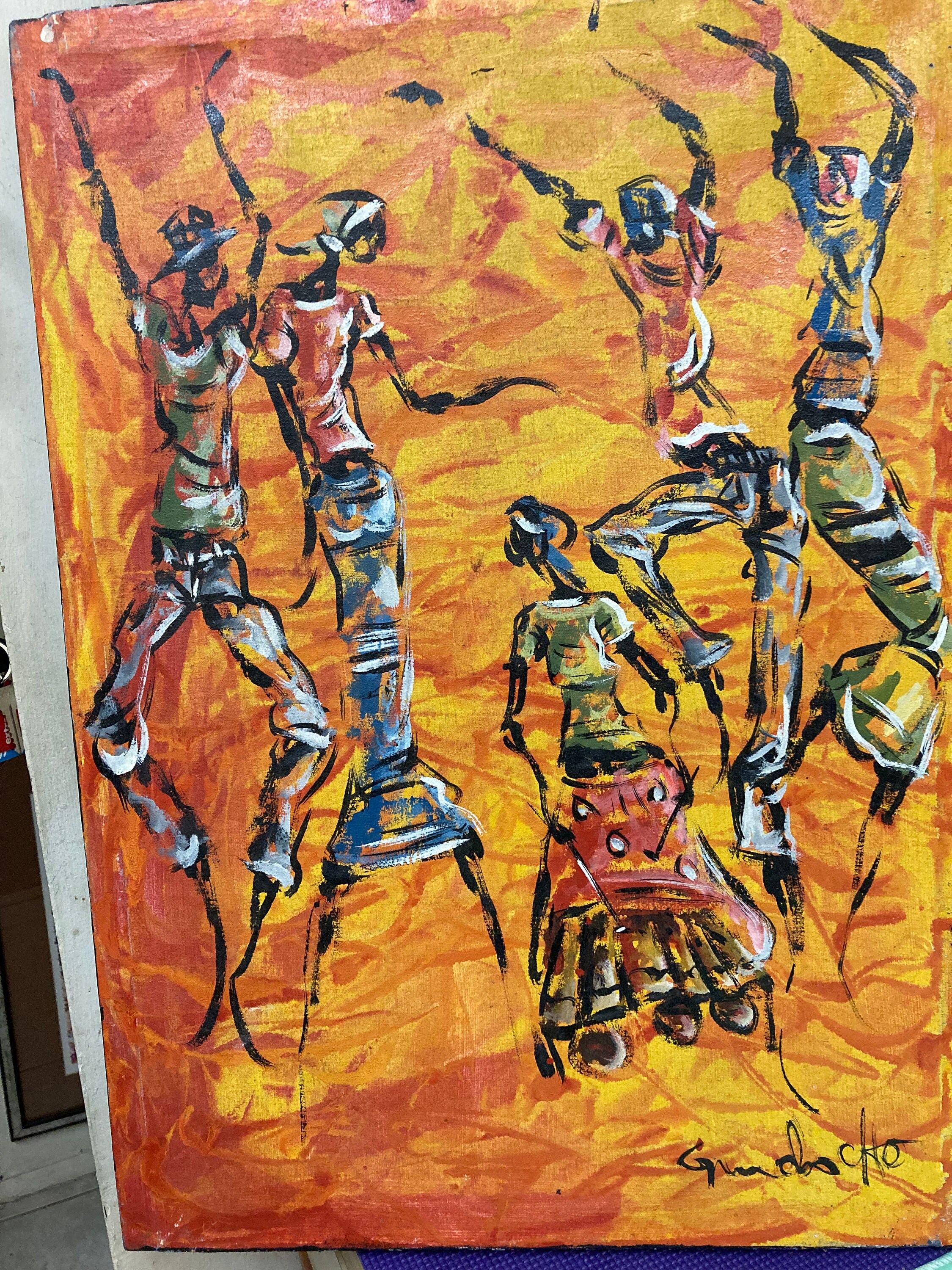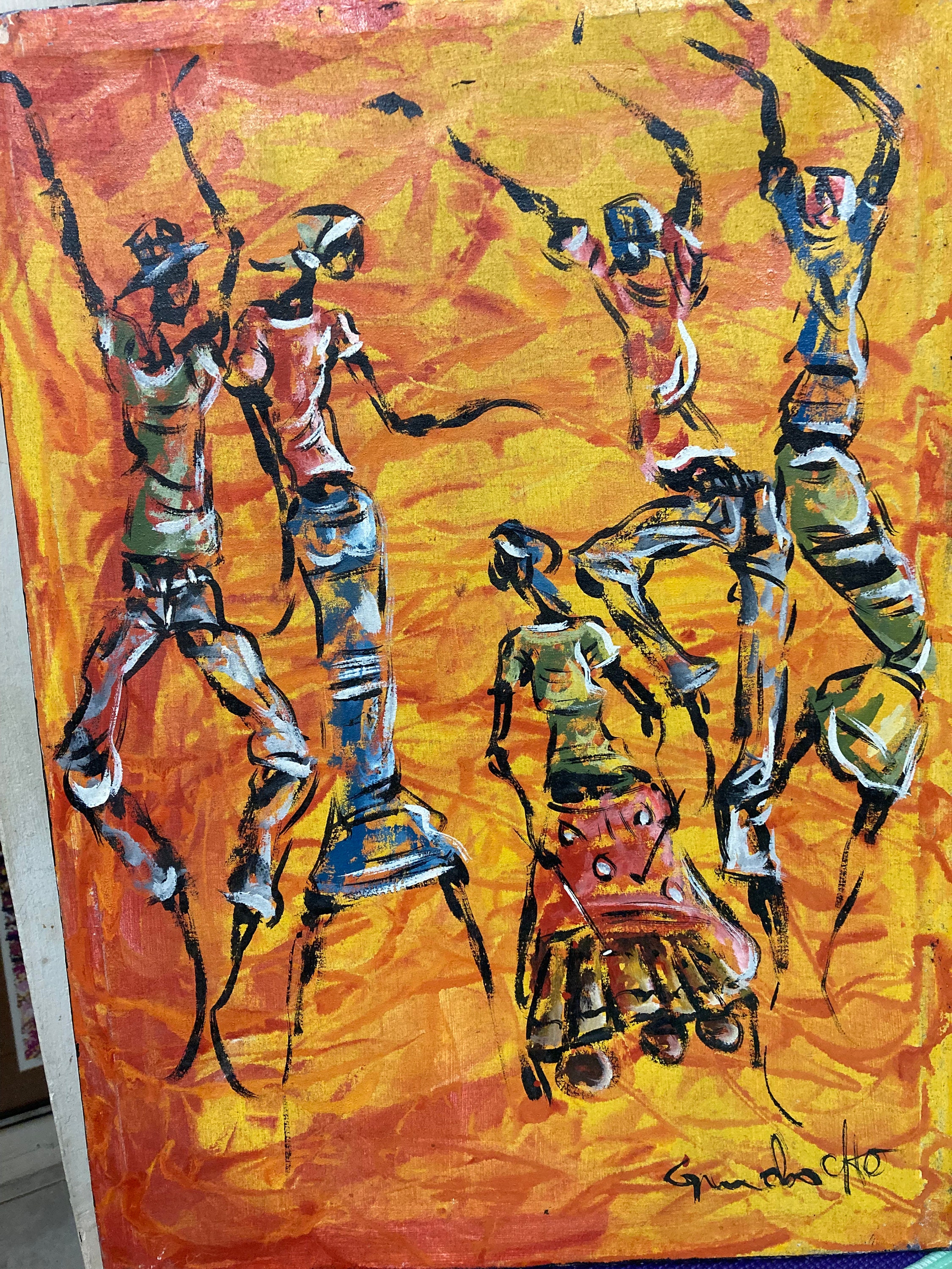African Art Oil Painting On Canvas25.5 x 18 on a wood frameSigned By The ArtistPlease refer to pictures
