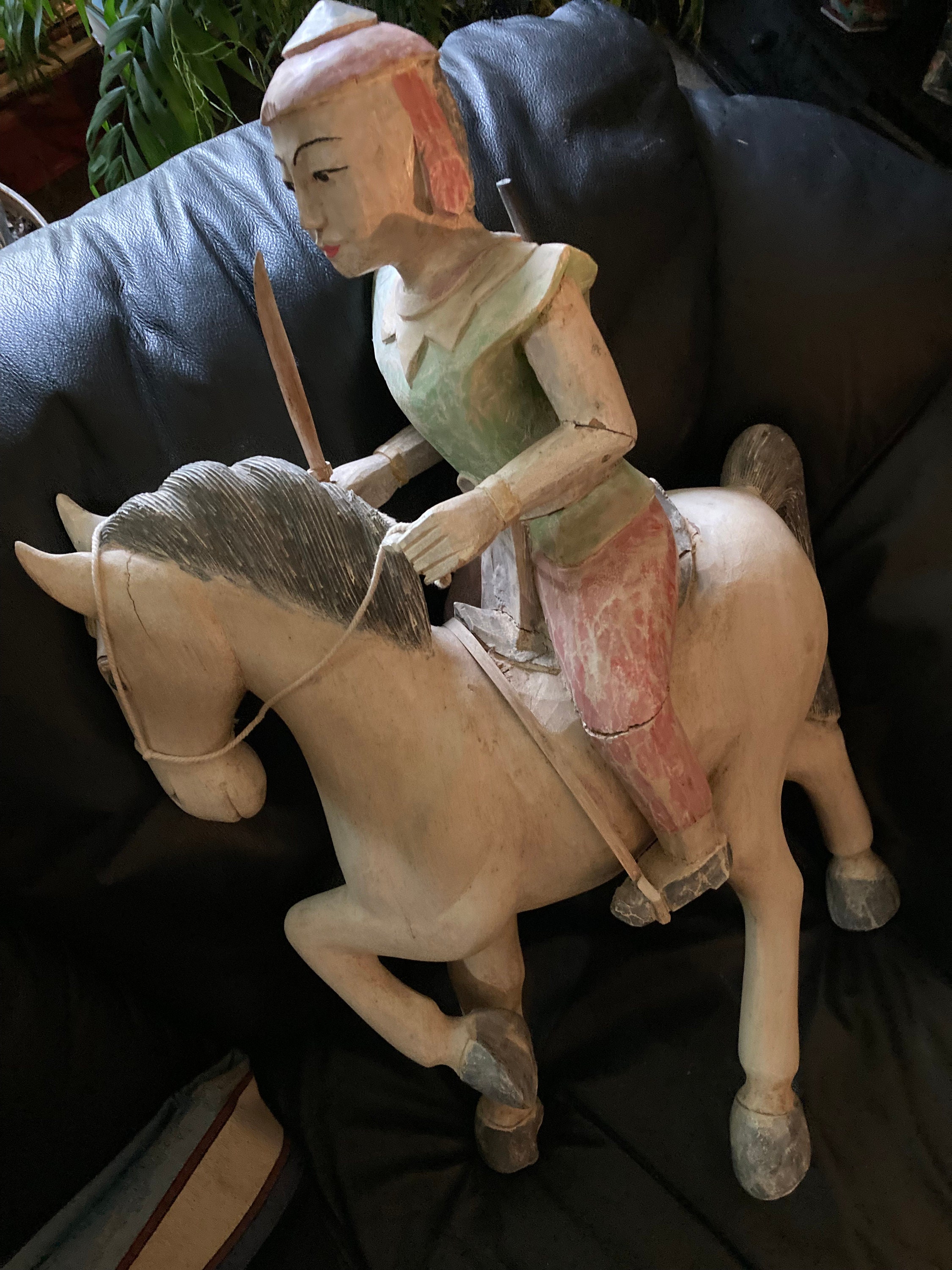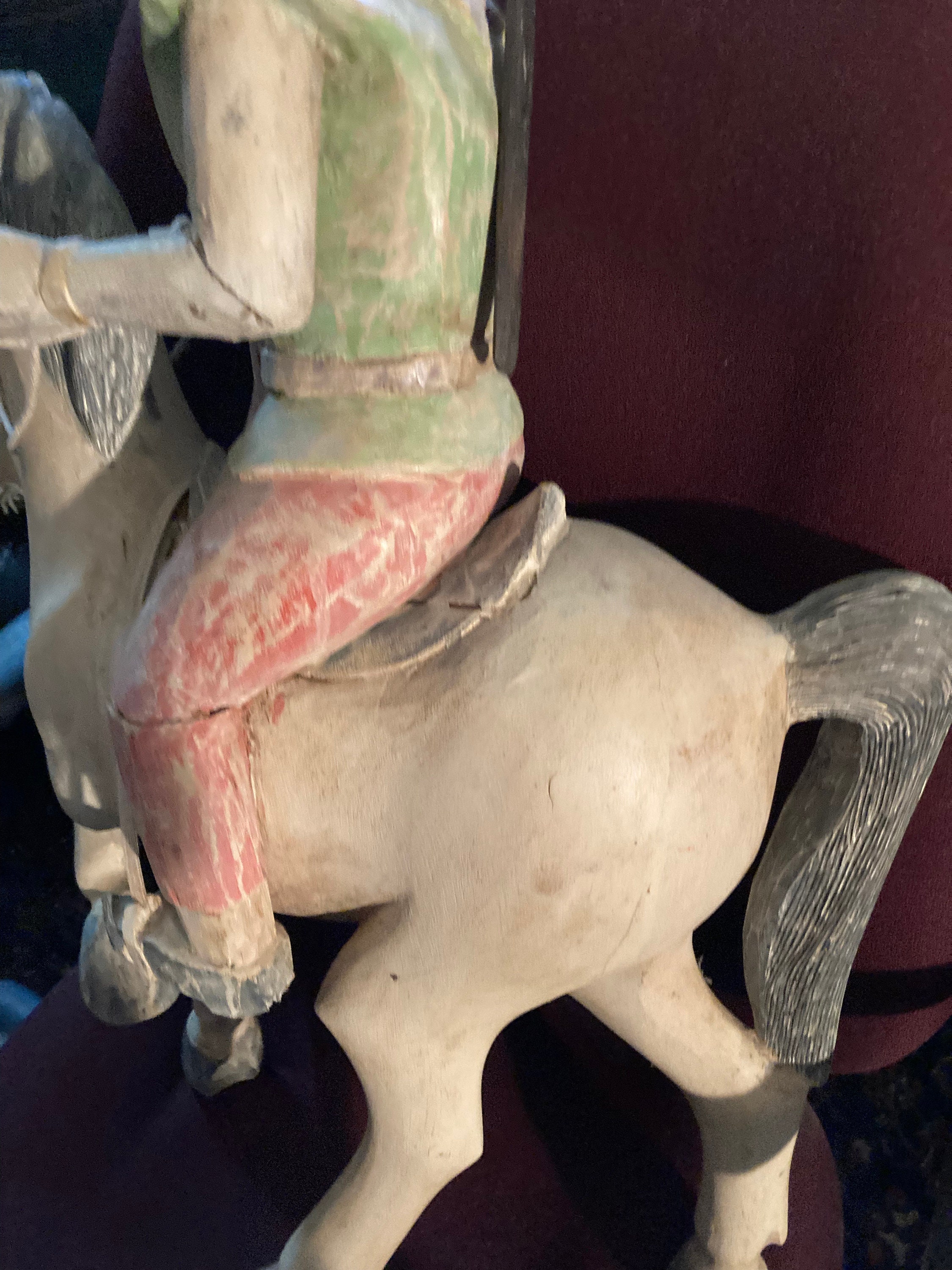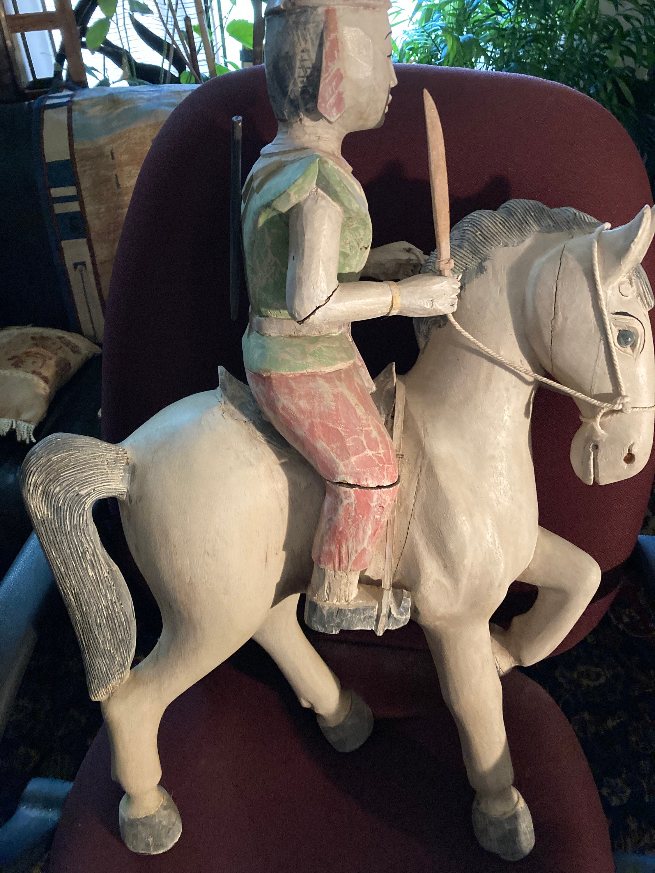 Vintage Handmade, Hand Crafted Wooden Oriental Soldier on a Horse