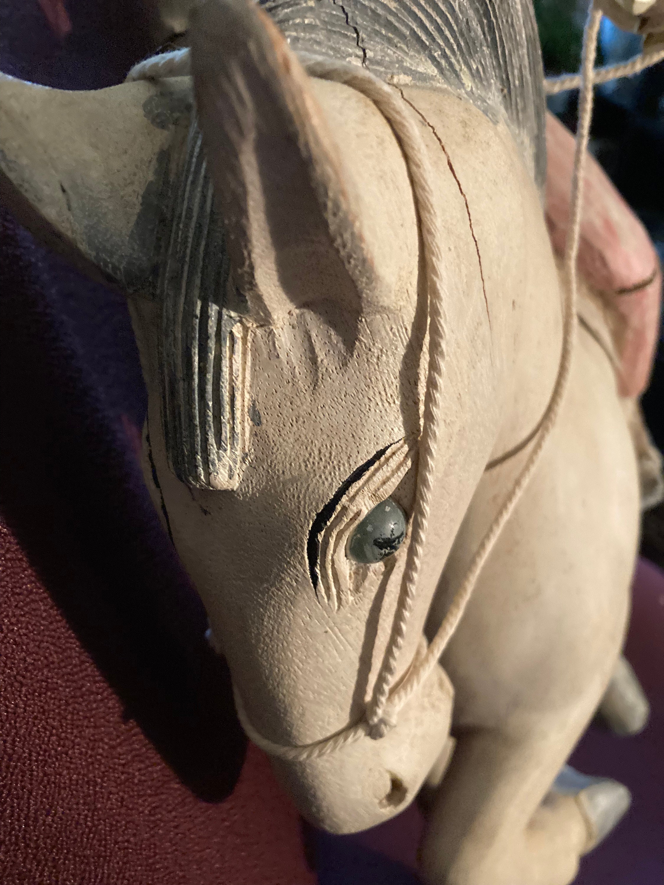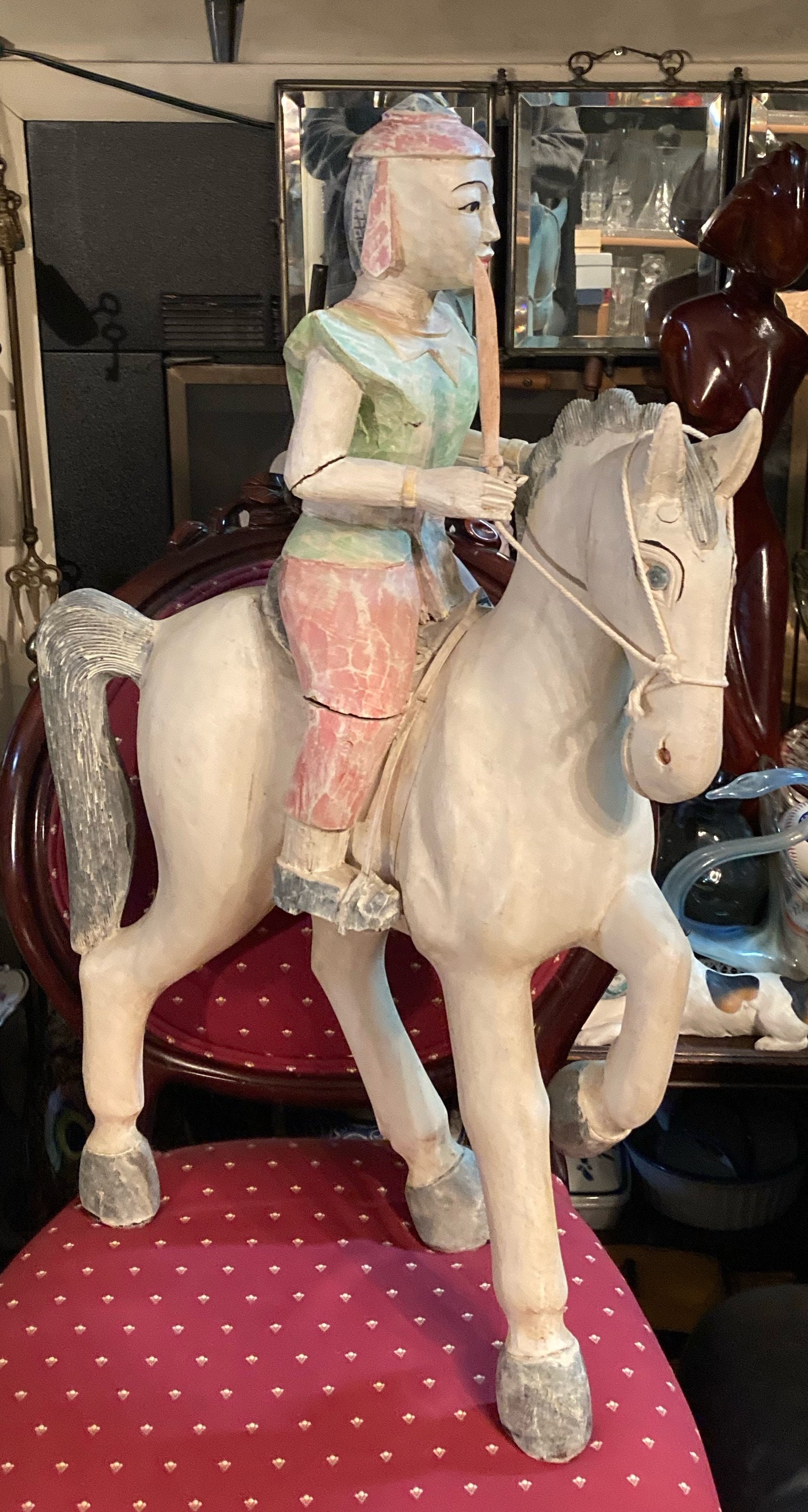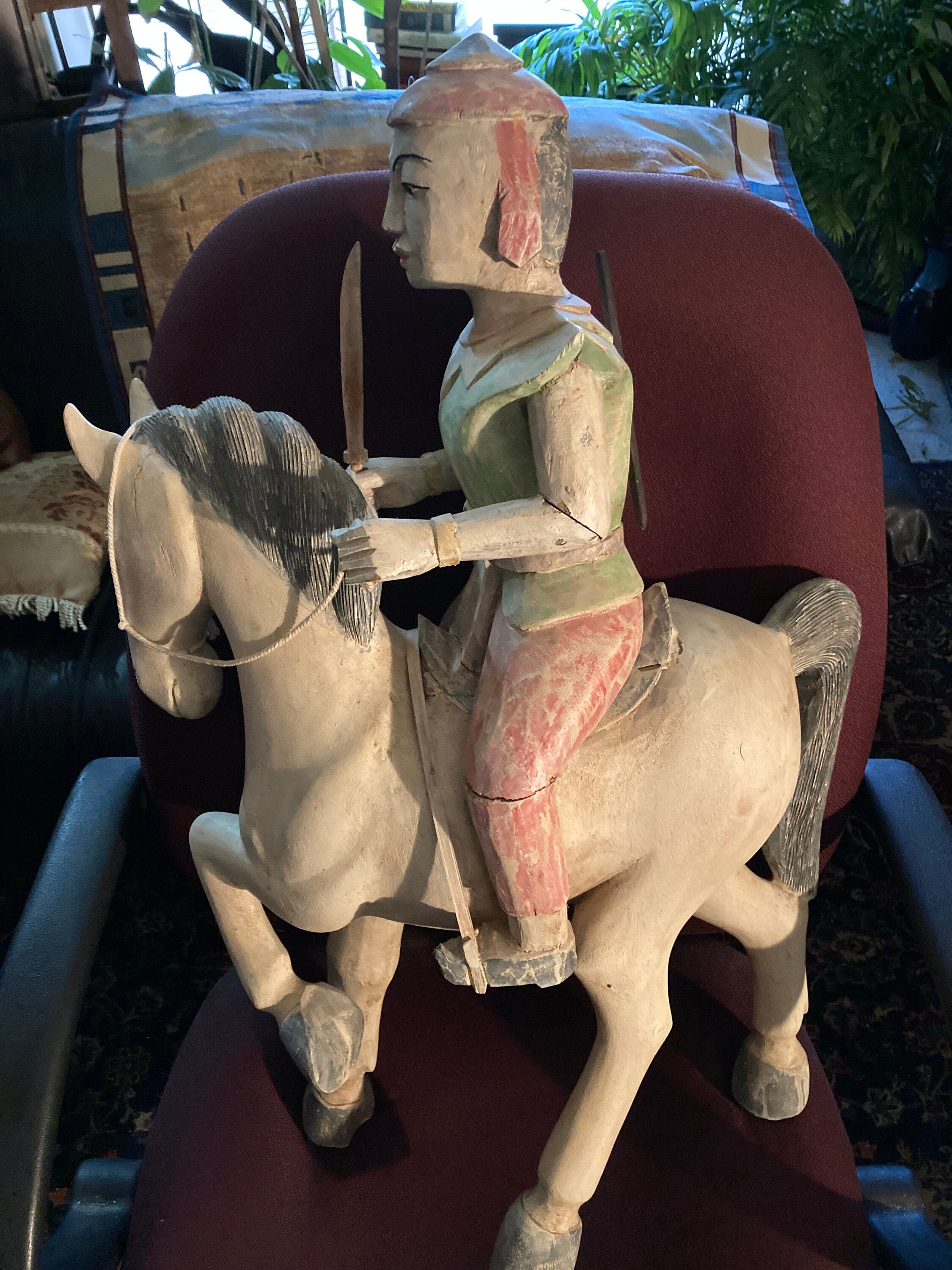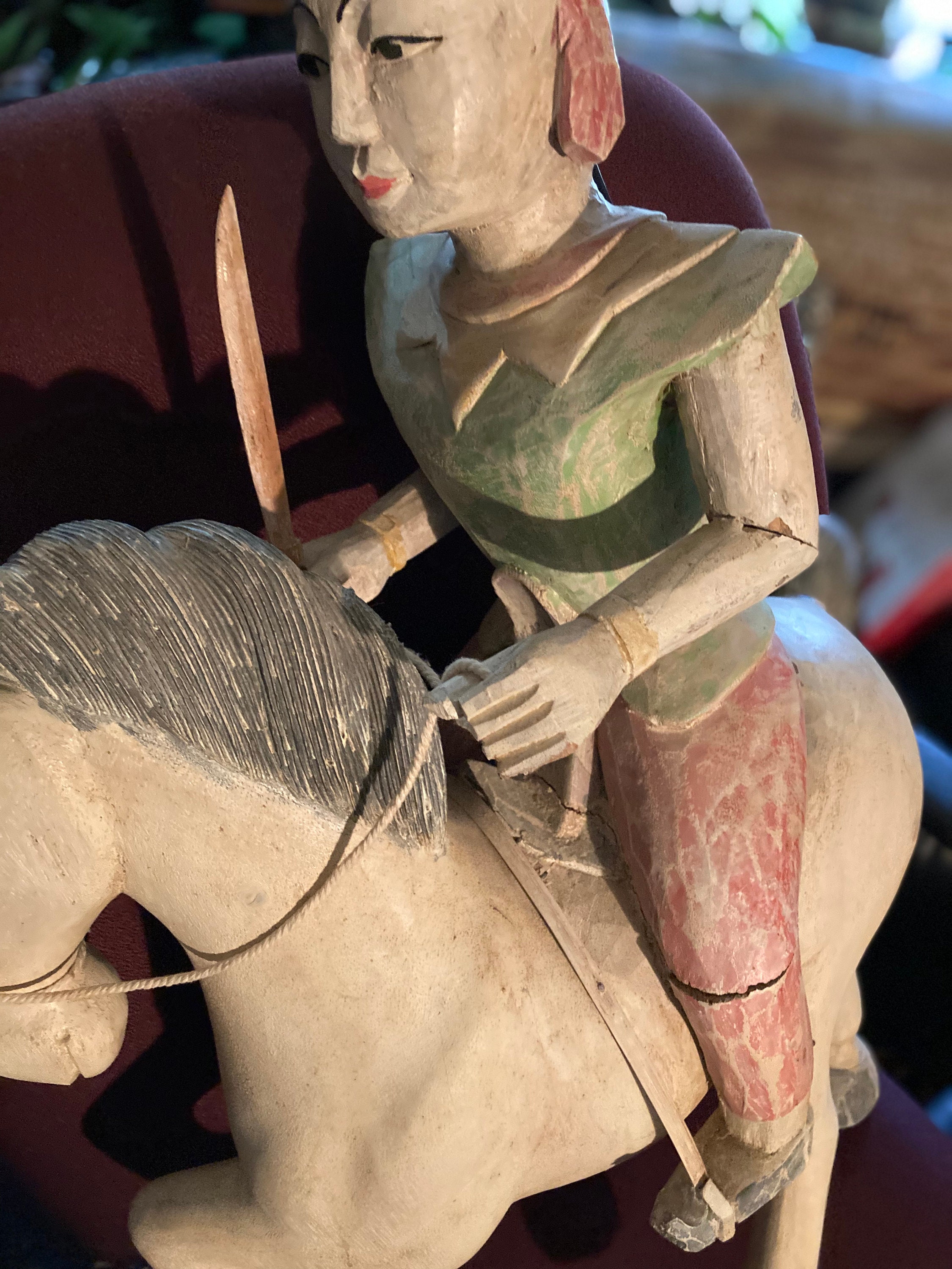 Vintage Handmade, Hand Crafted Wooden Oriental Soldier on a Horse