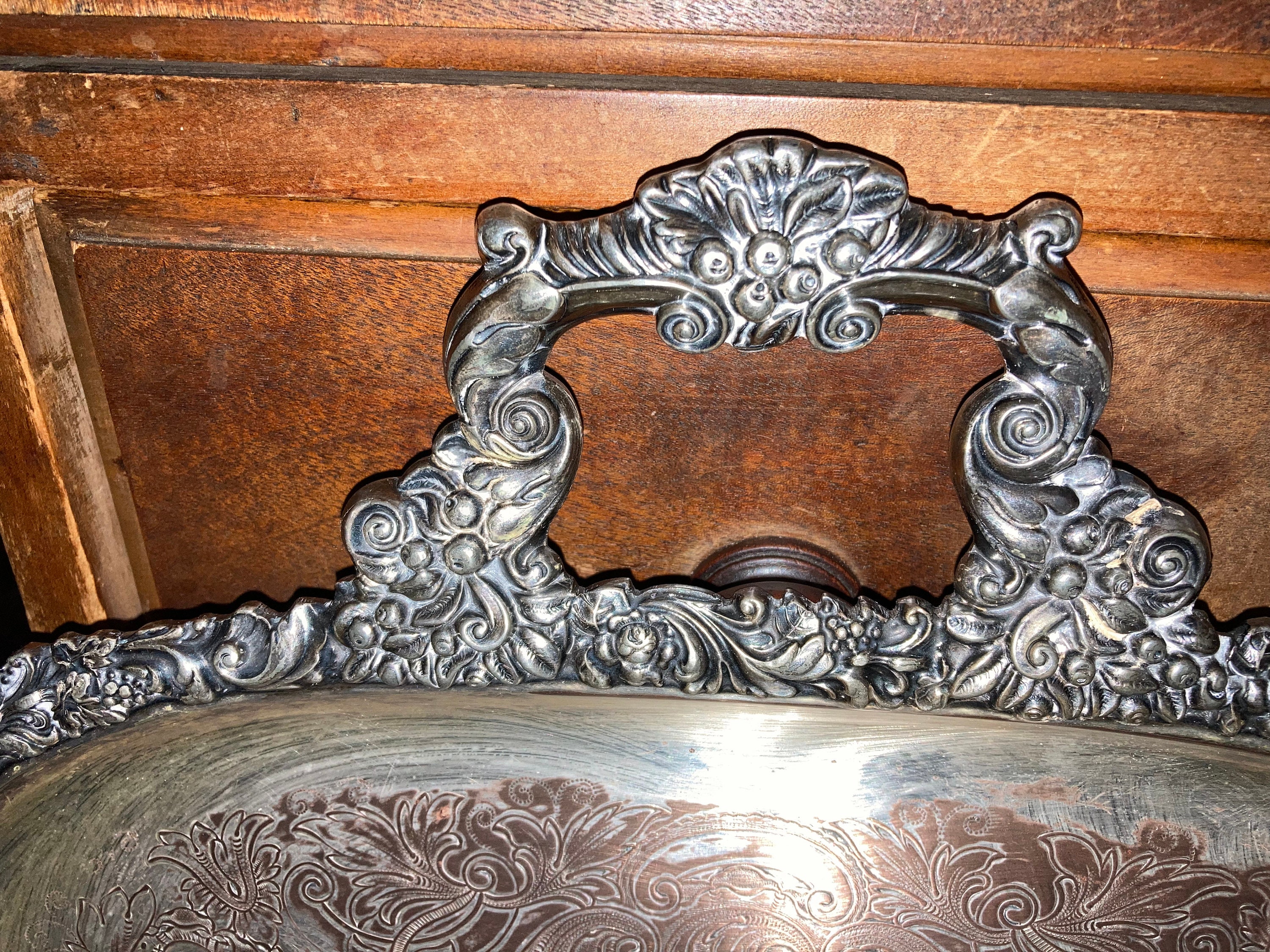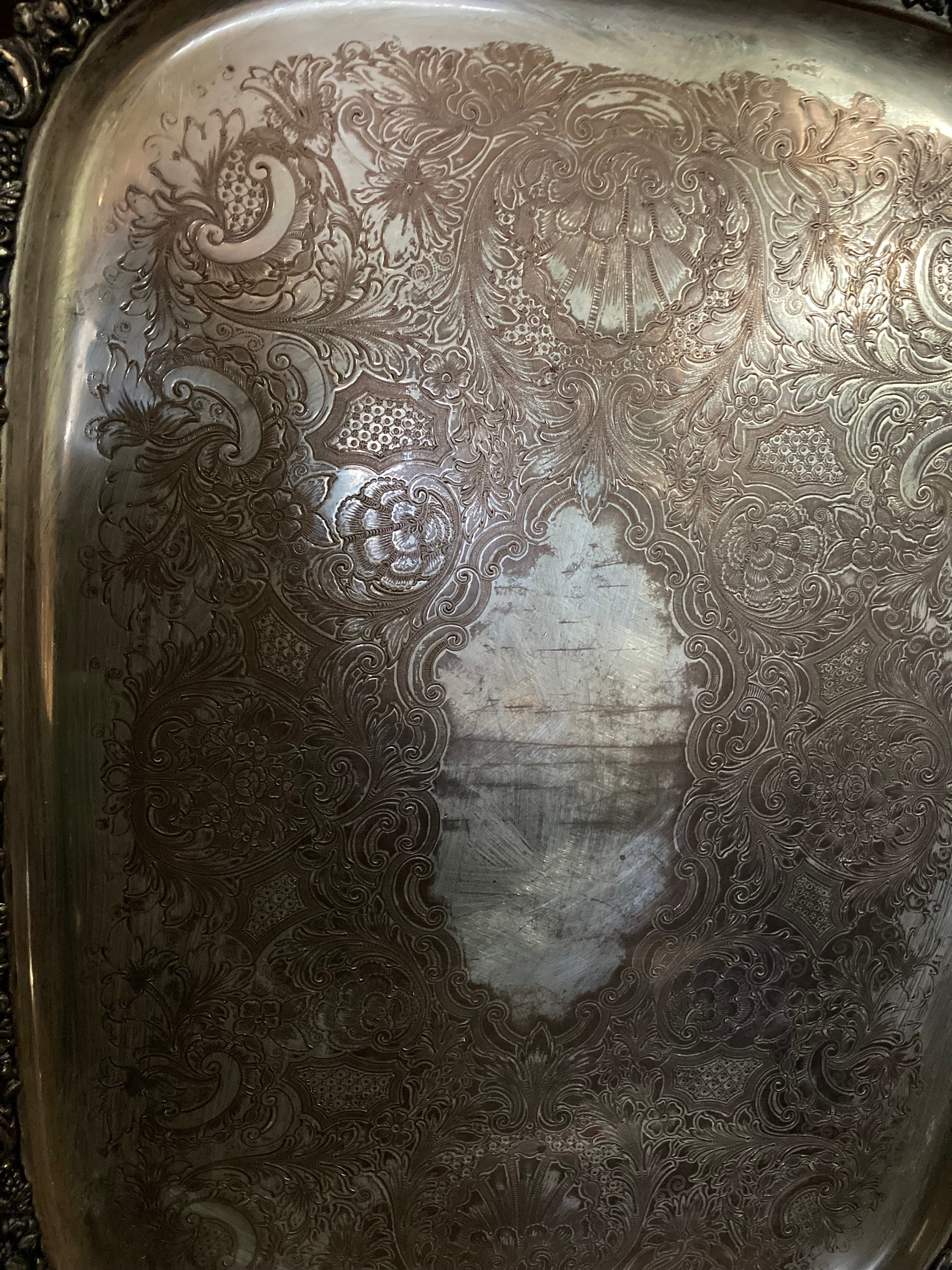 Vintage Silver Plated Serving Tray with Fancy Handles - Serving Tray