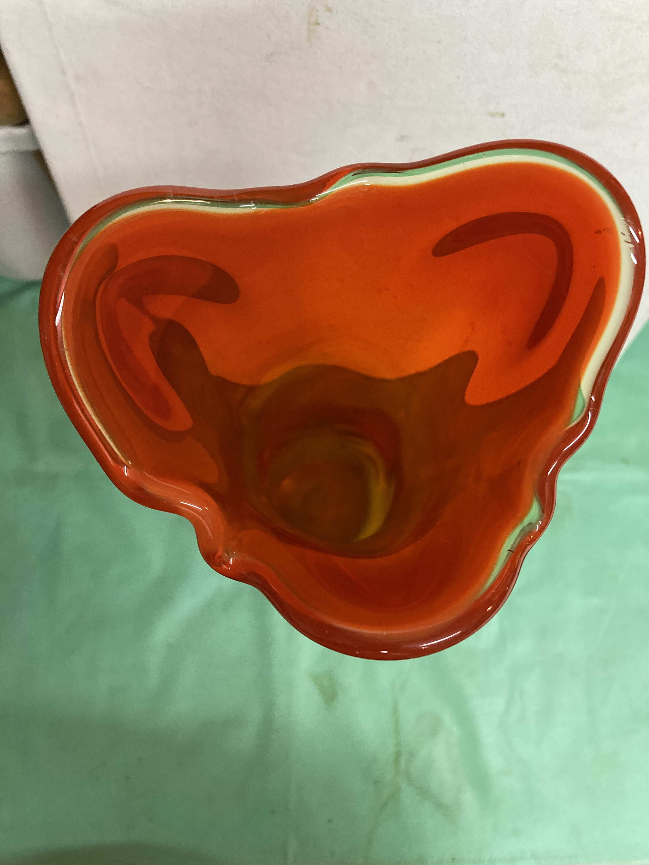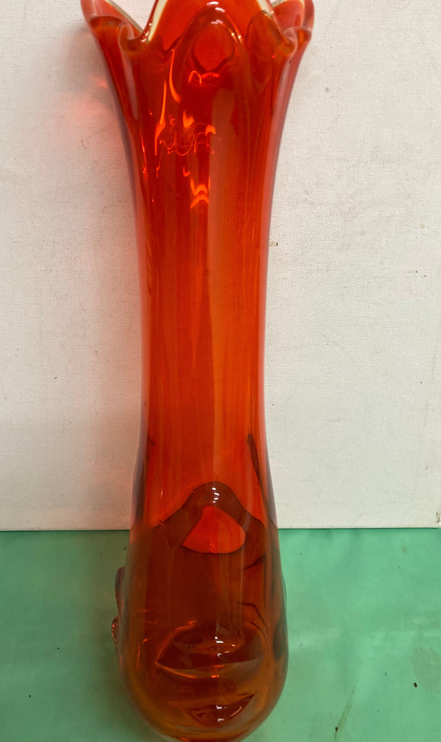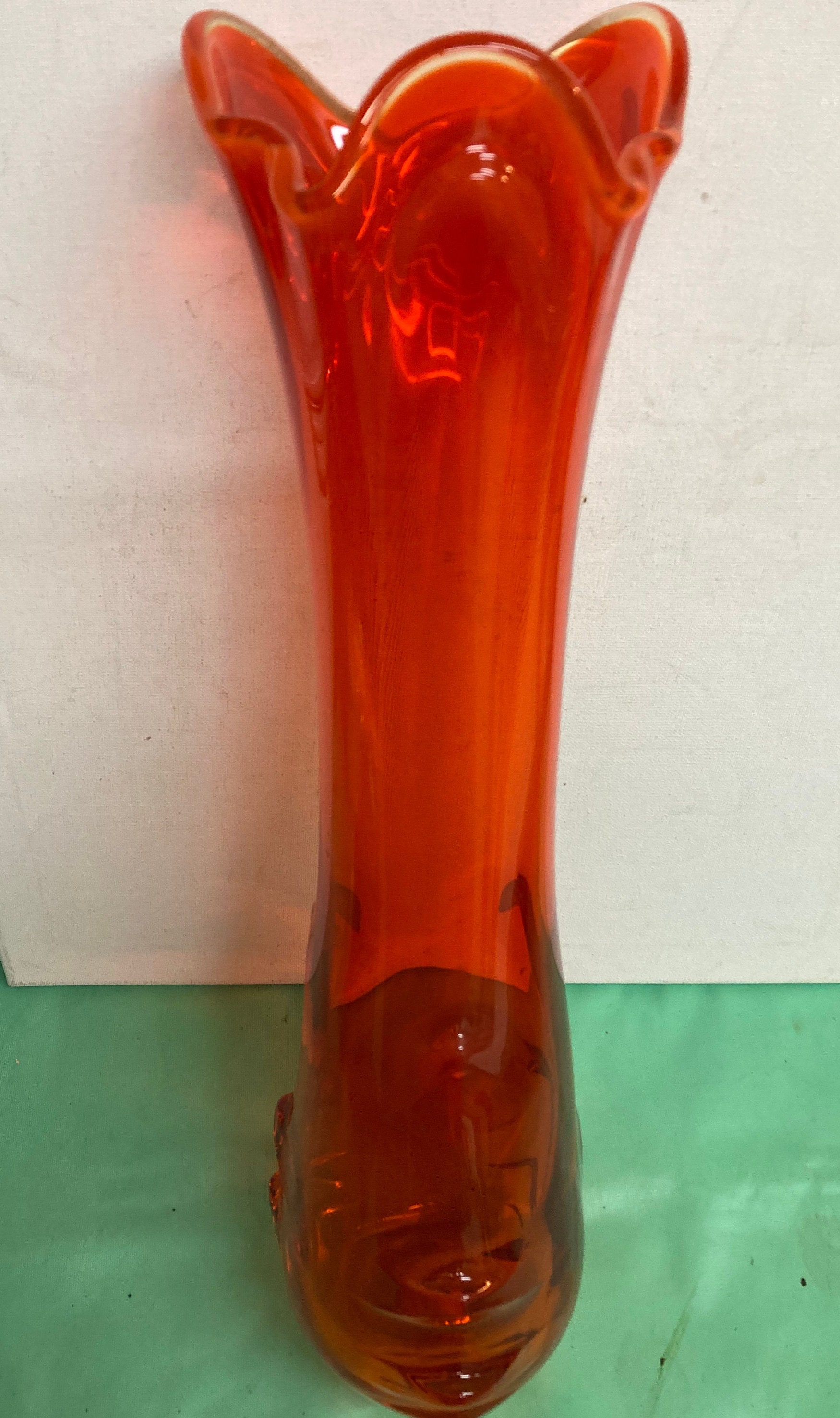 Vintage 17 "Flame (Amberina) VaseMeasures 17" tall x 5" wideSwung vase is in great vintage condition -Condition : Perfect with no chips or cracksWeights 4 lbs