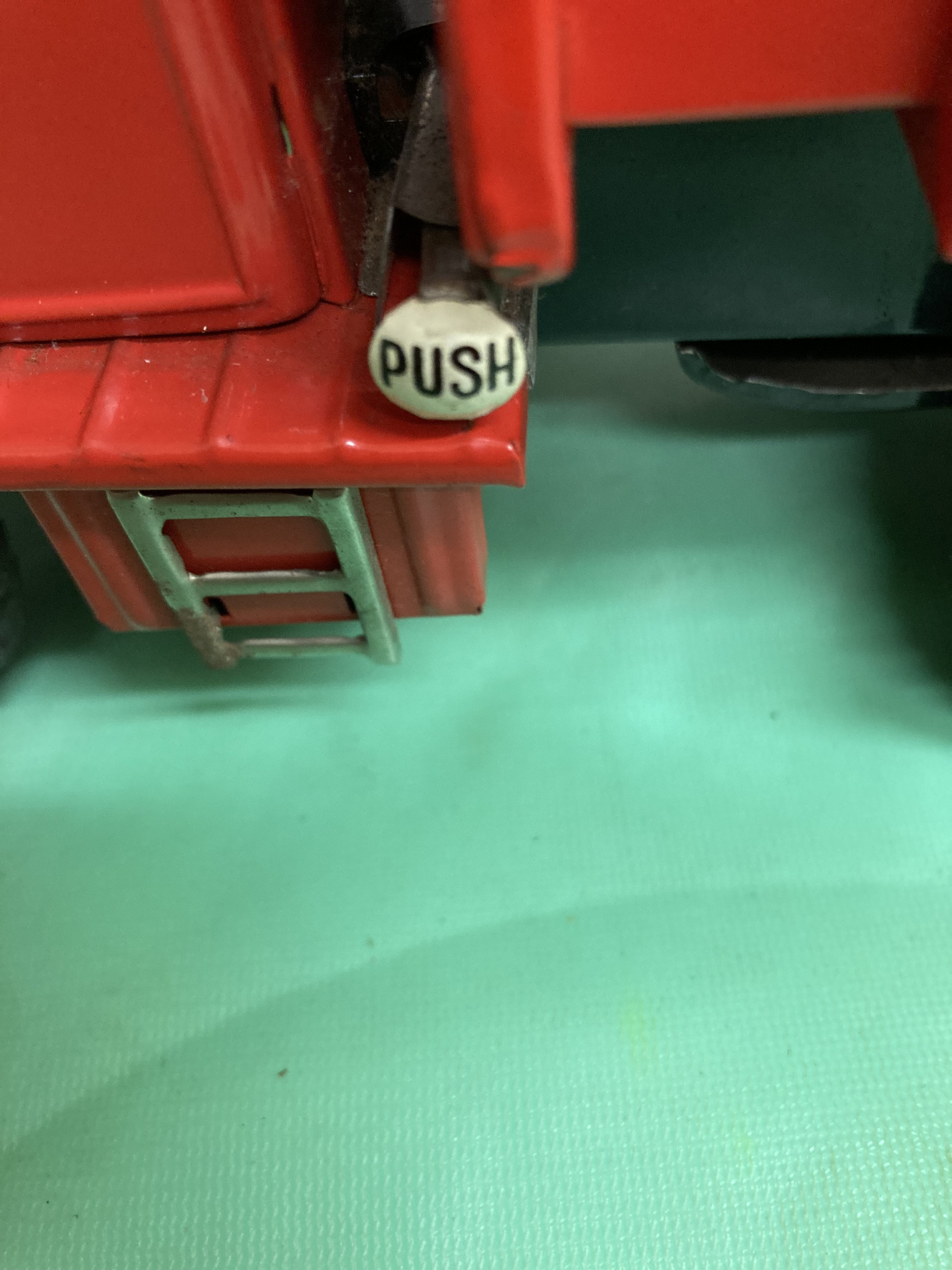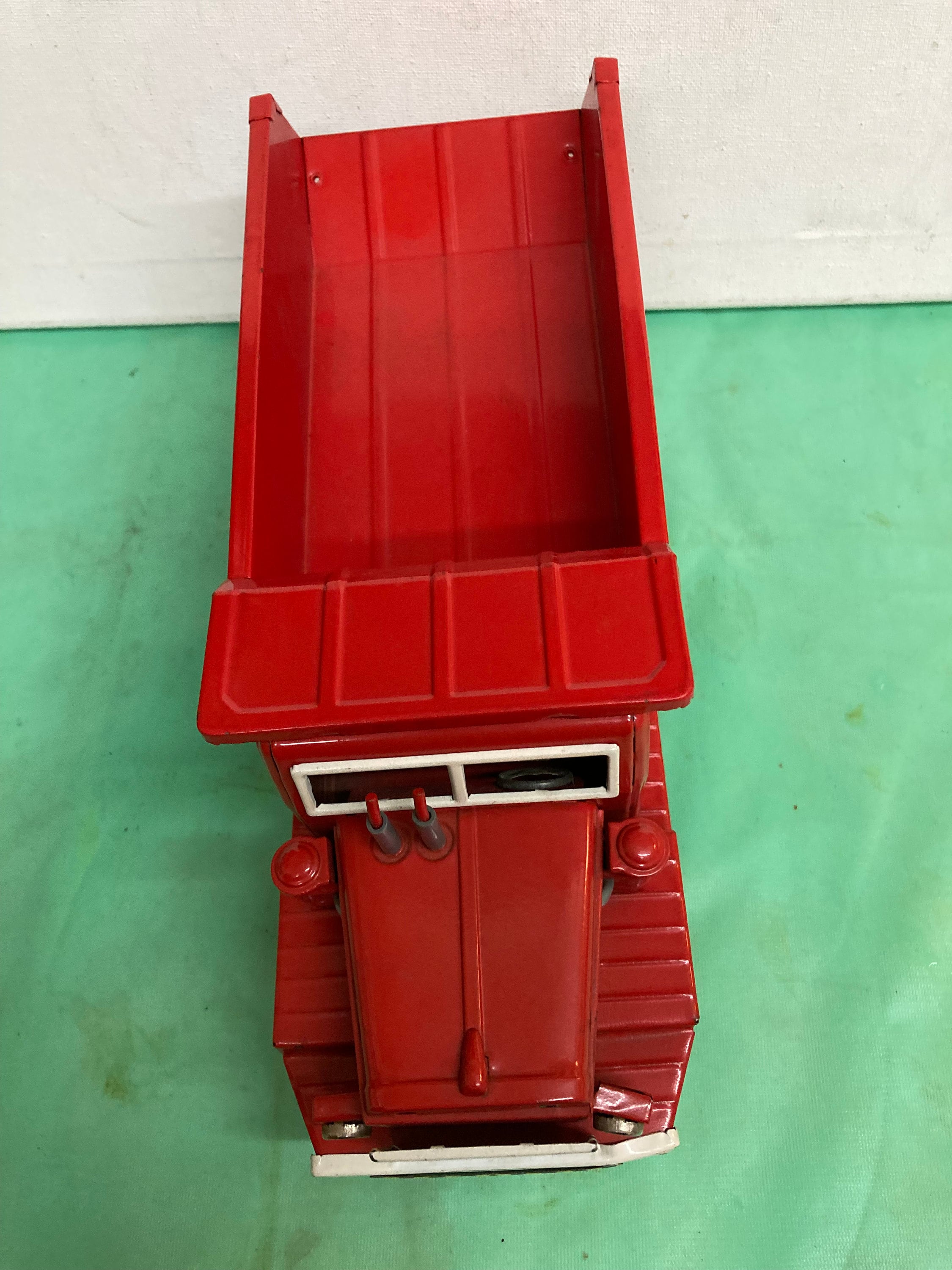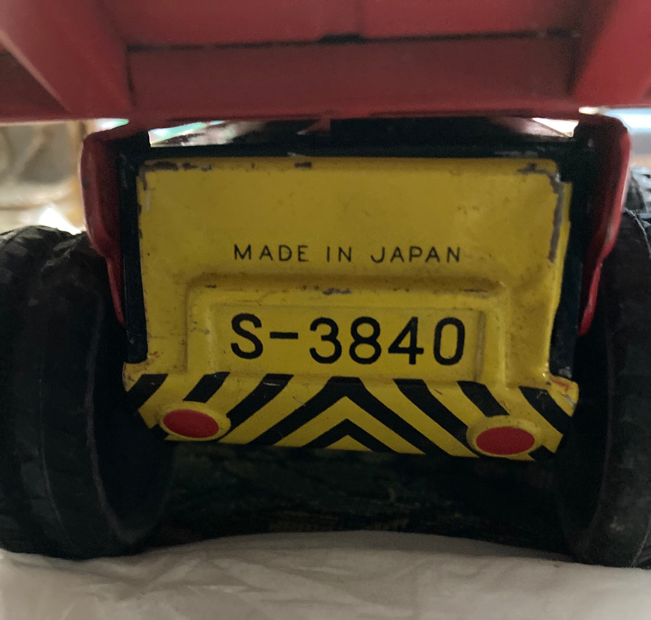 Vintage Tin "SSS International" Red Dump Truck S-3840Made In Japan, Appears to be in Good Vintage Condition,Mechanical DumpVintage Toys Red Step side Dumpster Truck, Rare Find12w x 5t x 4d